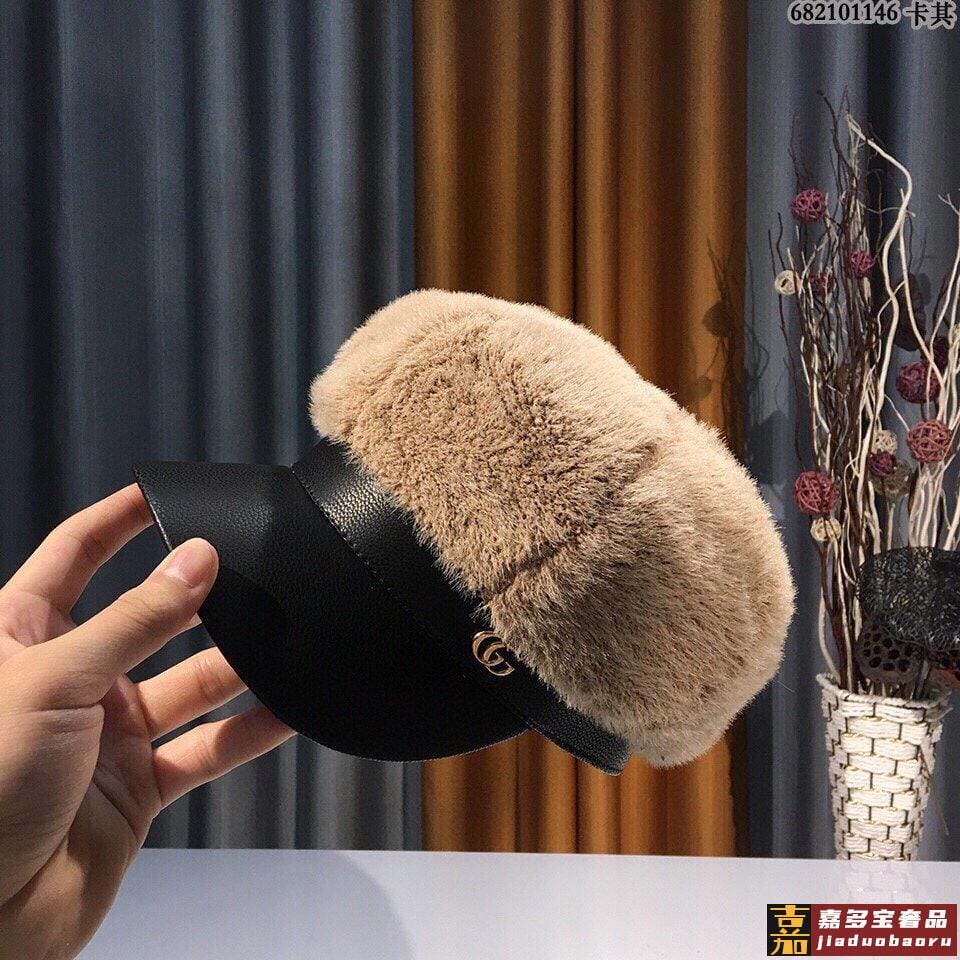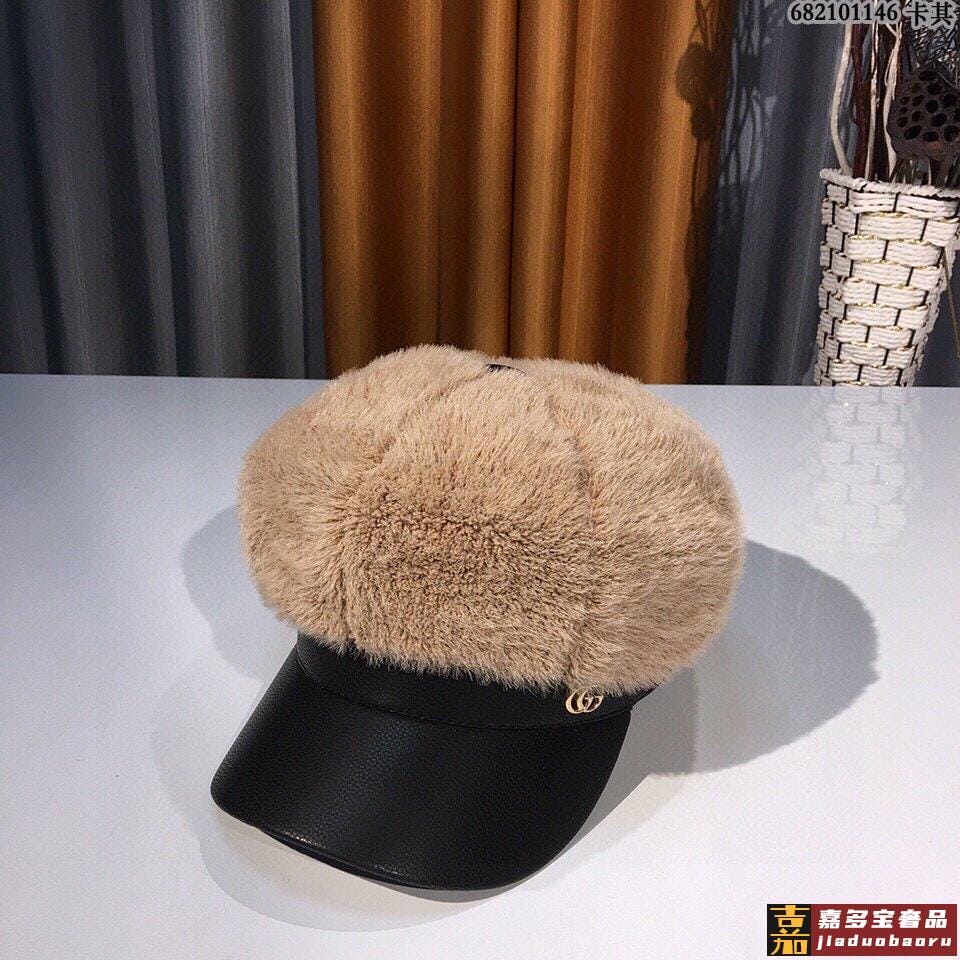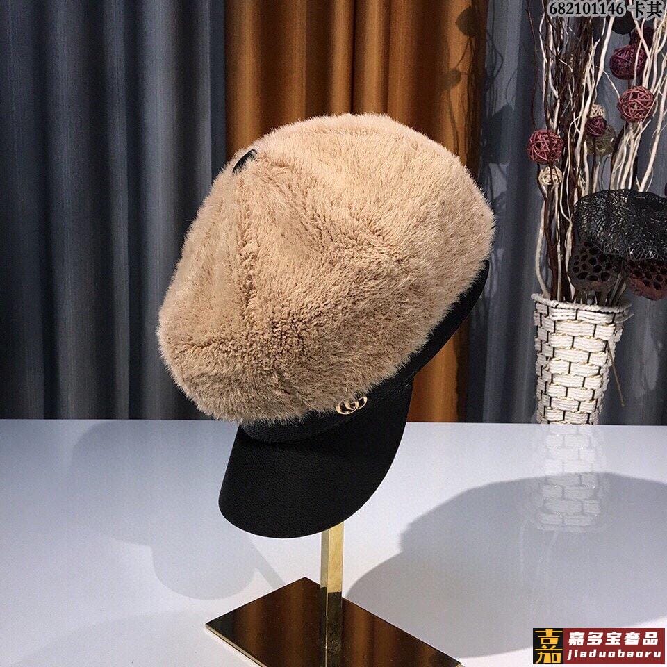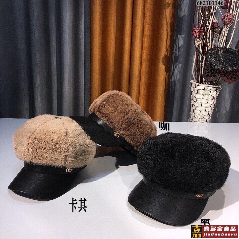 古奇秋冬贝雷帽兔毛海军帽八角帽水貂毛皮毛一体保暖百搭潮牌 <