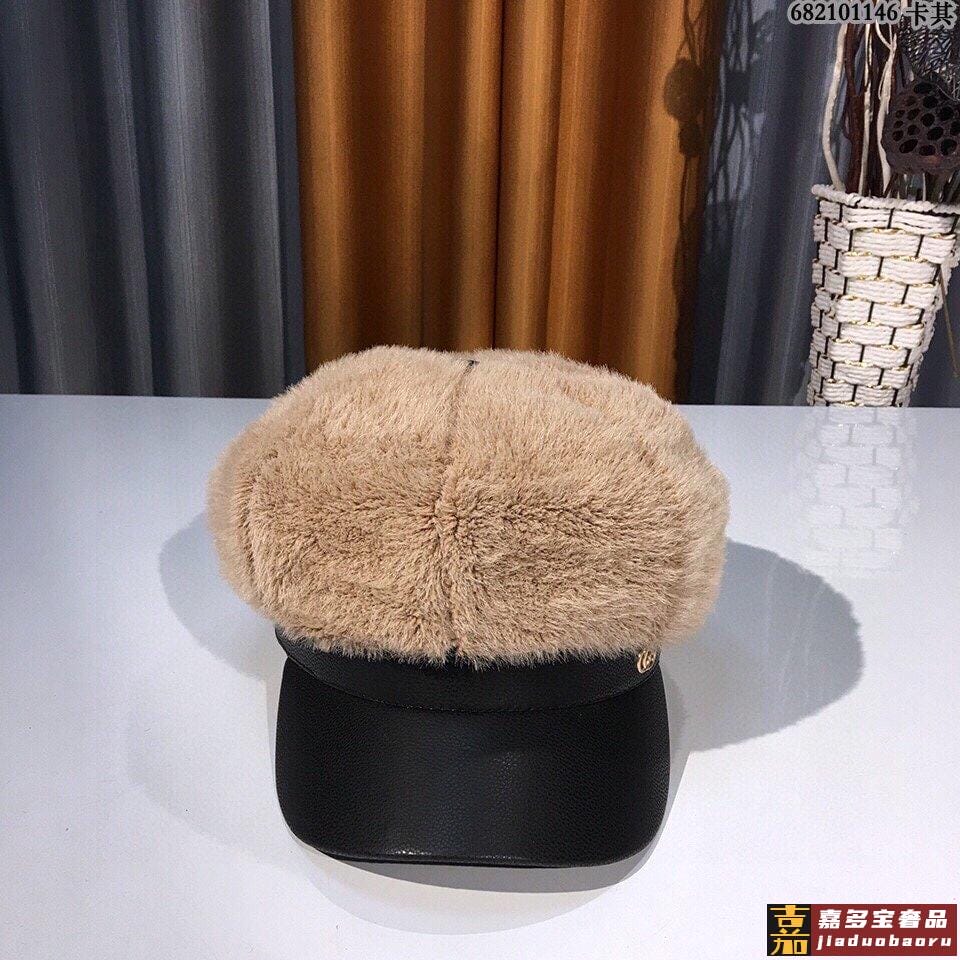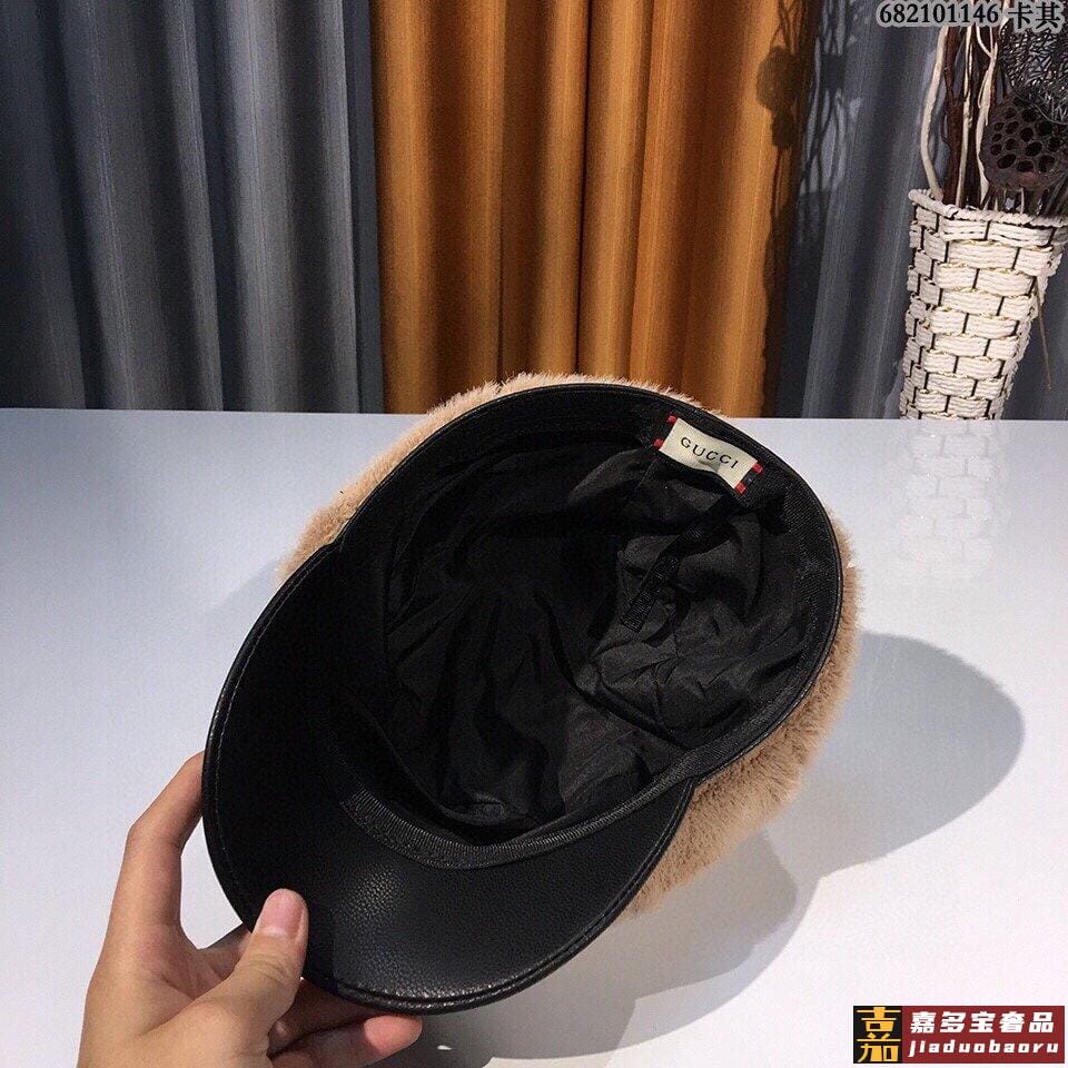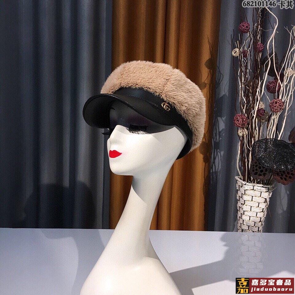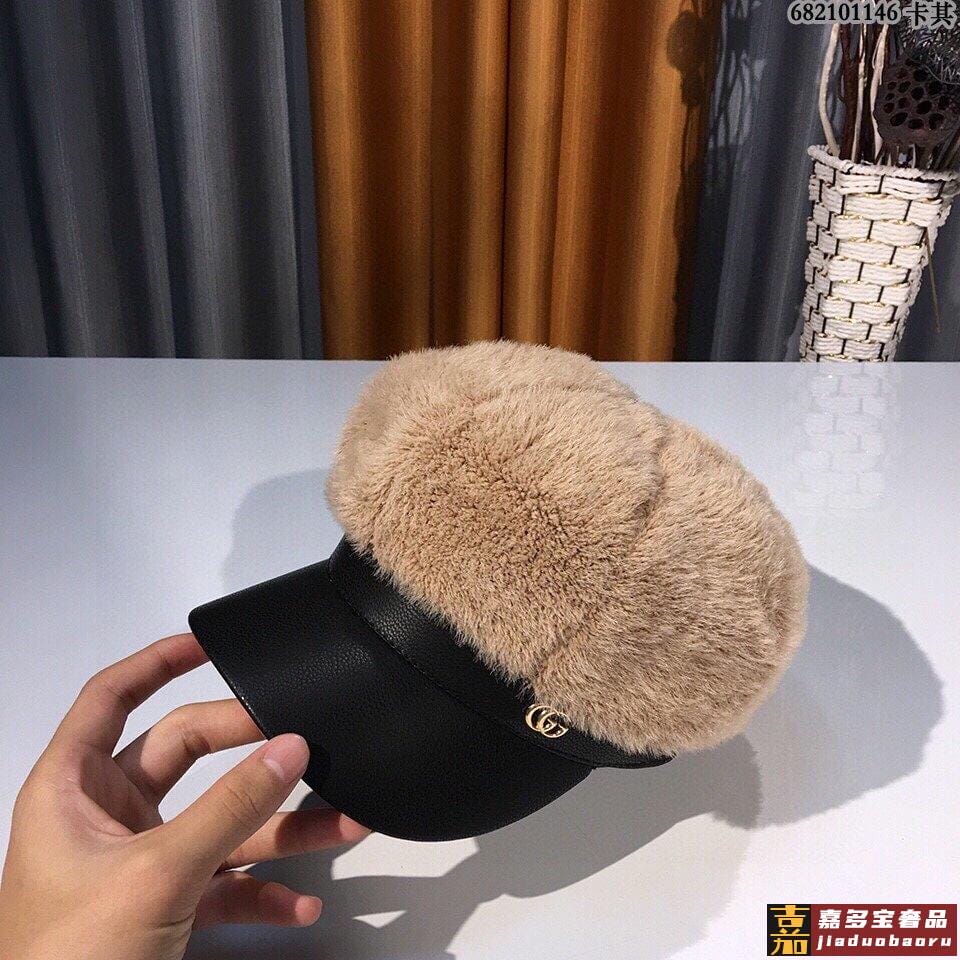 古奇秋冬贝雷帽兔毛海军帽八角帽水貂毛皮毛一体保暖百搭潮牌 <