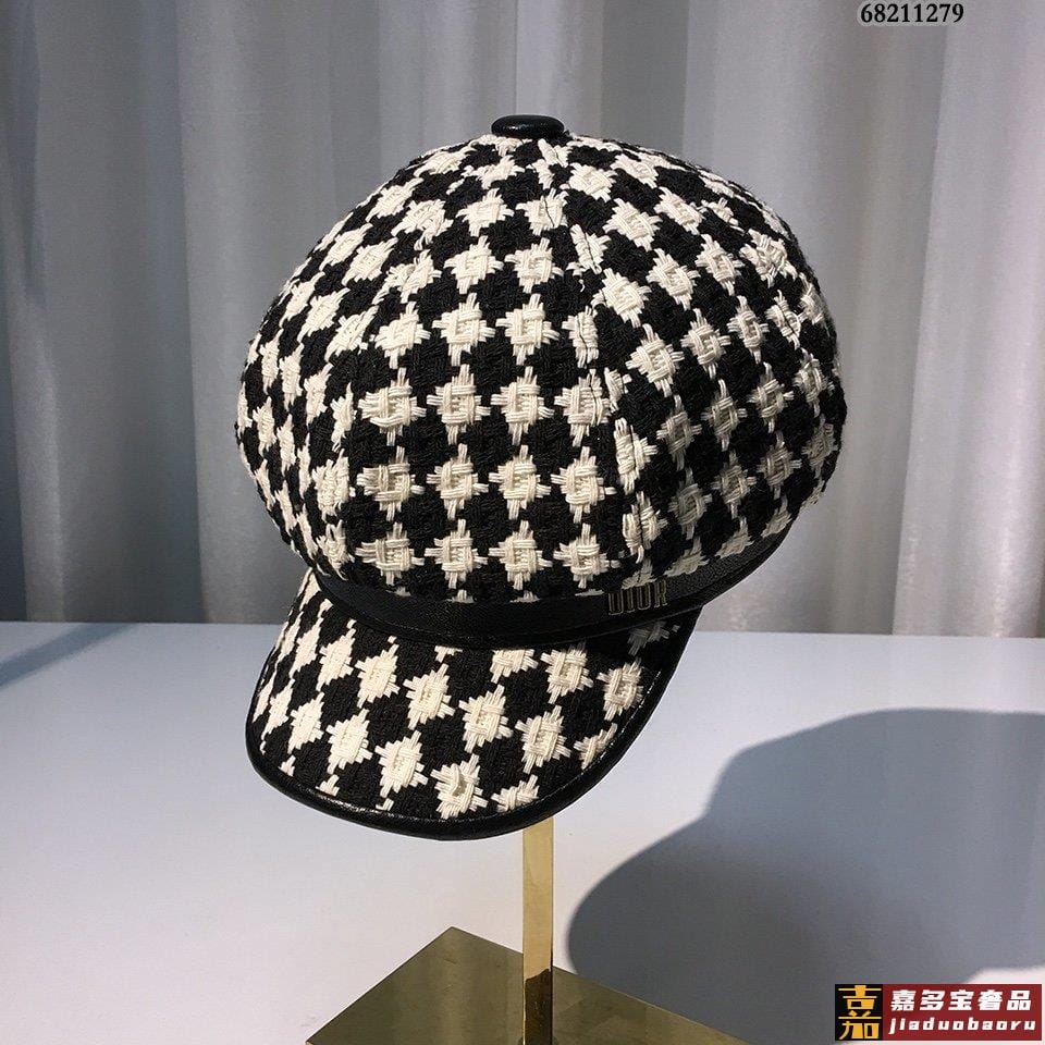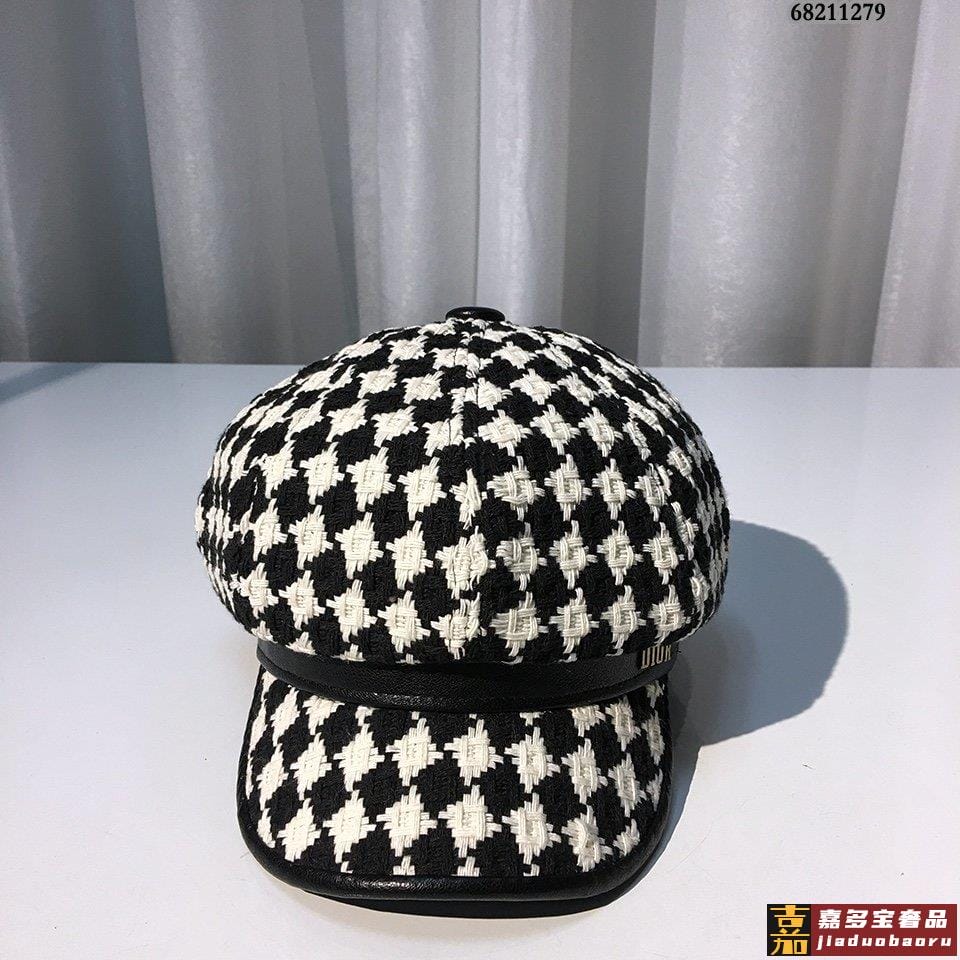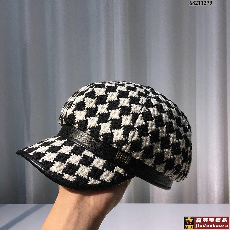 迪奥千鸟格八角帽军帽贝雷帽时尚潮流南瓜帽简单精致简洁大方四季