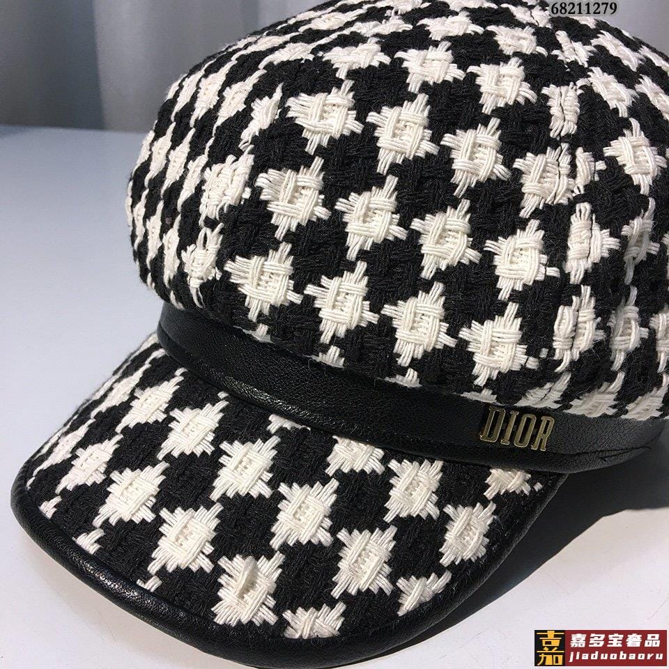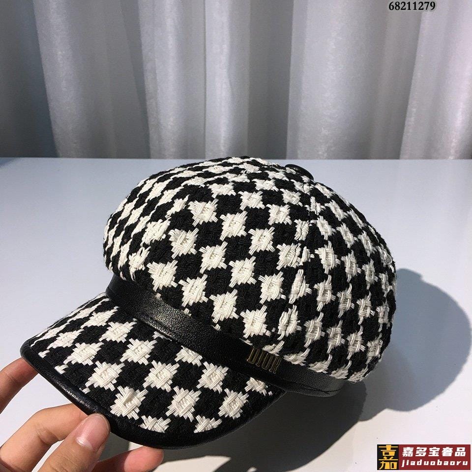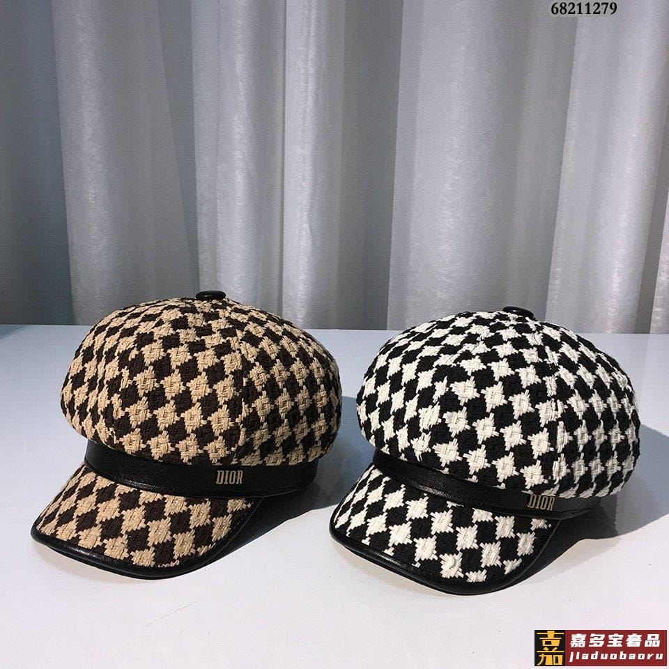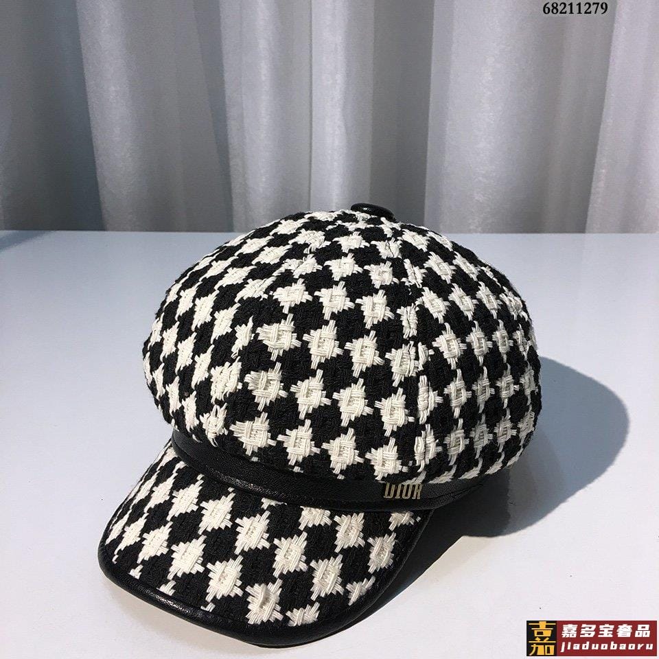 迪奥千鸟格八角帽军帽贝雷帽时尚潮流南瓜帽简单精致简洁大方四季