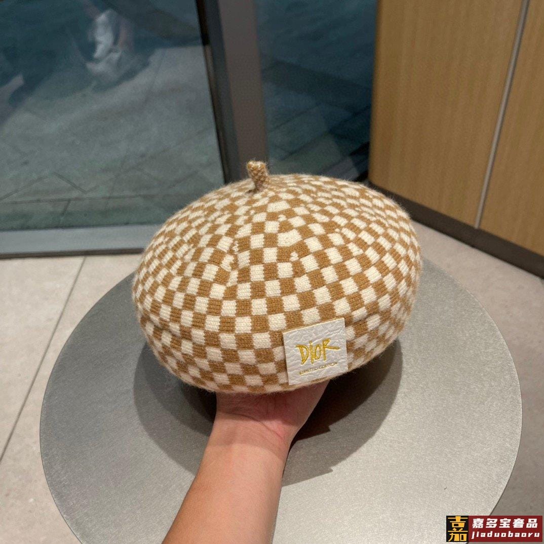 迪奥秋冬新款走秀款貂绒贝雷帽画家帽设计简单大方必备单品佩戴效
