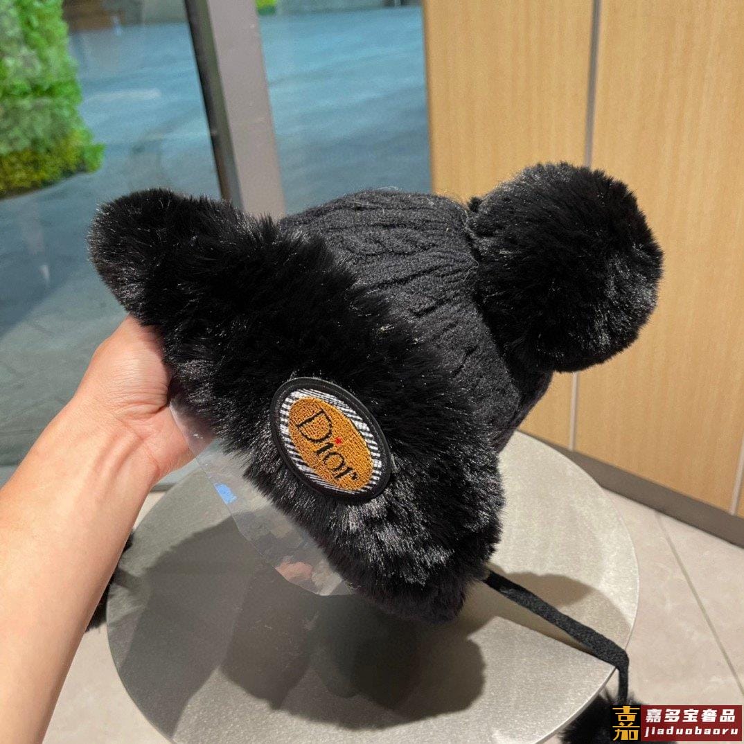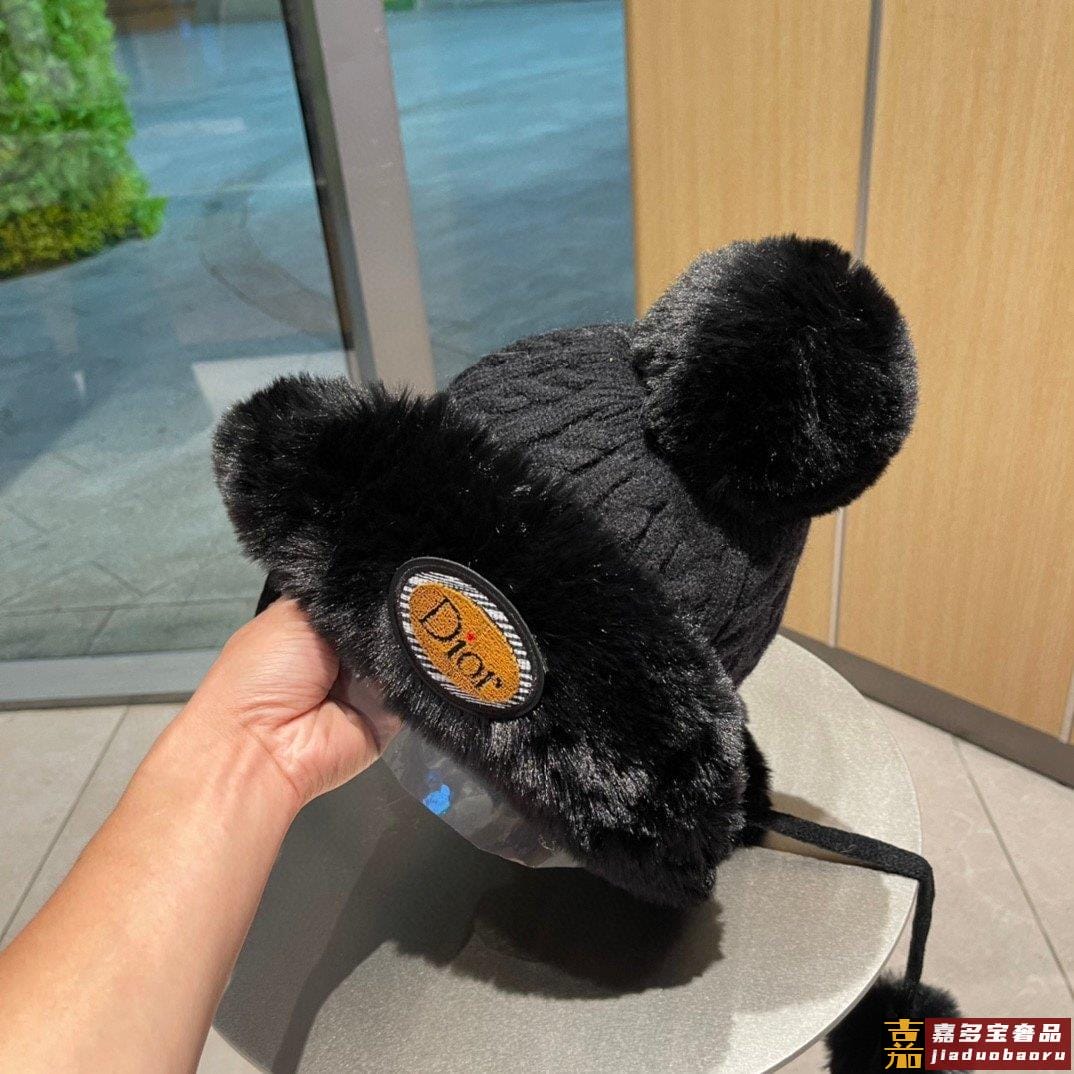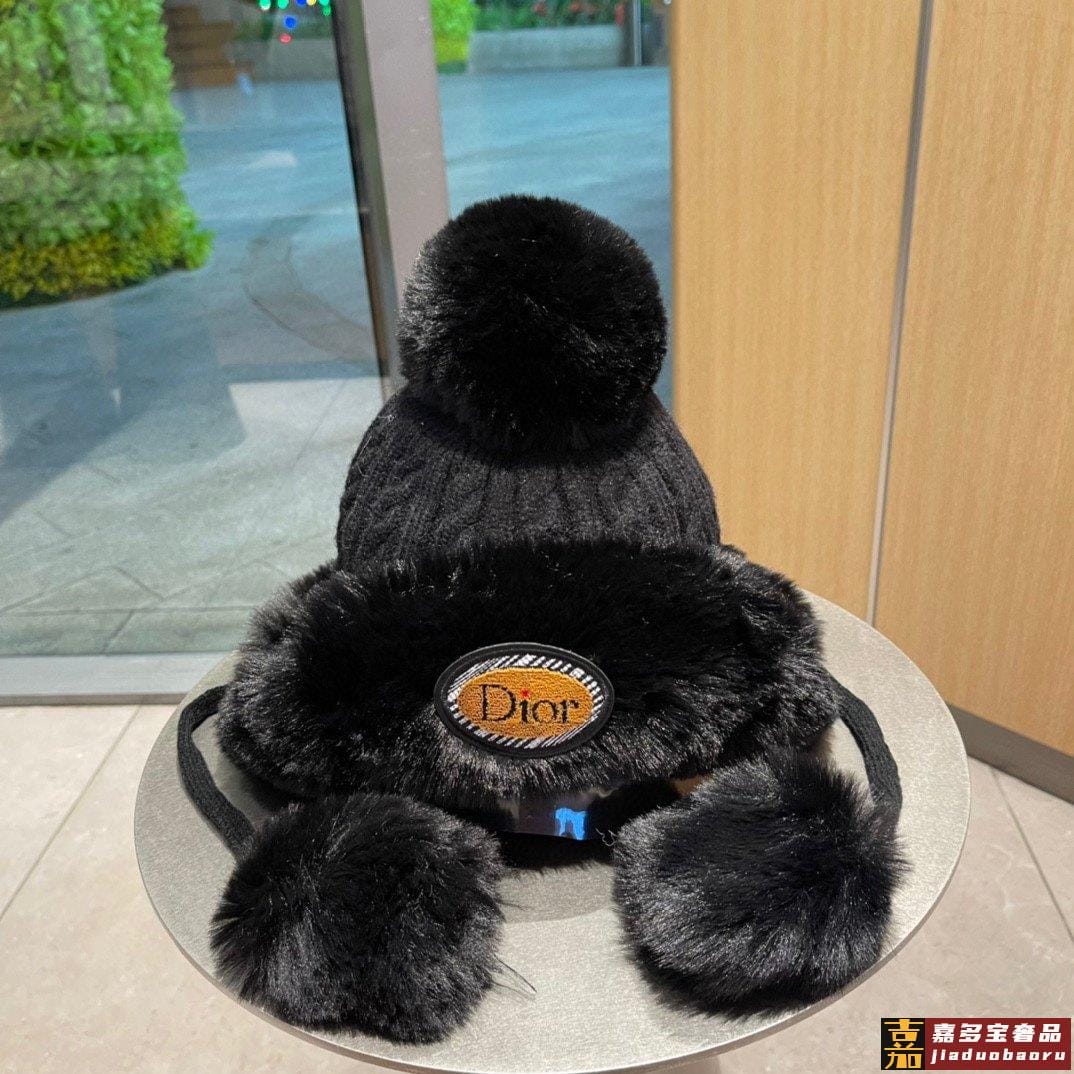 迪奥秋冬新款迪奥毛线帽韩版潮流套头加厚保暖毛球护耳朵针织帽