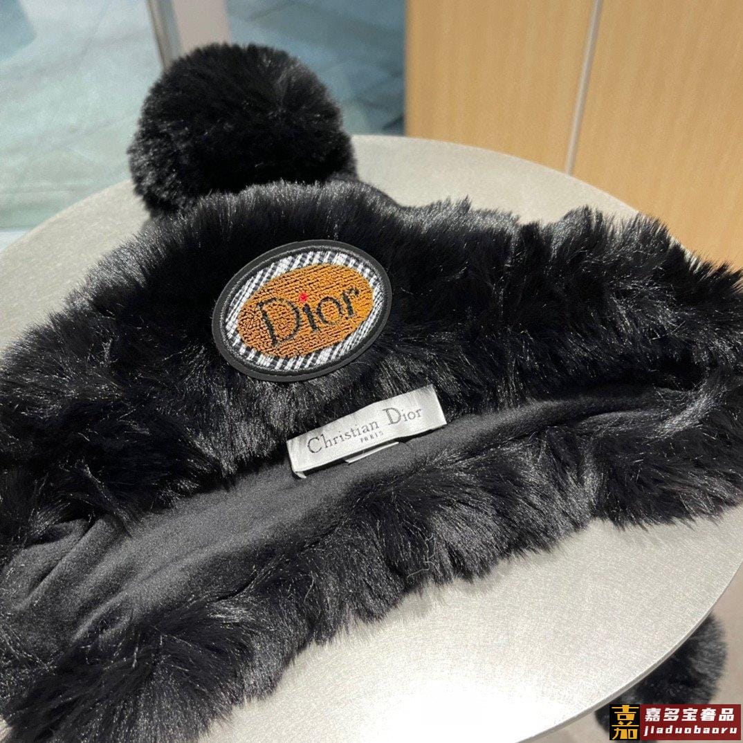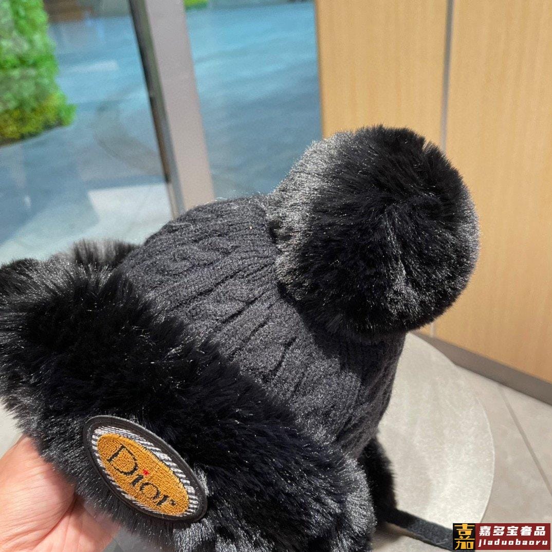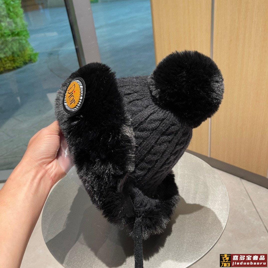 迪奥秋冬新款迪奥毛线帽韩版潮流套头加厚保暖毛球护耳朵针织帽