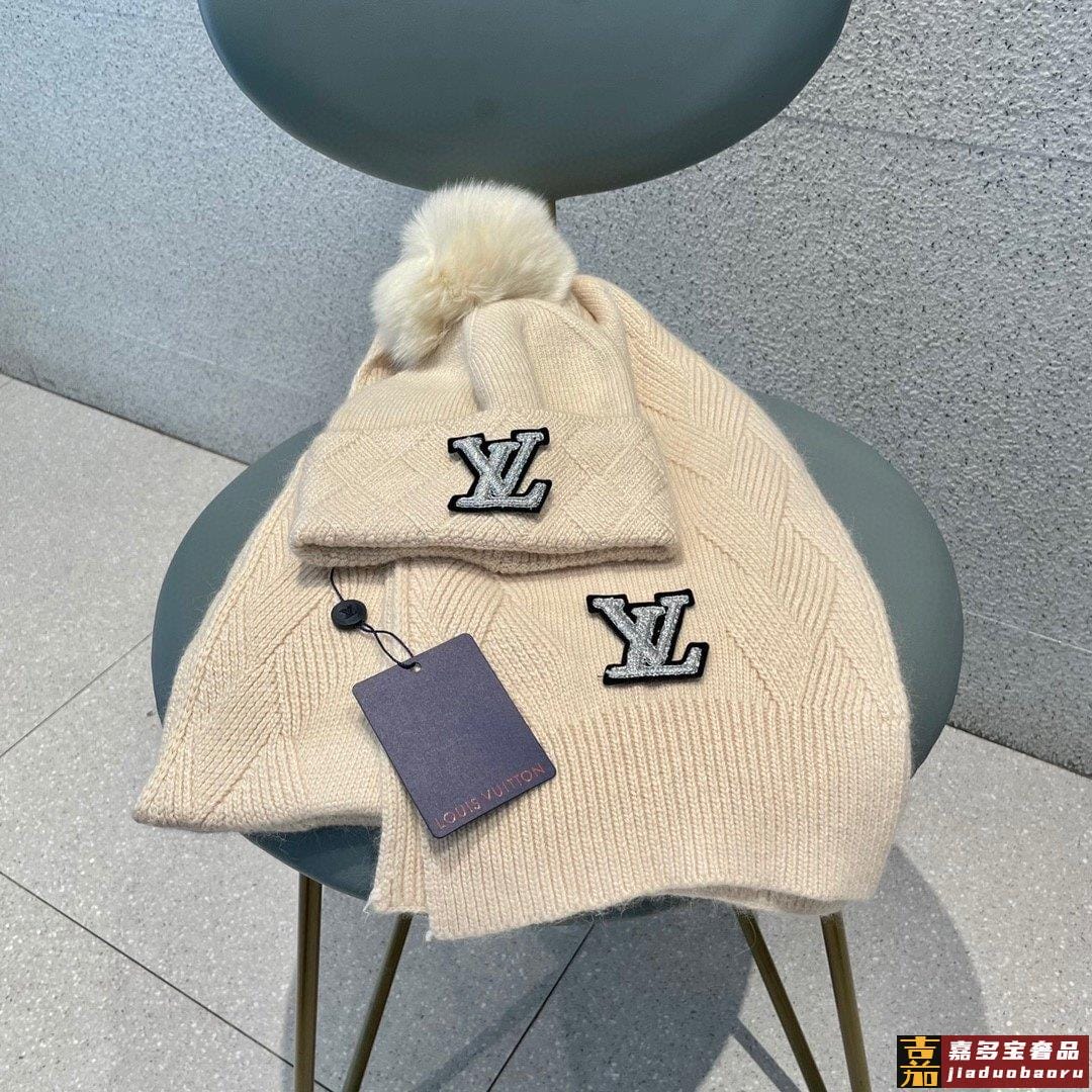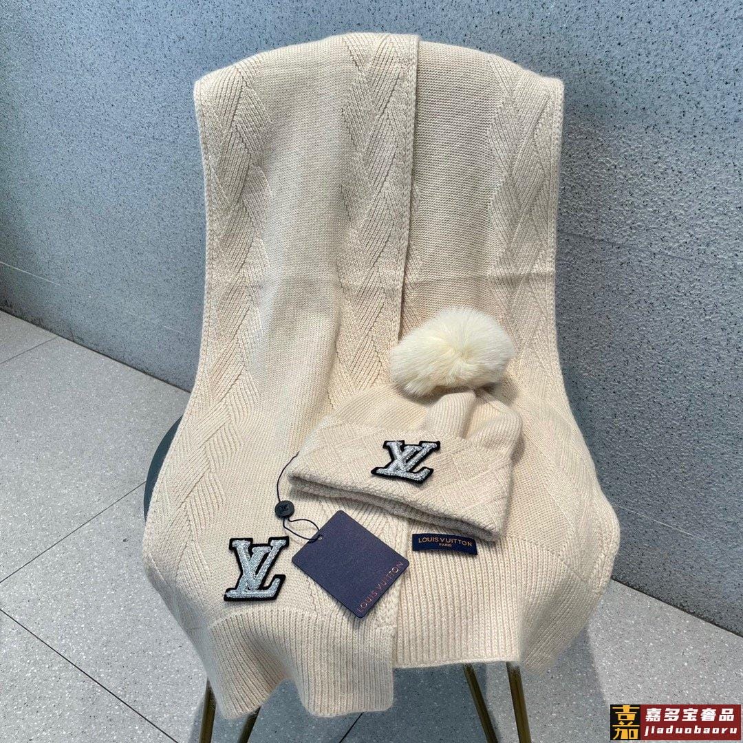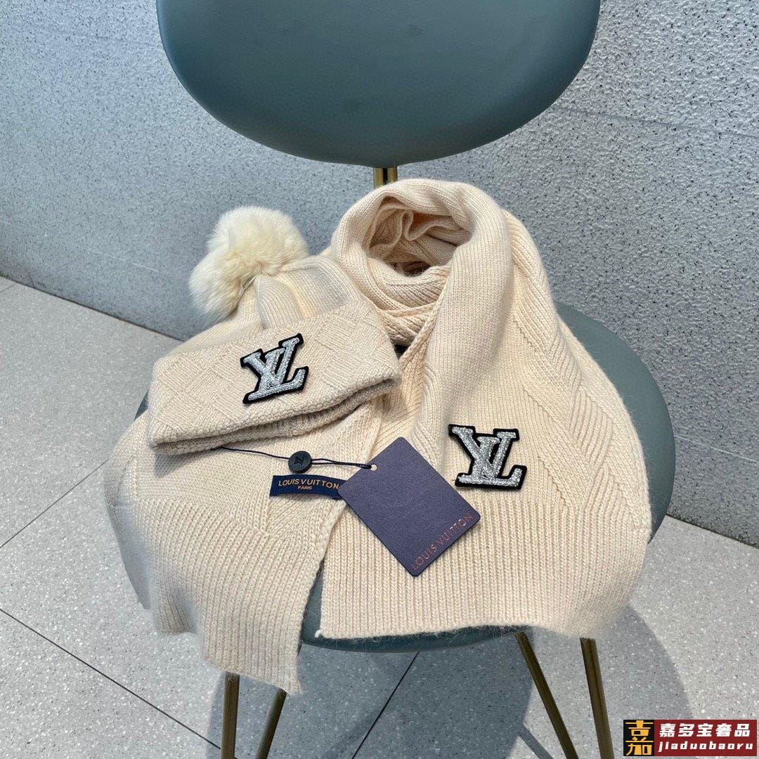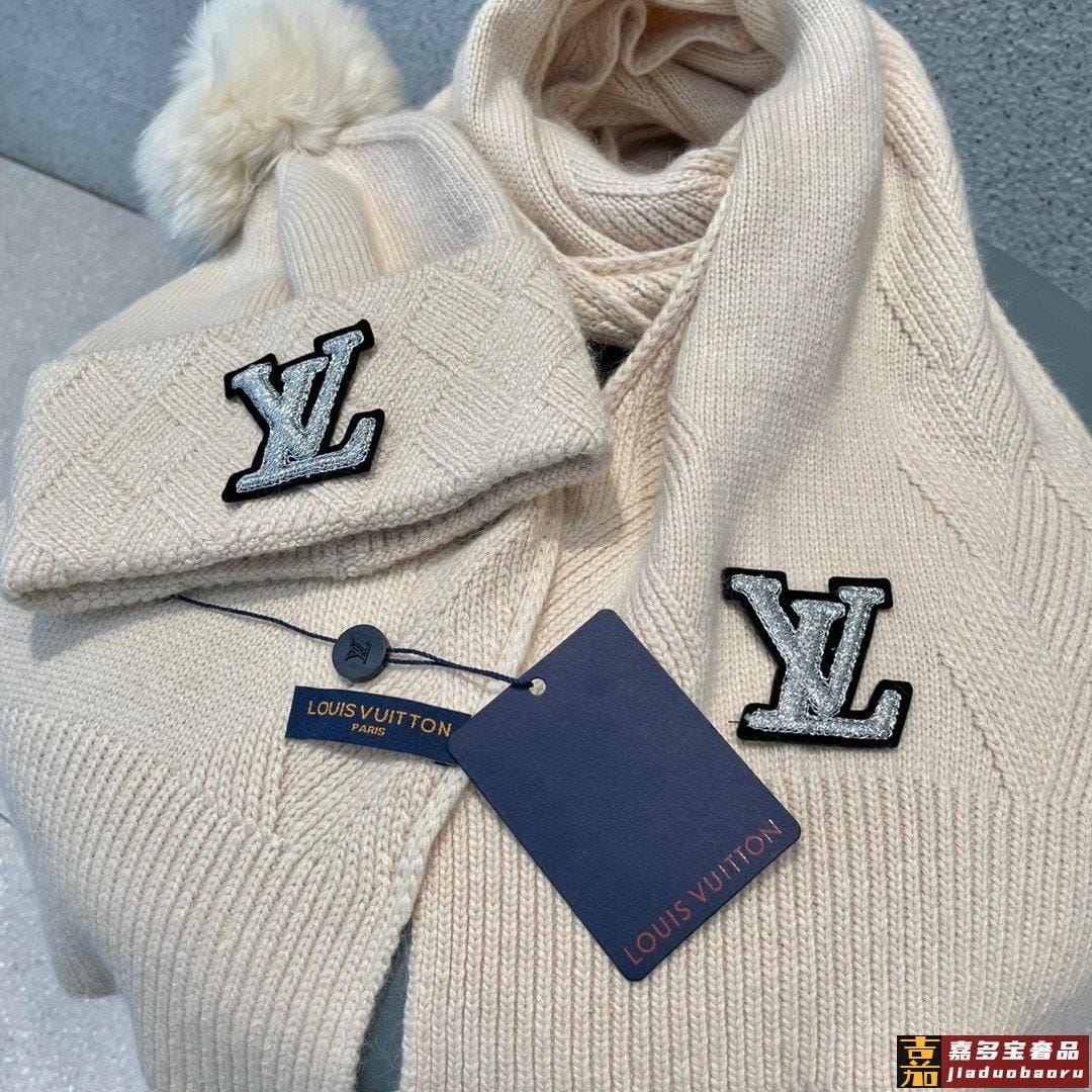 路易威登套装专柜同款羊绒帽子围巾套装原单全套品相非常柔软亲肤