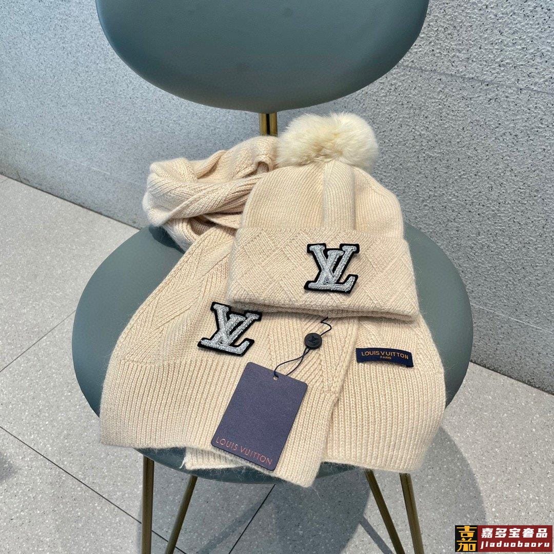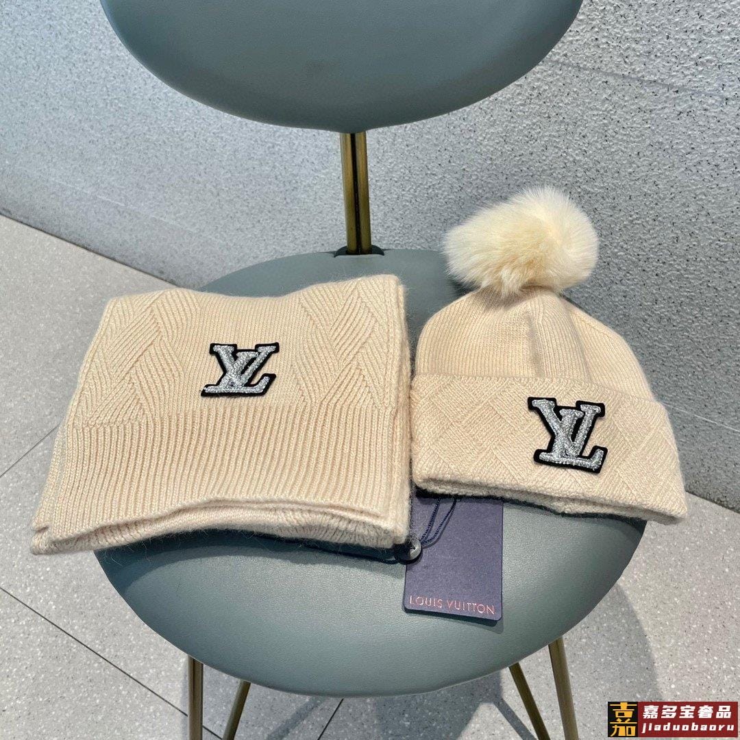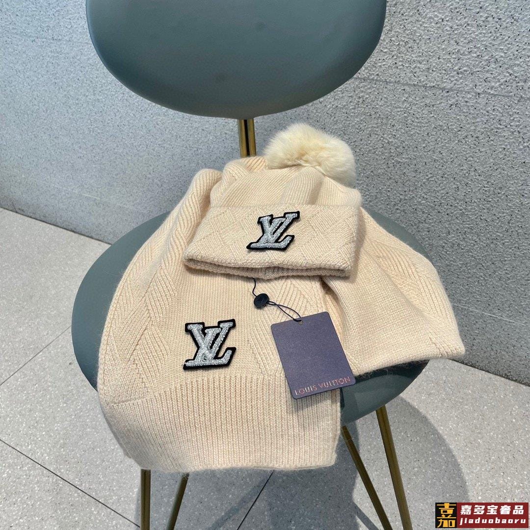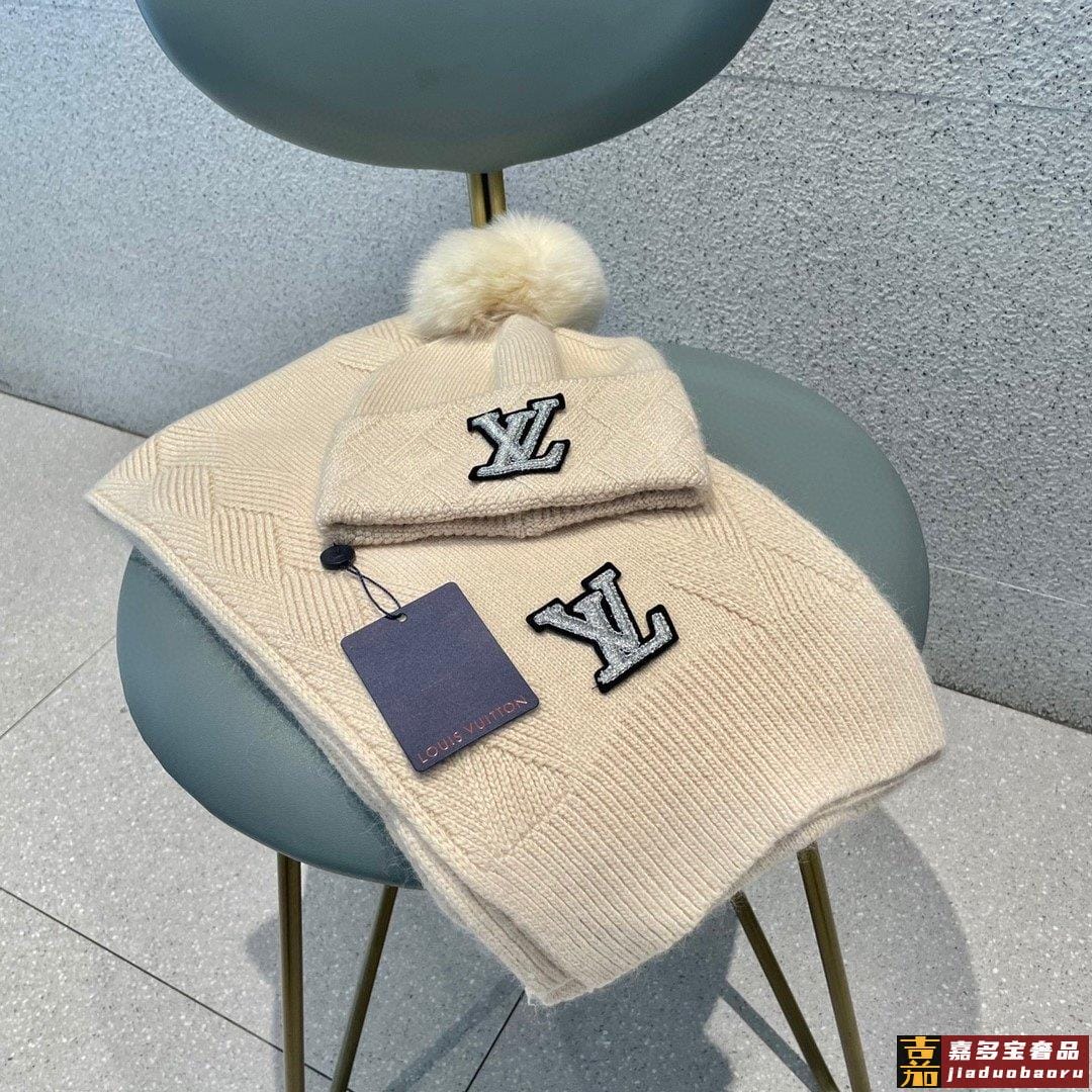 路易威登套装专柜同款羊绒帽子围巾套装原单全套品相非常柔软亲肤