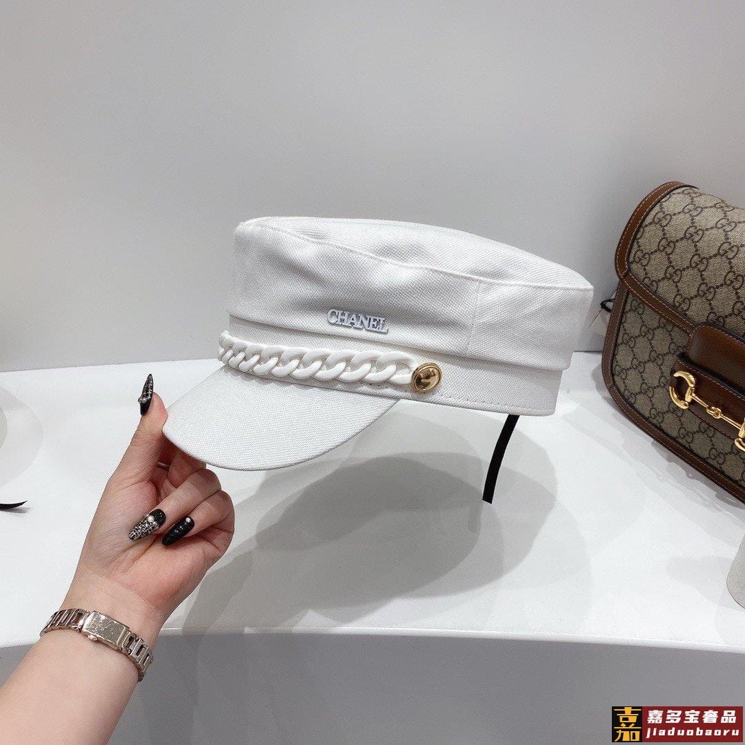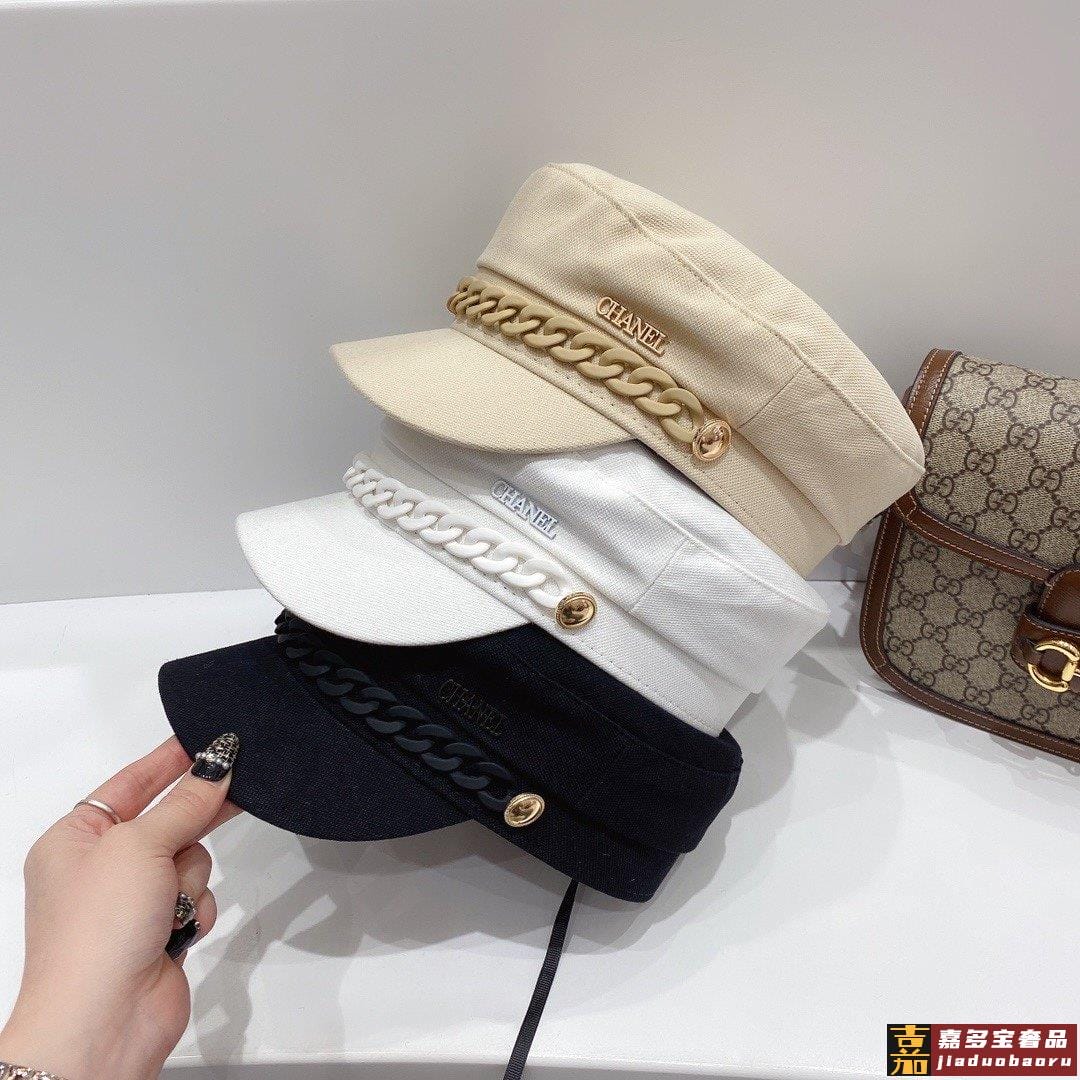小香春夏新款磨砂果冻链条装饰纯棉军帽高档定制帆布爆款军帽颜色