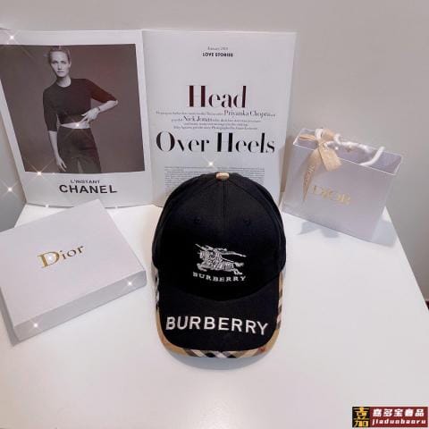 巴宝莉刺绣战马棒球帽格子包边棒球帽高品质刺绣棒球帽男女同款黑