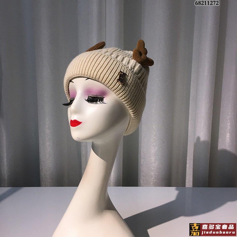 普拉达新款甜美风毛线帽子女士冬季可爱套头帽保暖加绒套头帽 <