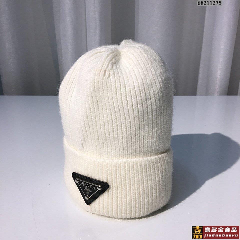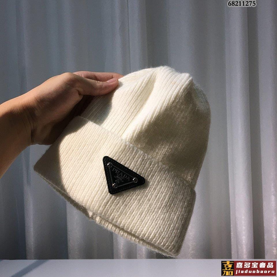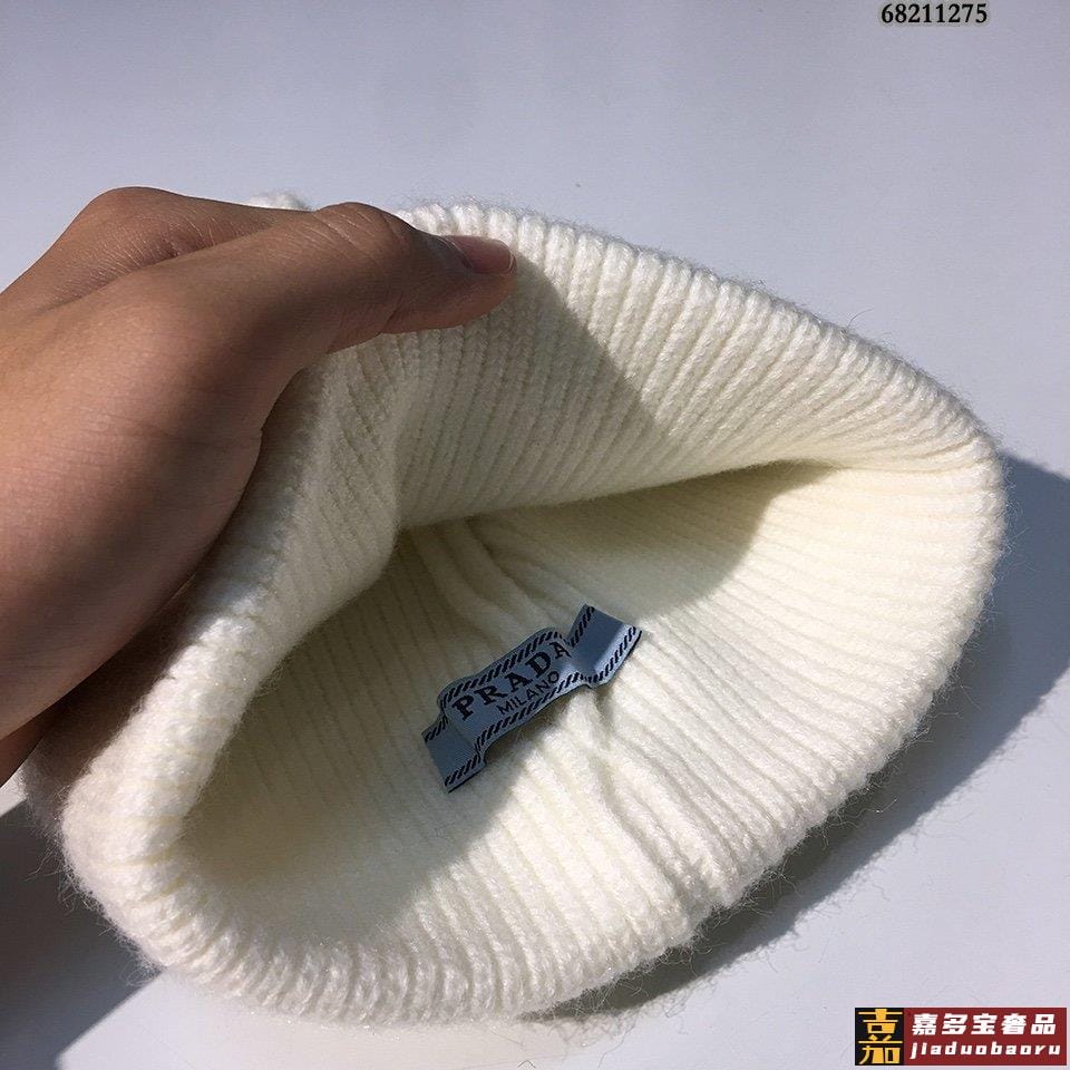 普拉达新款甜美风毛线帽子女士冬季可爱套头帽保暖加绒套头帽 <
