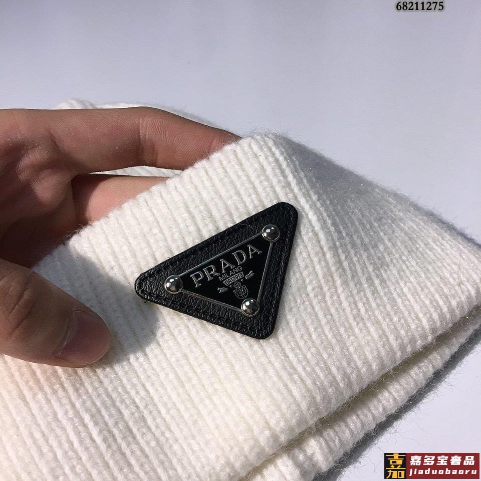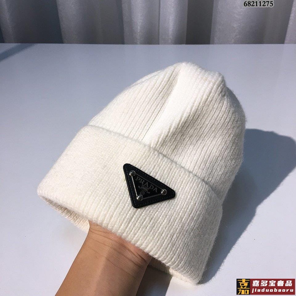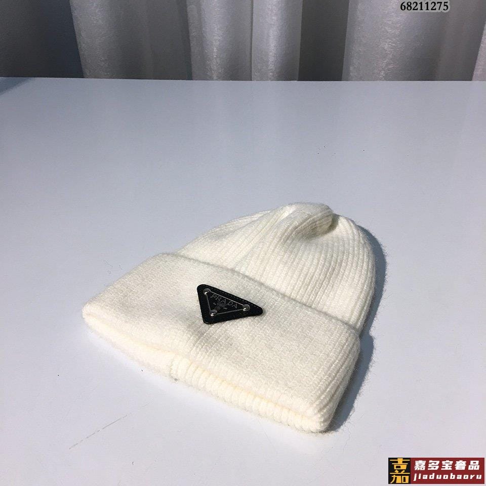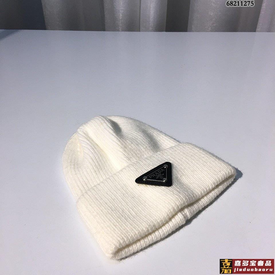 普拉达新款甜美风毛线帽子女士冬季可爱套头帽保暖加绒套头帽 <