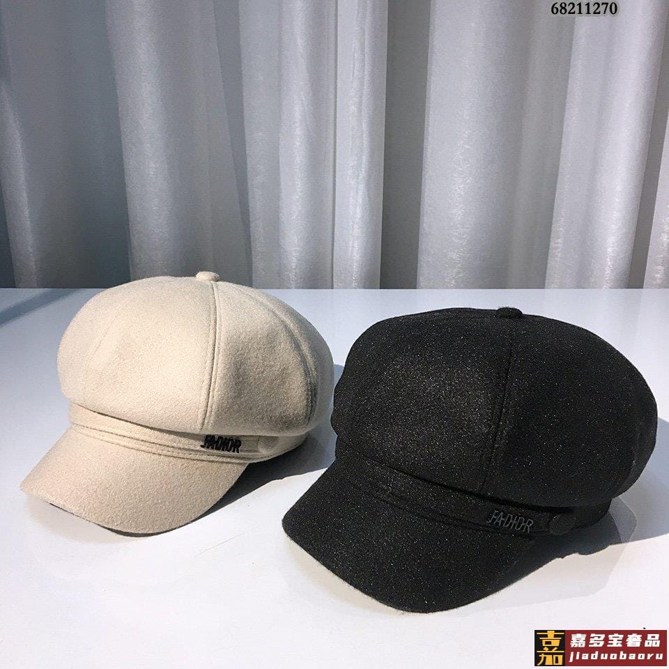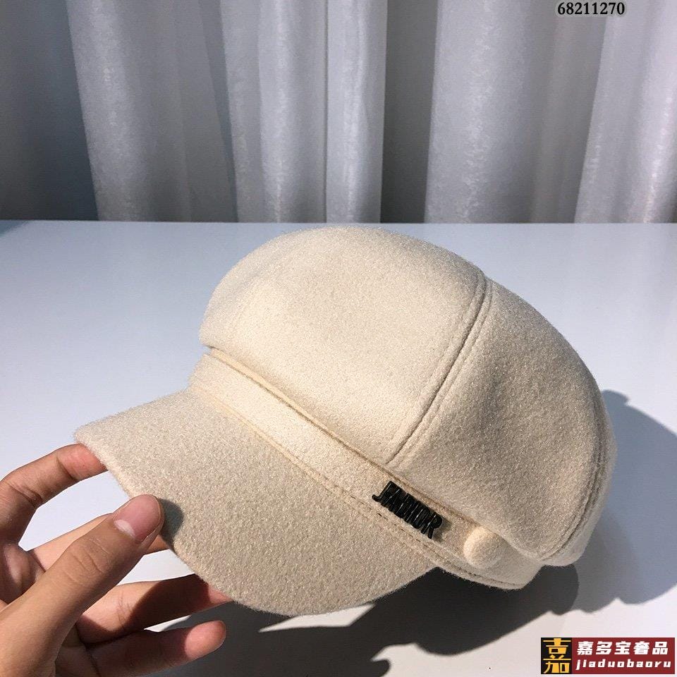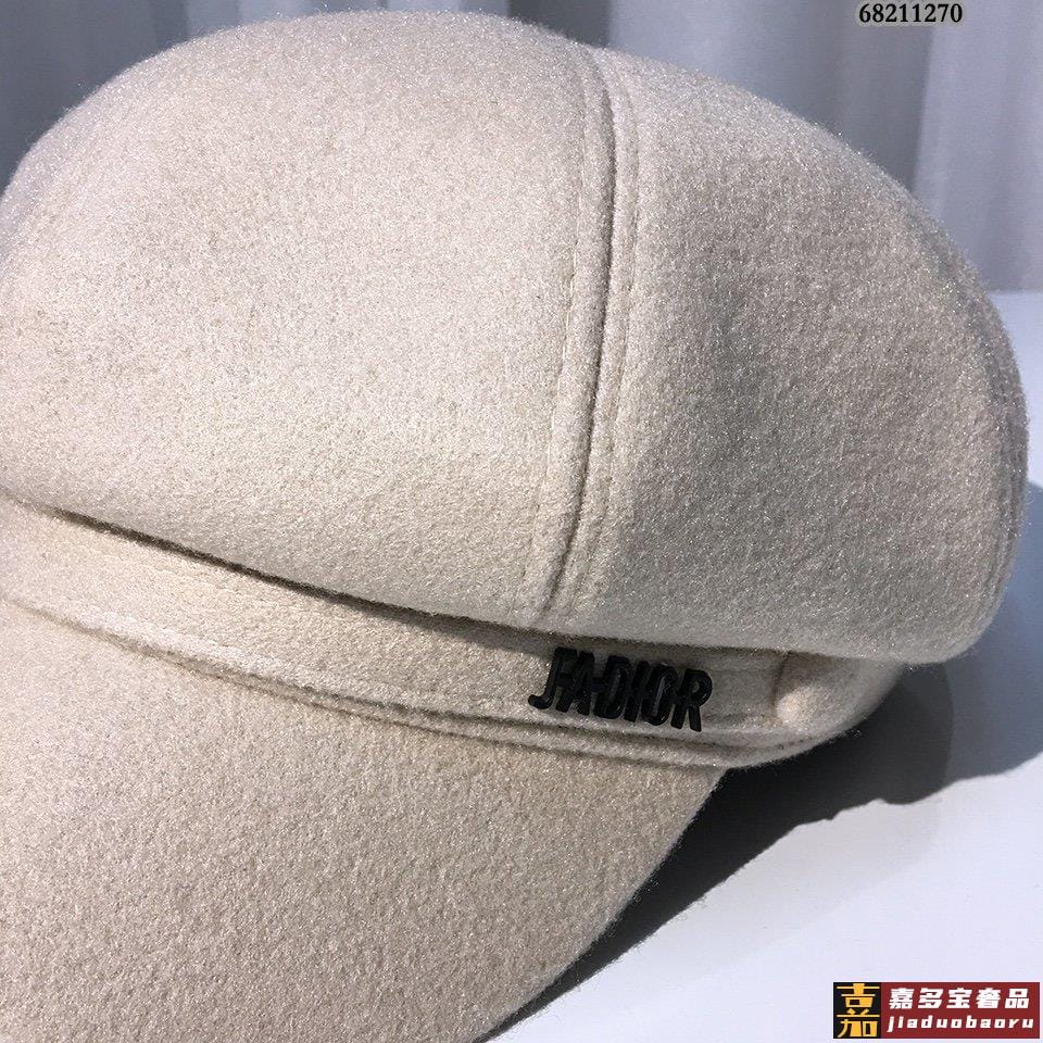 迪奥冬新款羊毛拼接皮质八角帽混羊毛帽身手感很柔软配戴舒适度满