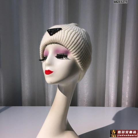 普拉达新款甜美风毛线帽子女士冬季可爱套头帽保暖加绒套头帽 <