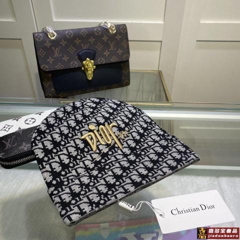 迪奥官网高端刺绣羊绒品质新款爆款专柜款双面针织帽细节做工都很