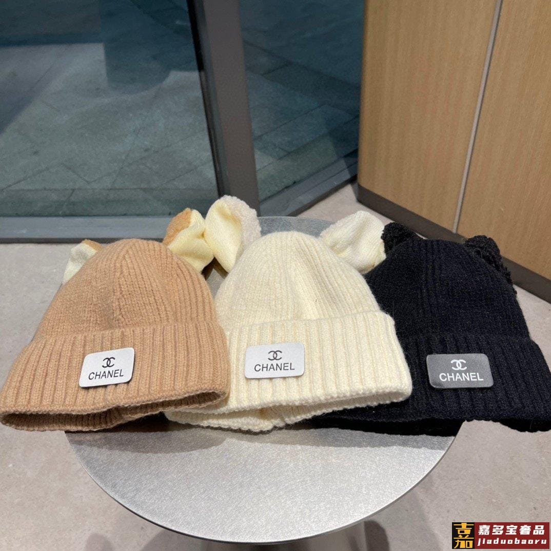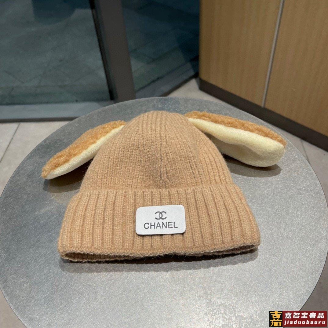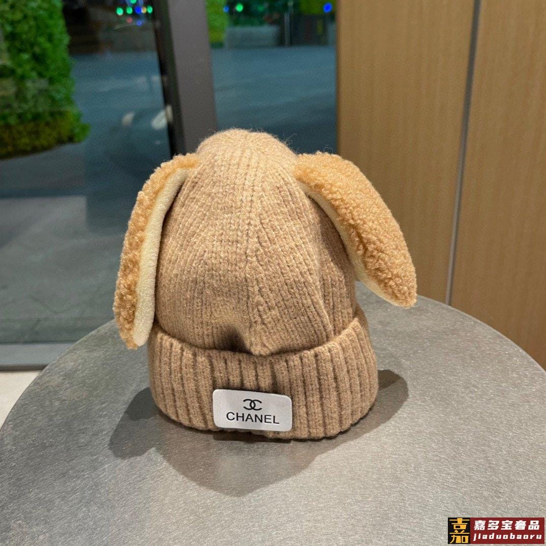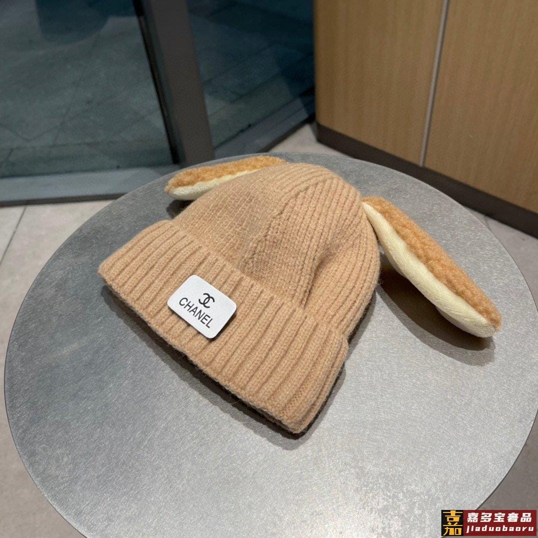 香奈儿秋冬新款可爱兔耳朵帽子女秋冬季针织毛线帽加绒保暖冬天韩