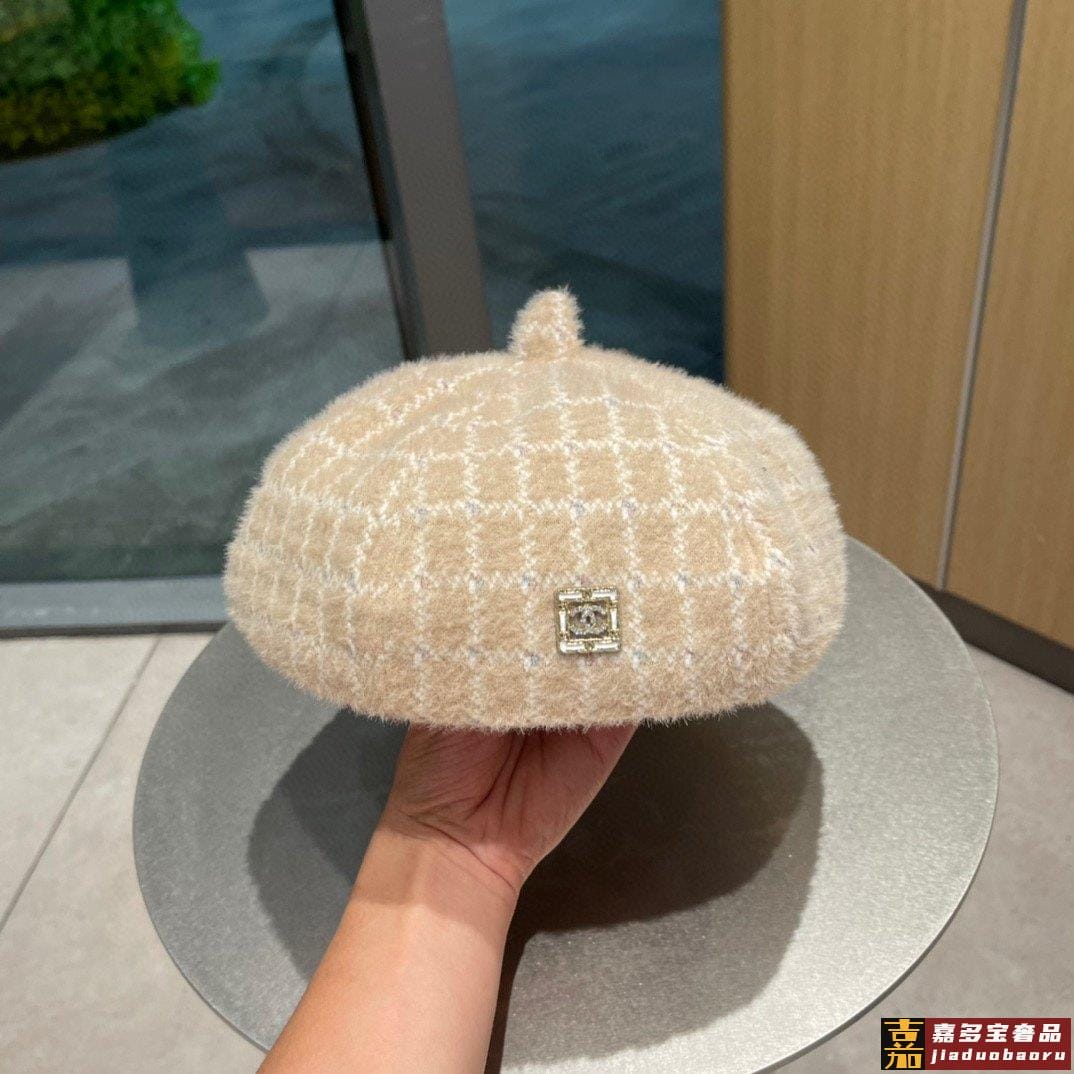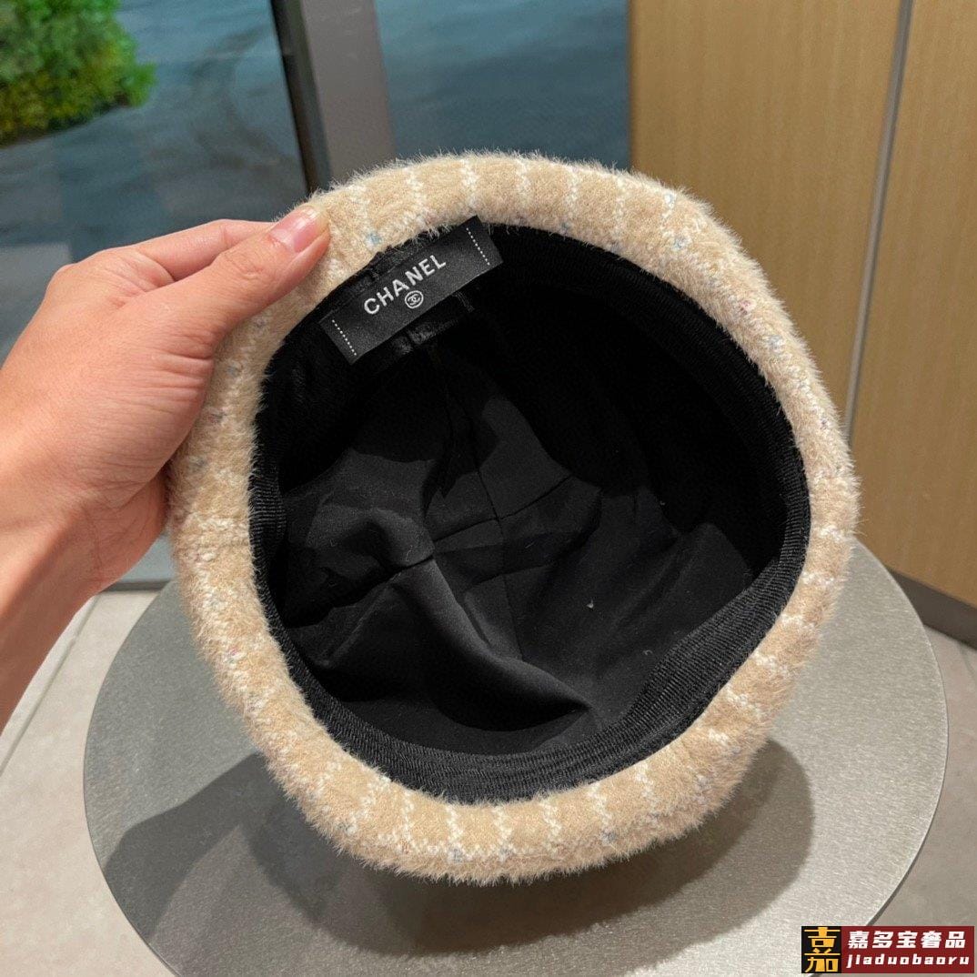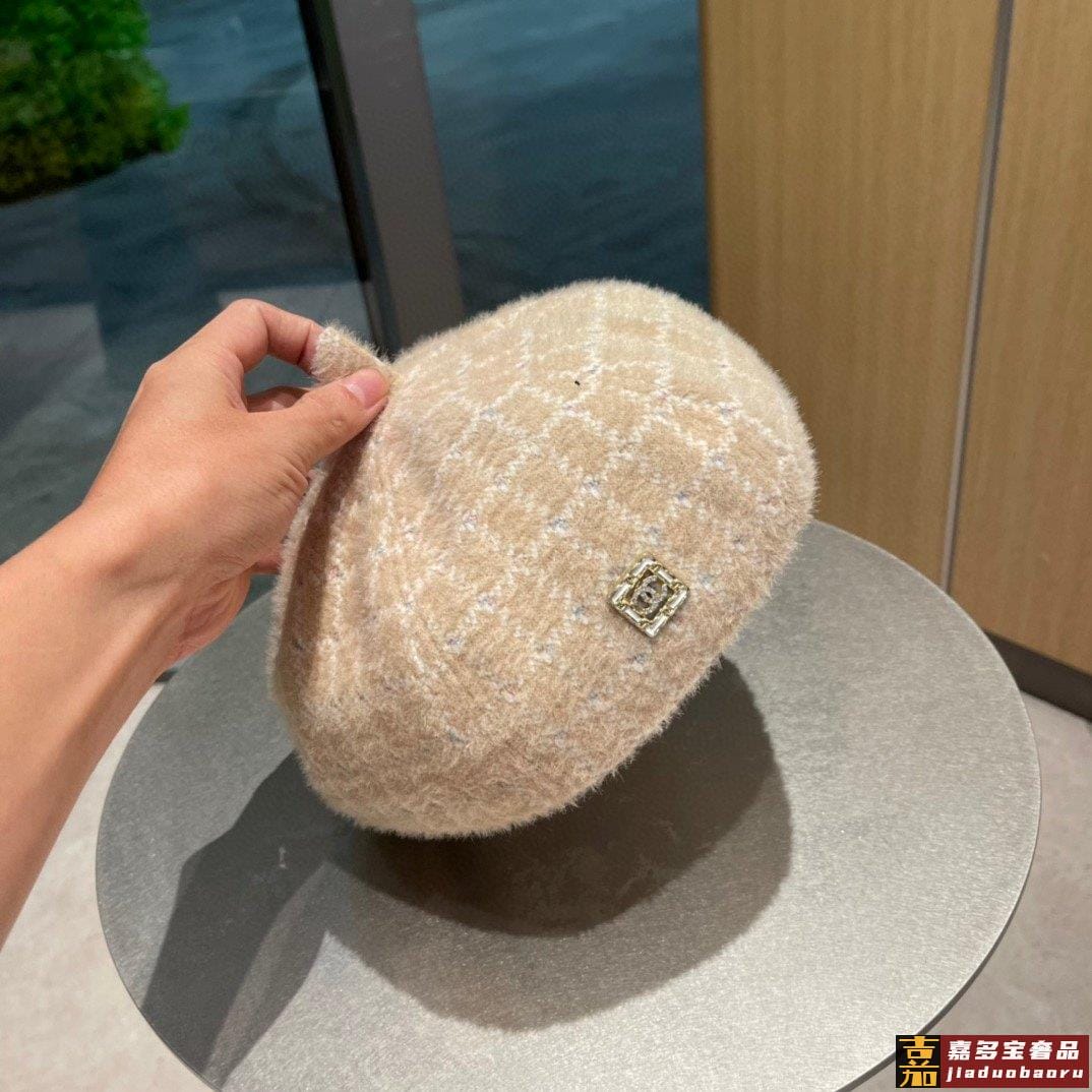 香奈儿秋冬新款羊绒纯棉毛贝雷帽小香风贝雷帽休闲时尚头围可调节