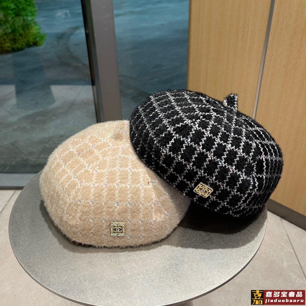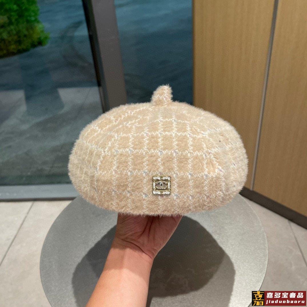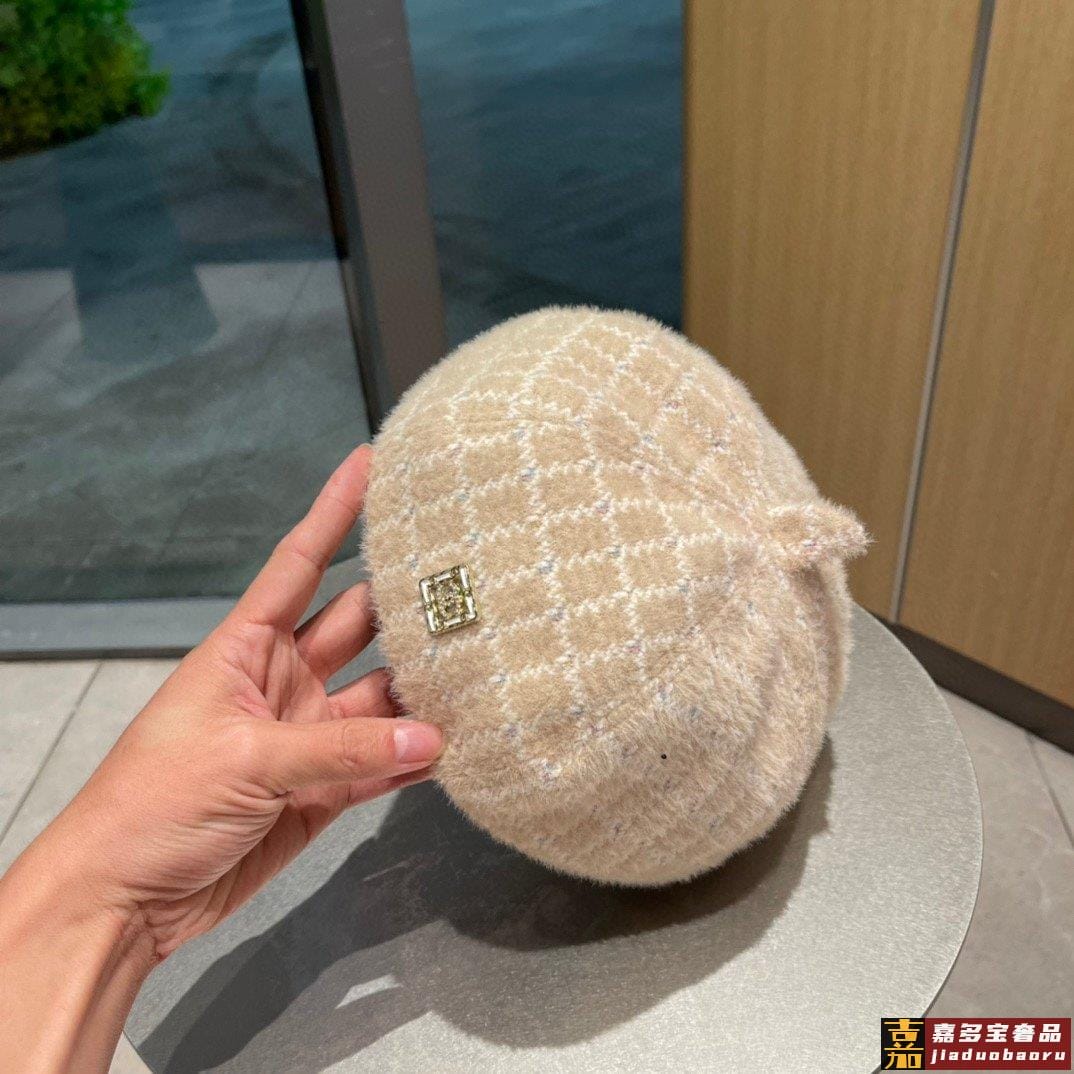 香奈儿秋冬新款羊绒纯棉毛贝雷帽小香风贝雷帽休闲时尚头围可调节