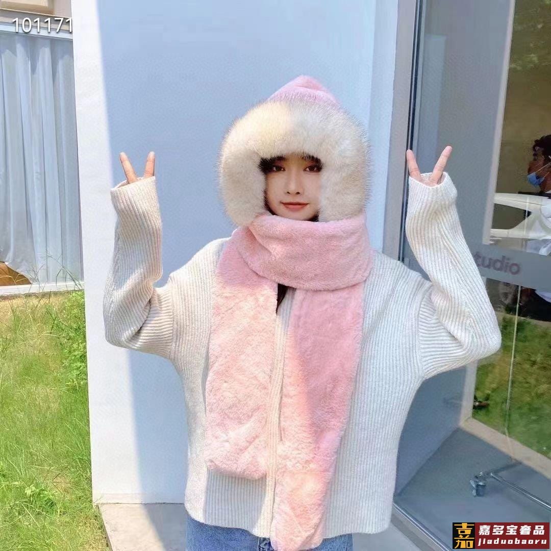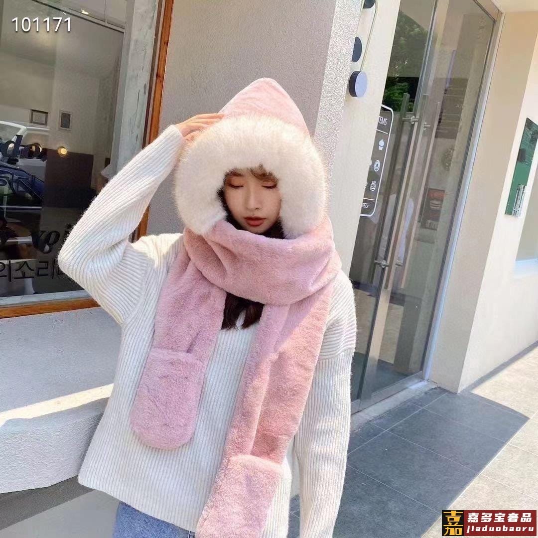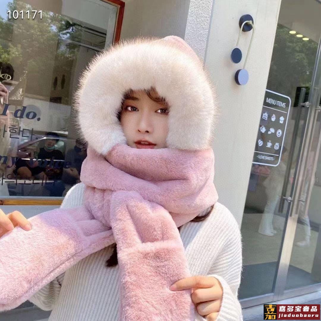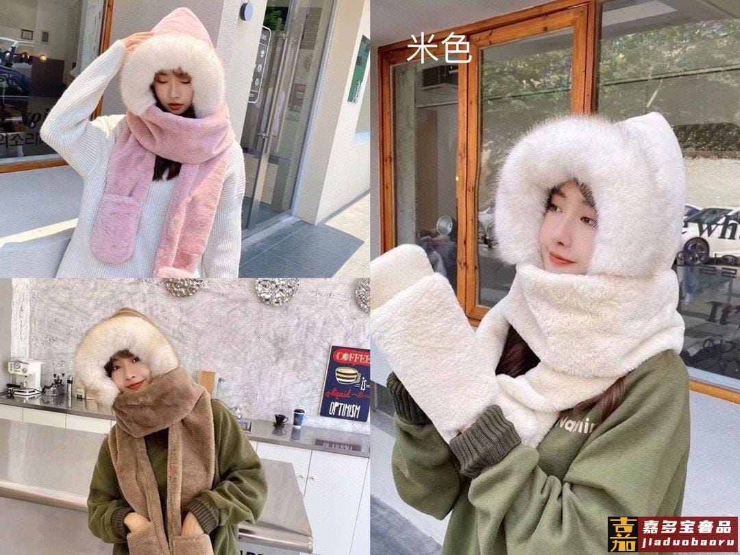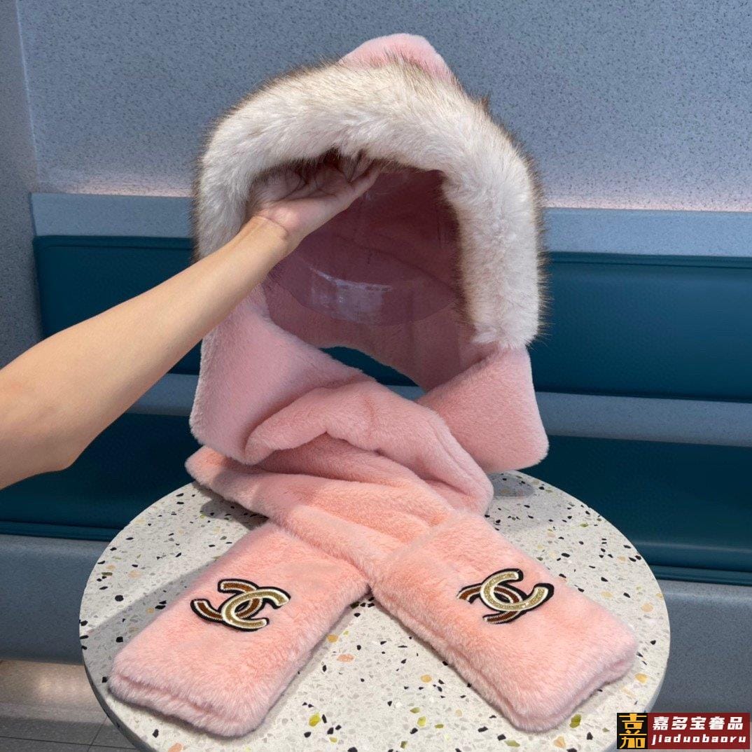 香奈儿秋冬季帽子女可爱韩版潮百搭毛绒围脖冬天手套围巾帽子一体