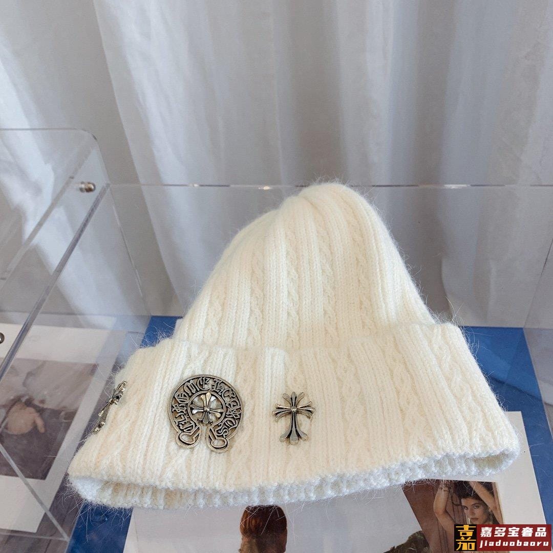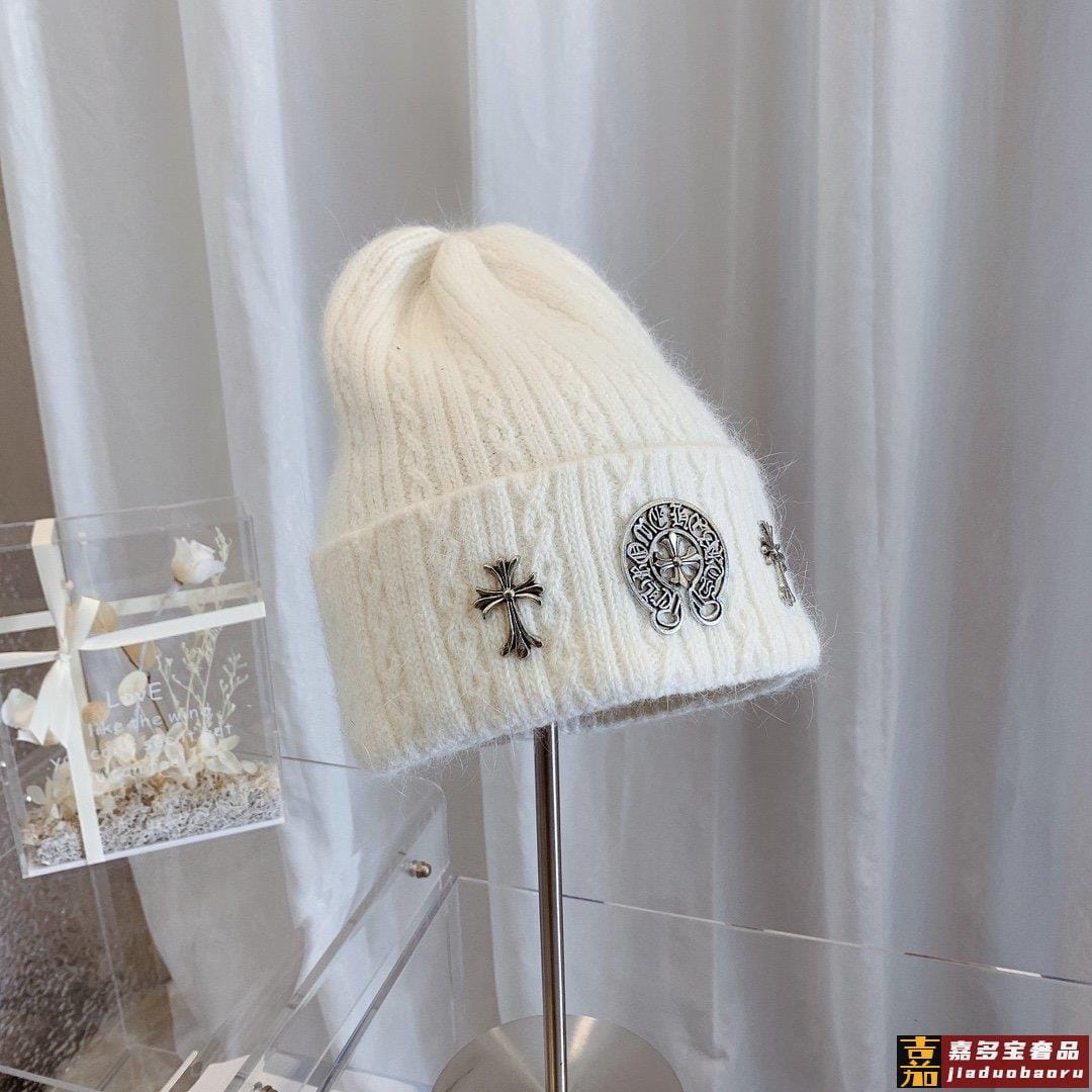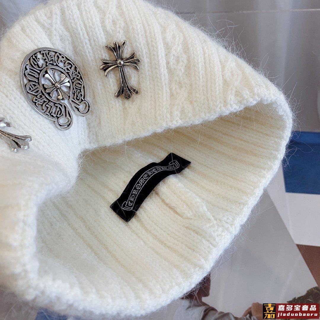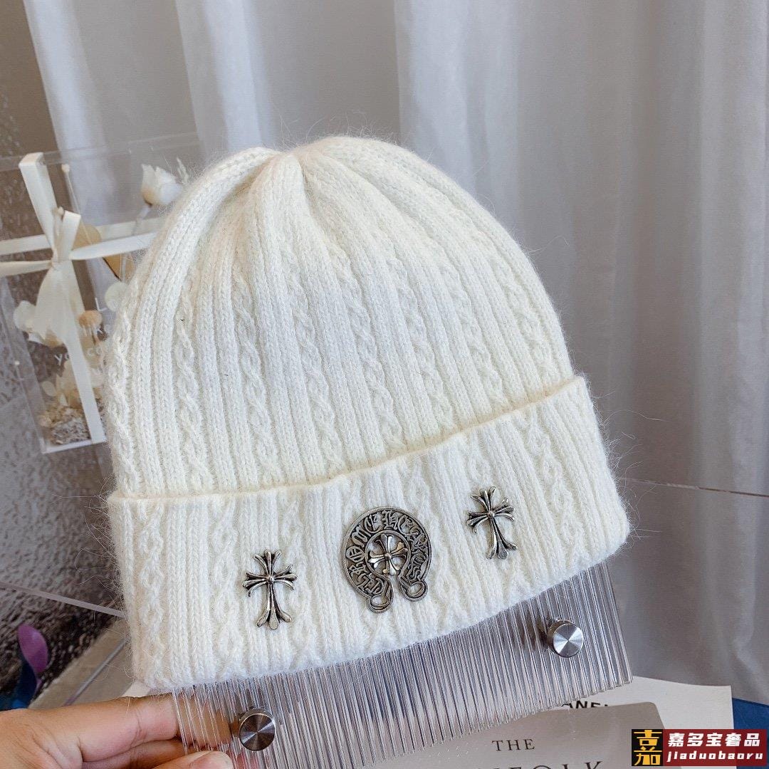 克罗心新款复古标志手勾针织毛线帽网红时尚博主同款手勾泡泡颗粒
