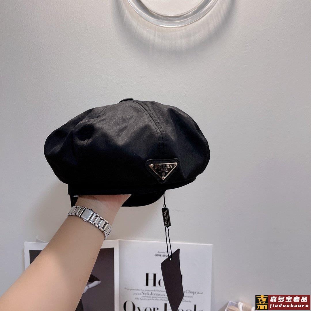 普拉达专柜同步缎面八角贝雷帽高级缎面奢华感被小红书时尚达人推