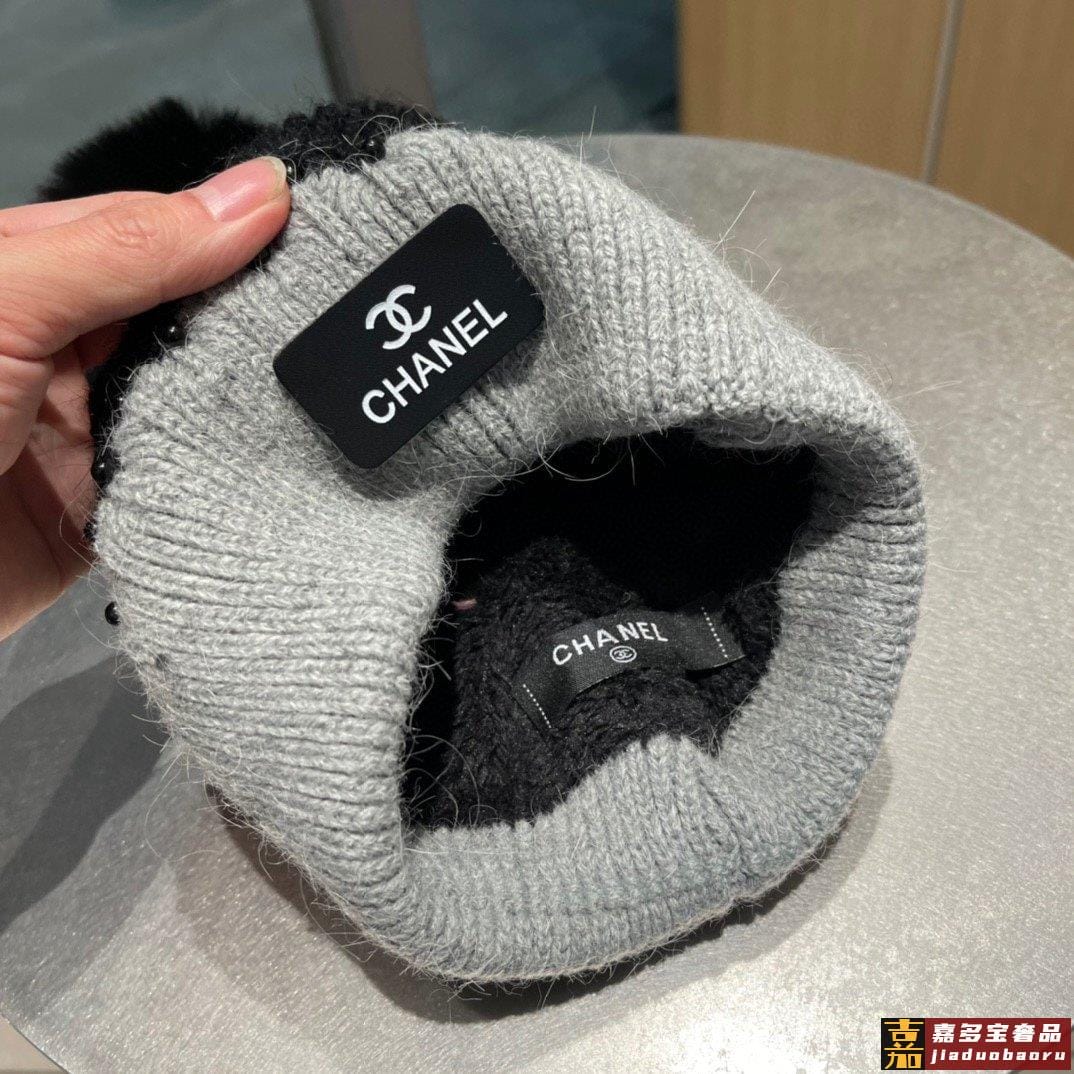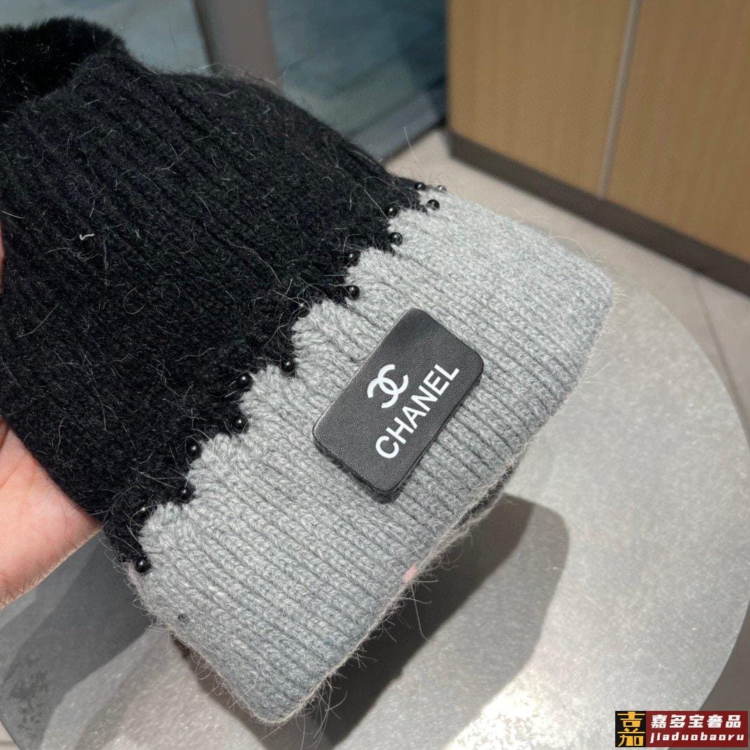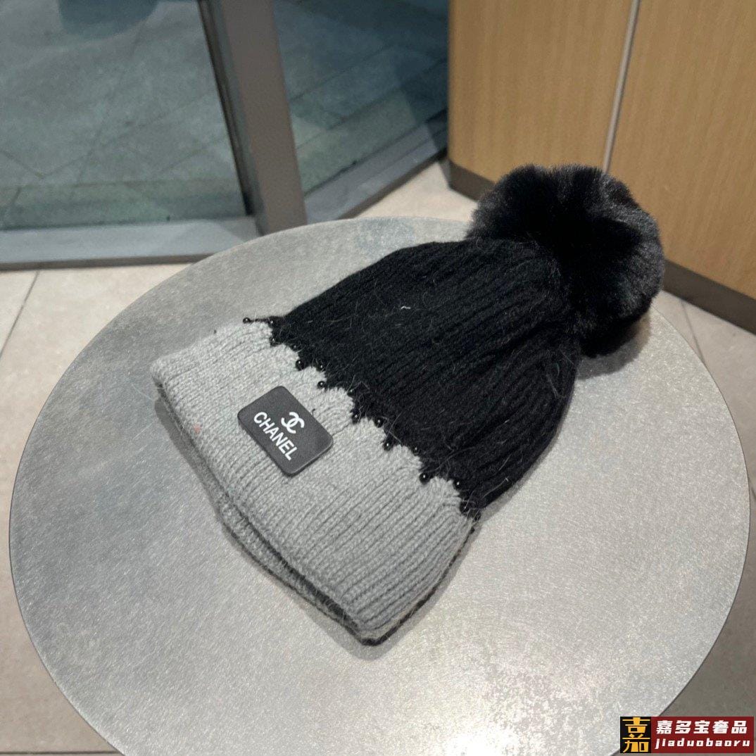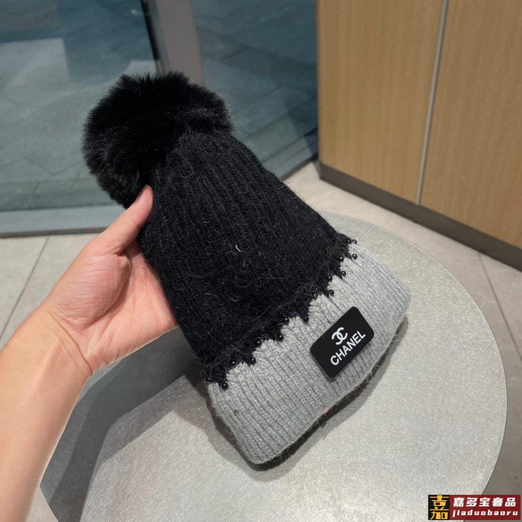 香奈儿秋冬新款毛线帽简约大气日系珍珠包围边针织毛线帽可爱保暖