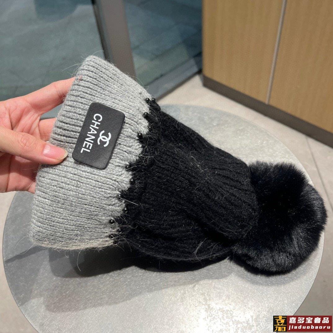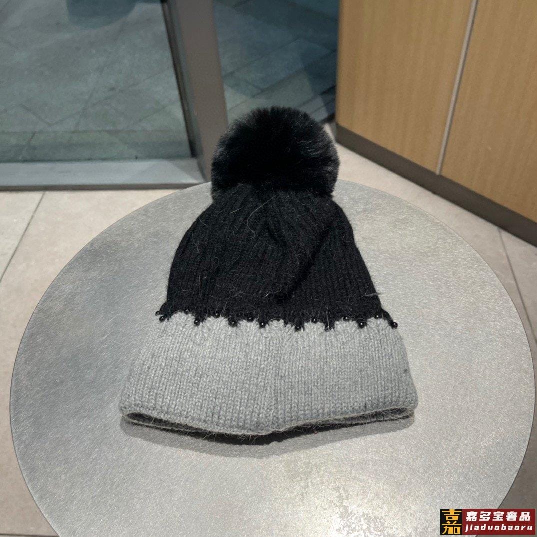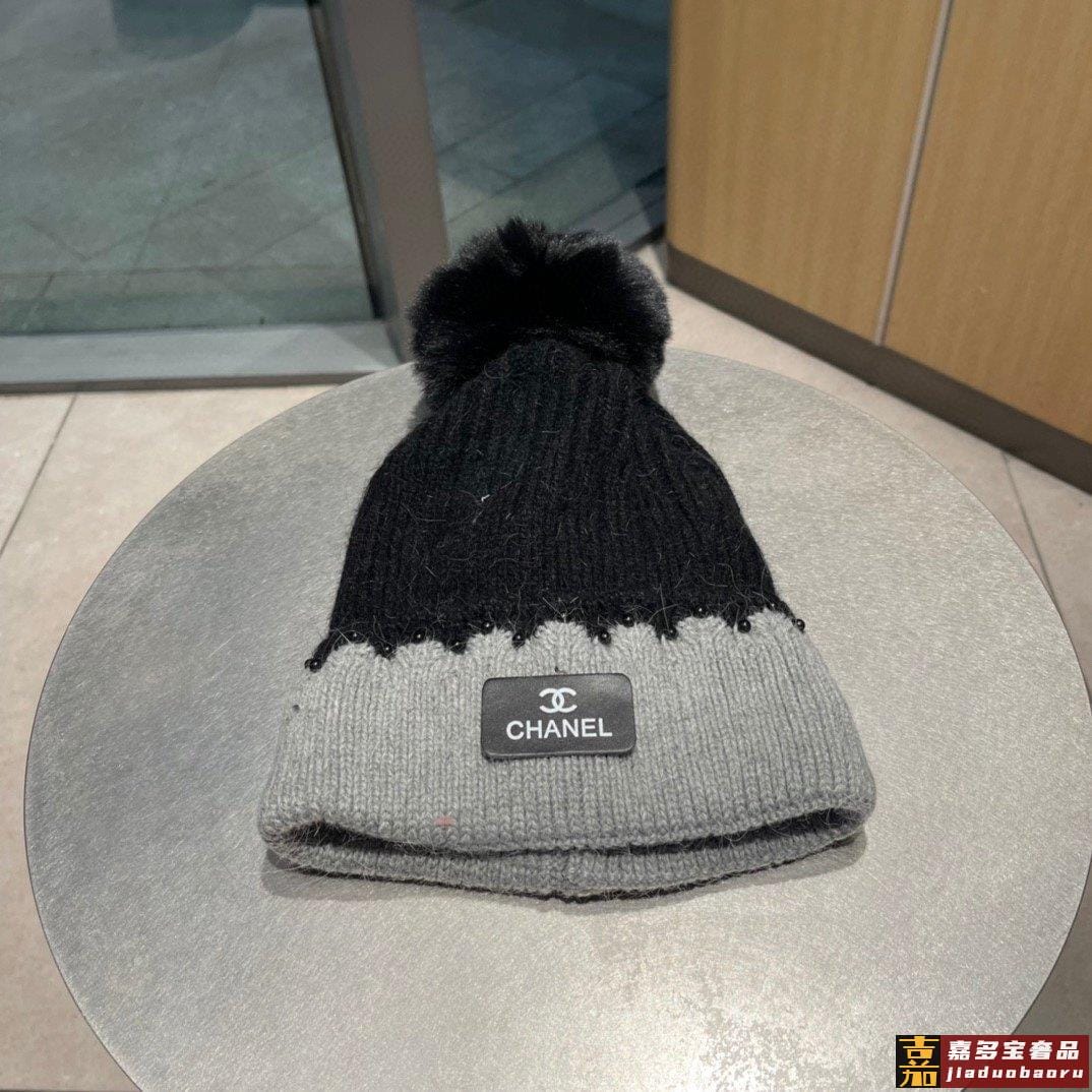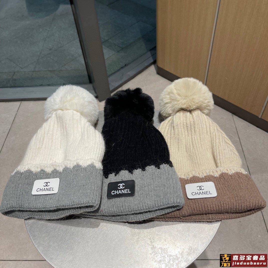 香奈儿秋冬新款毛线帽简约大气日系珍珠包围边针织毛线帽可爱保暖