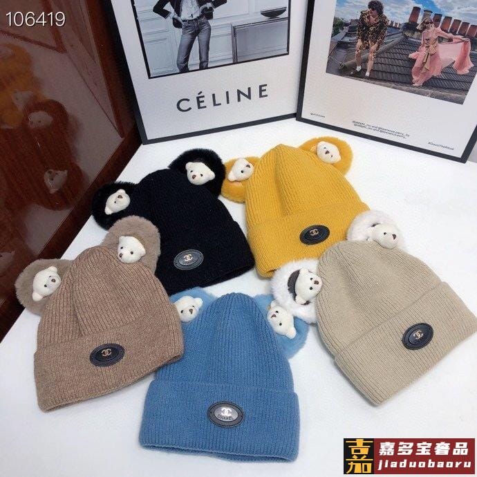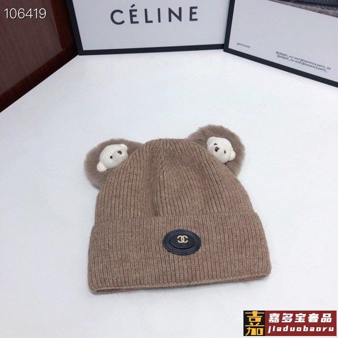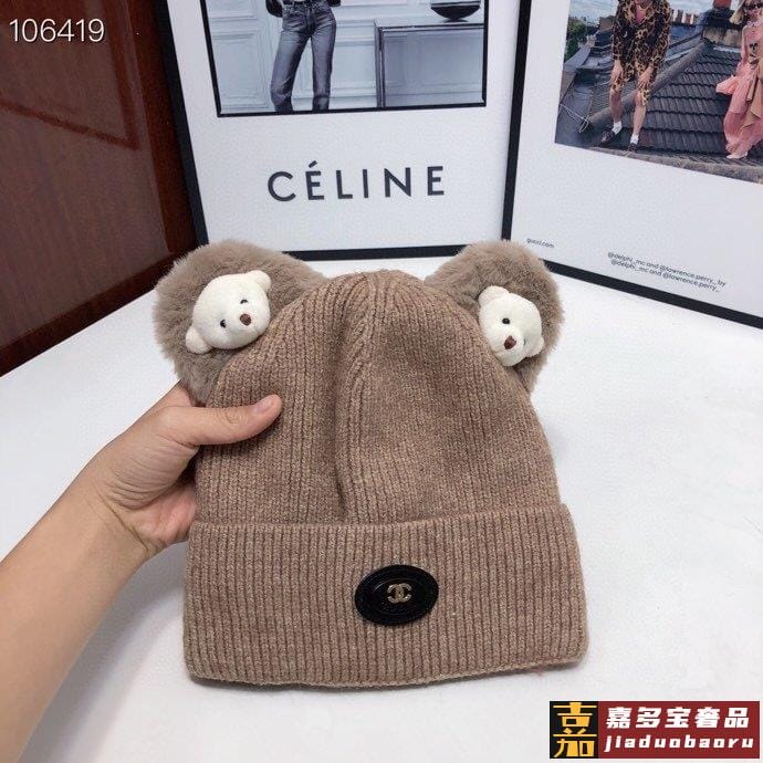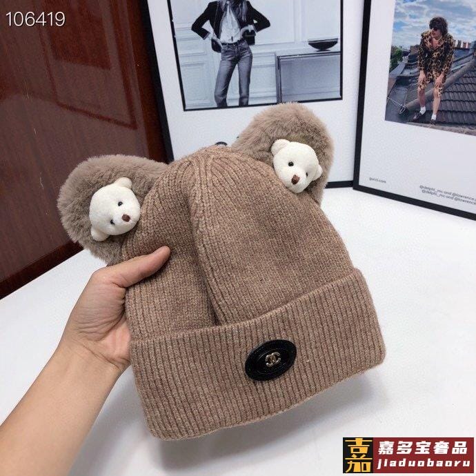 香奈儿新款羊毛小熊毛线帽细节做都工很精致经男典女都经回典货