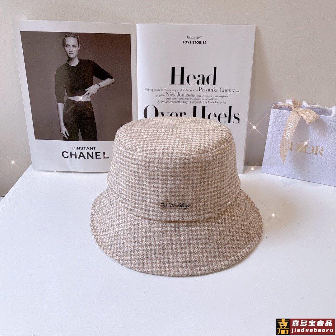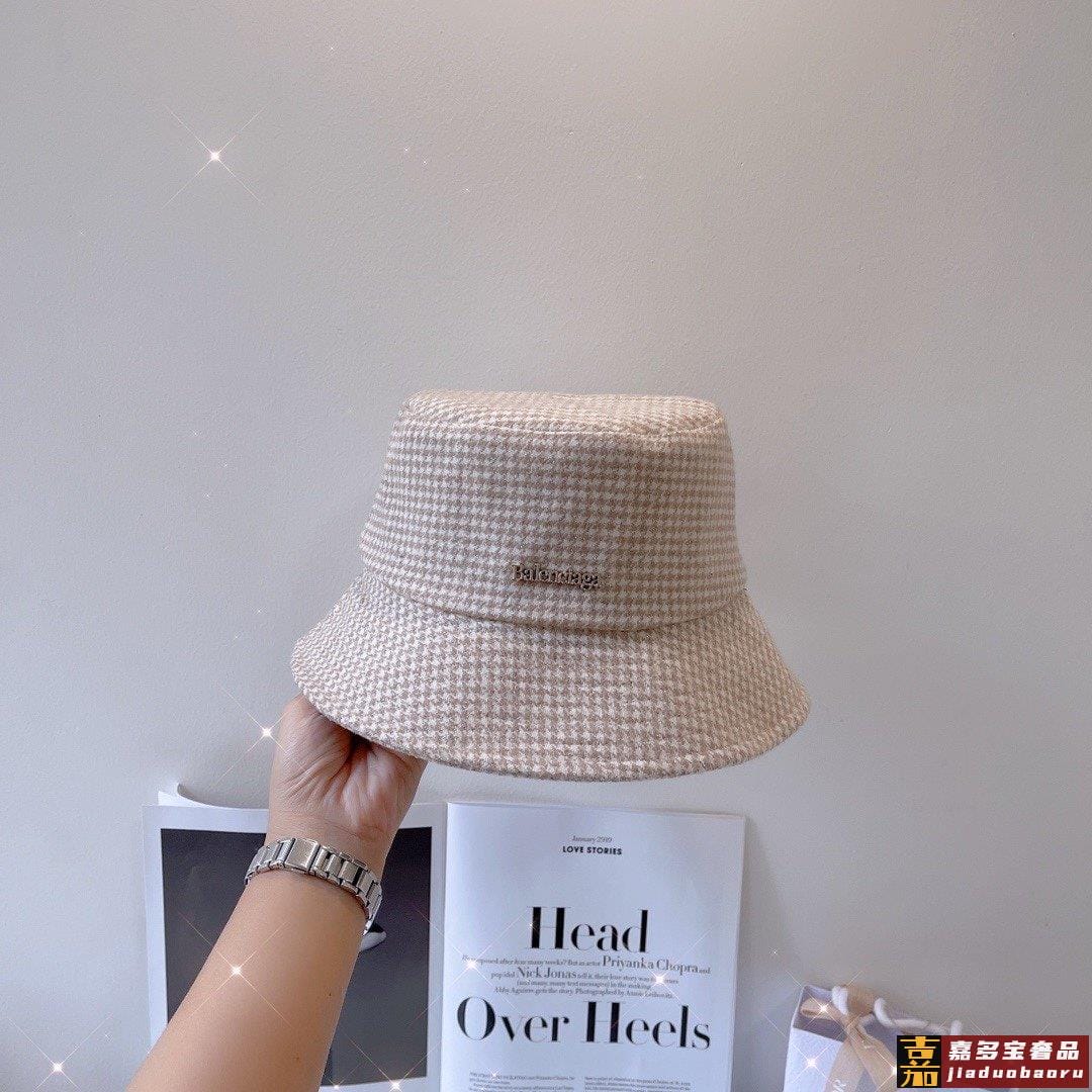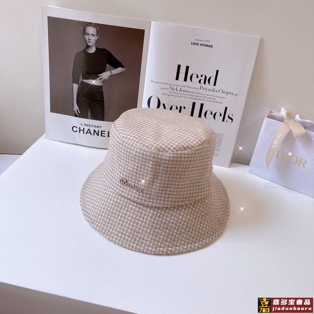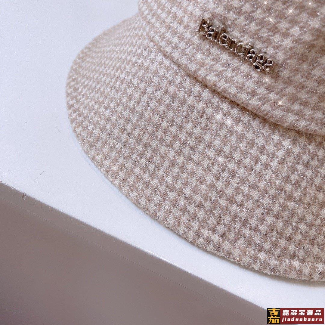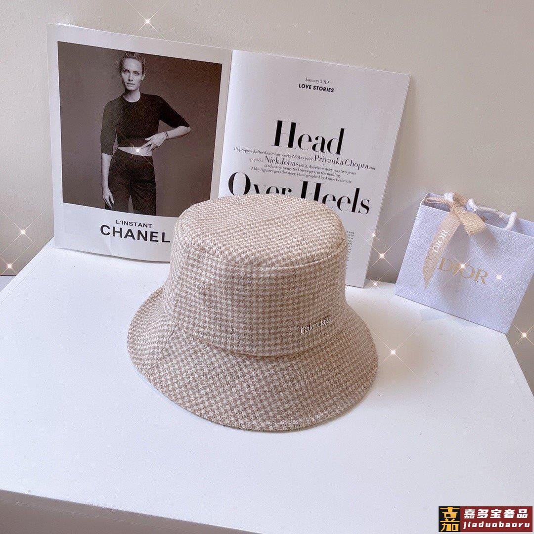巴黎家秋冬款千鸟格闪光丝渔夫帽巨洋气的款式实物的千鸟格有轻微