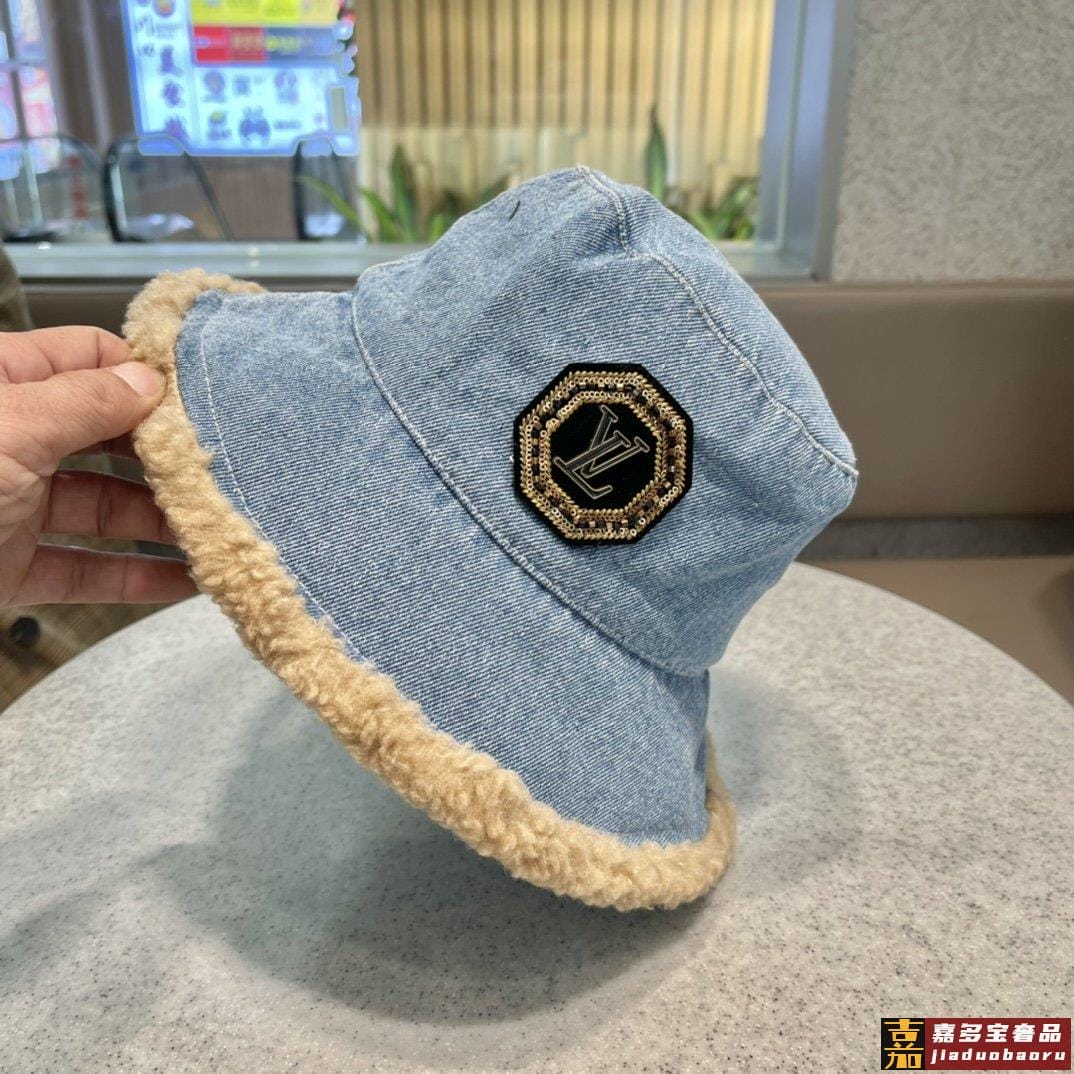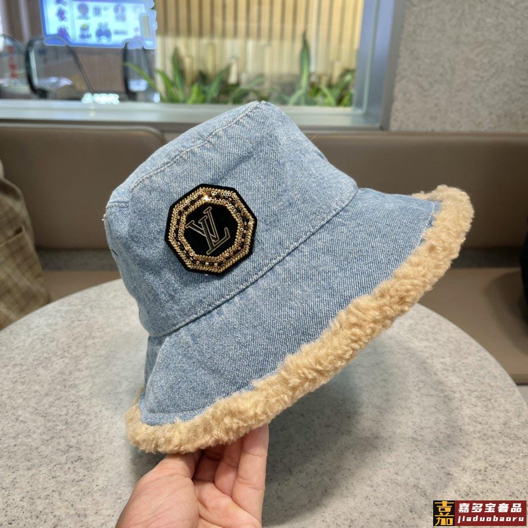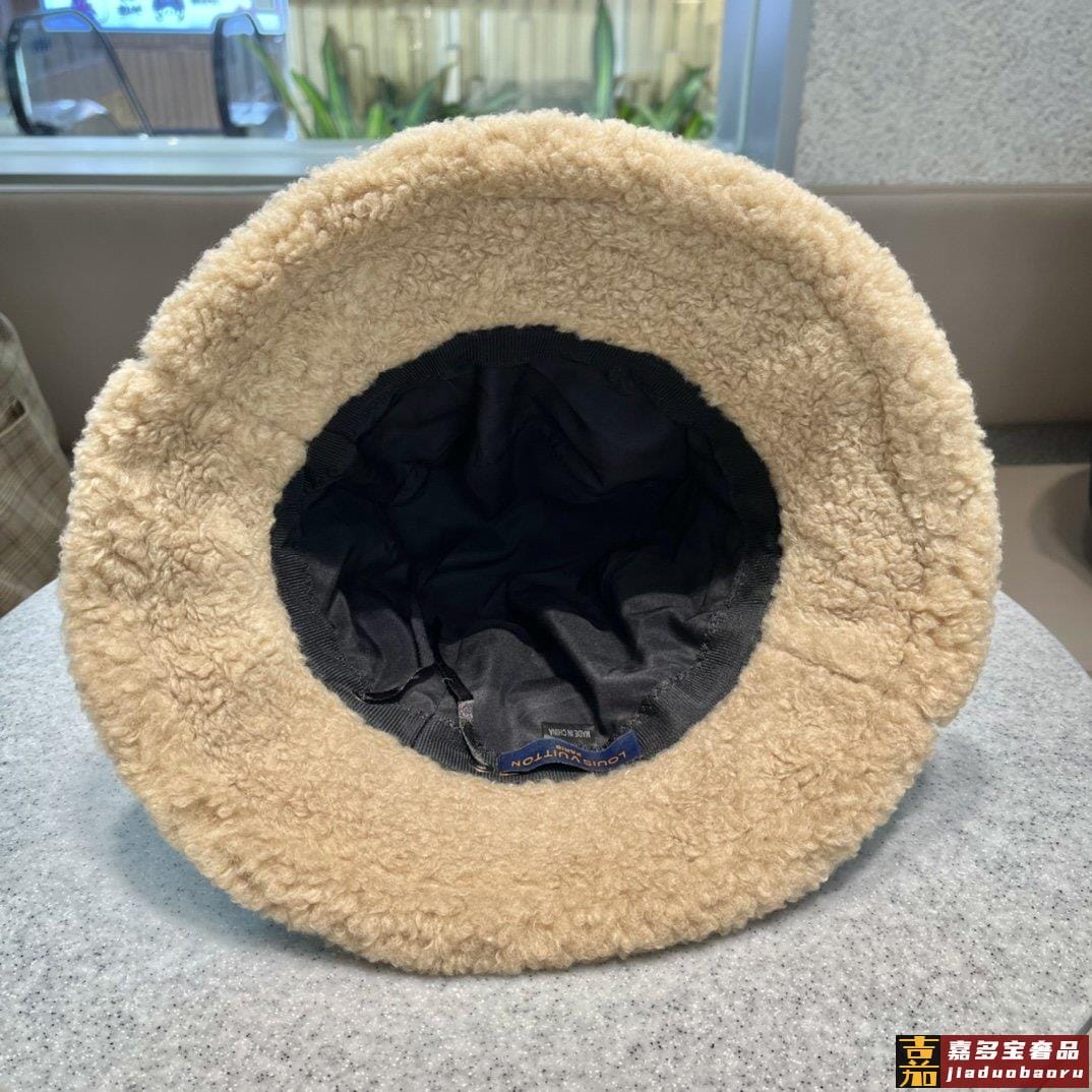 路易威登秋冬新款日系时尚百搭简约羊羔绒渔夫帽女文艺减龄休闲
