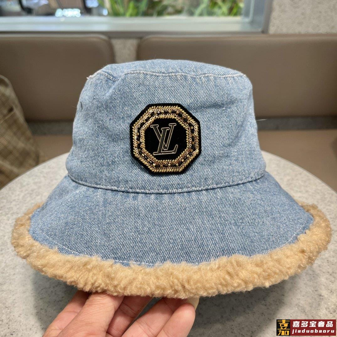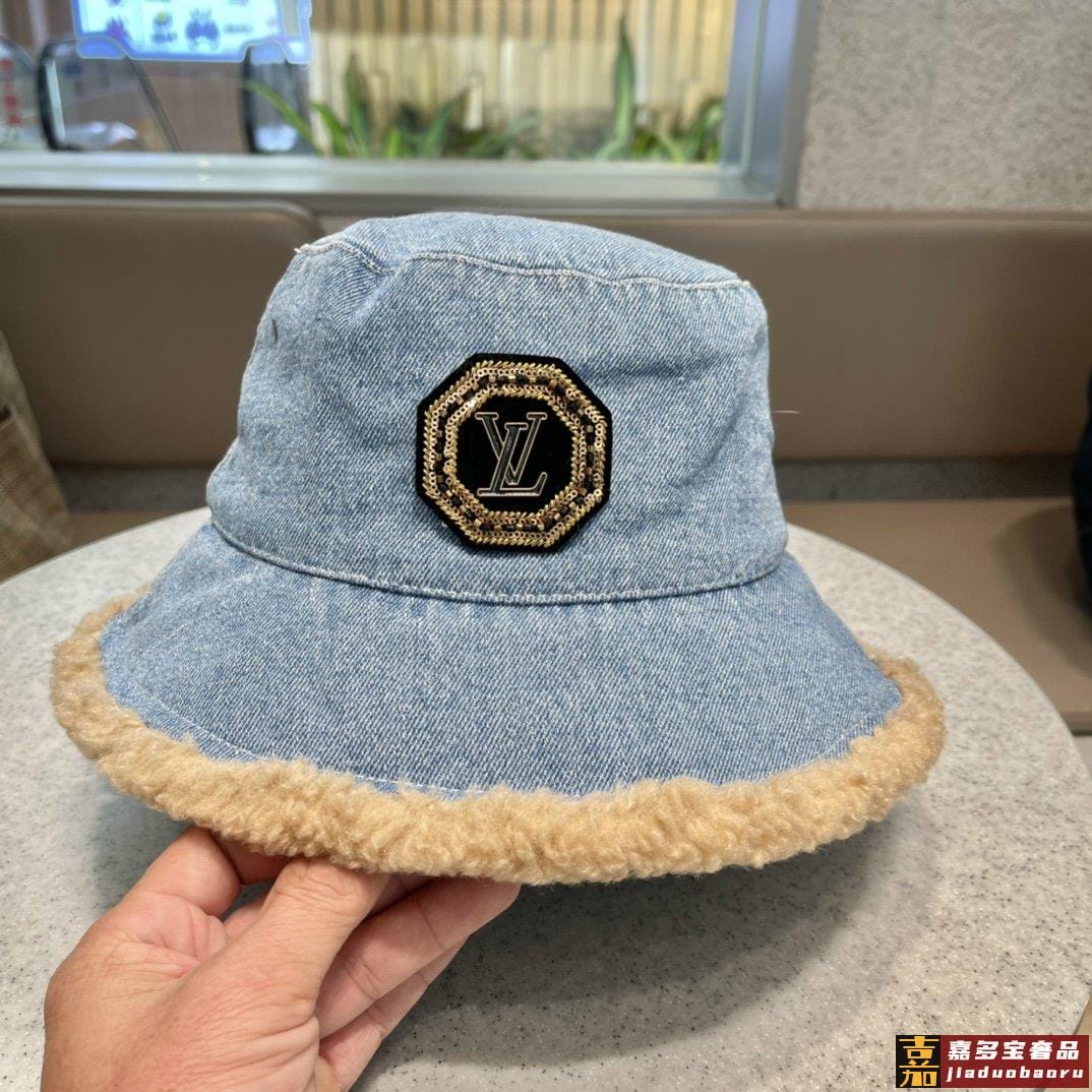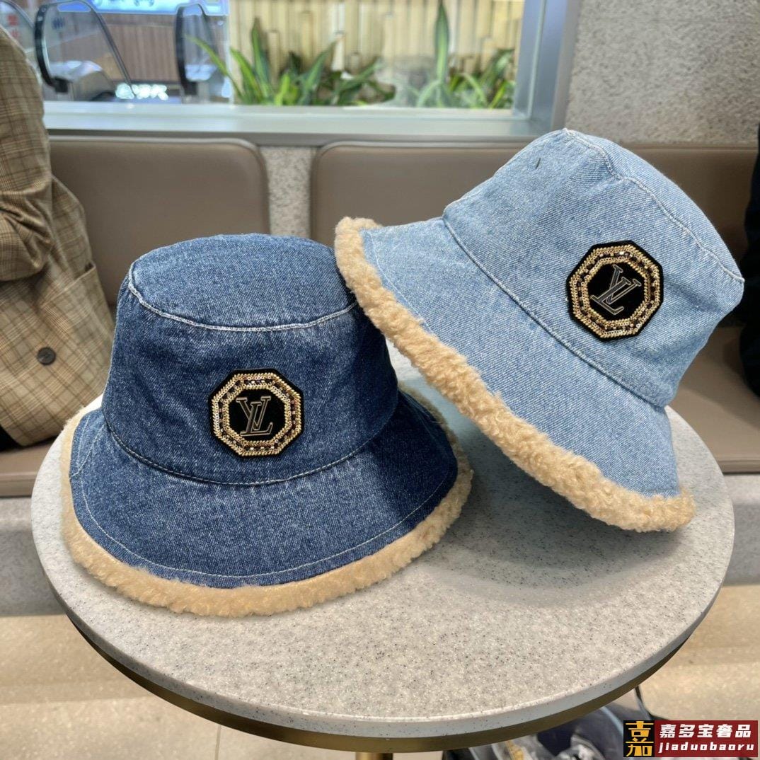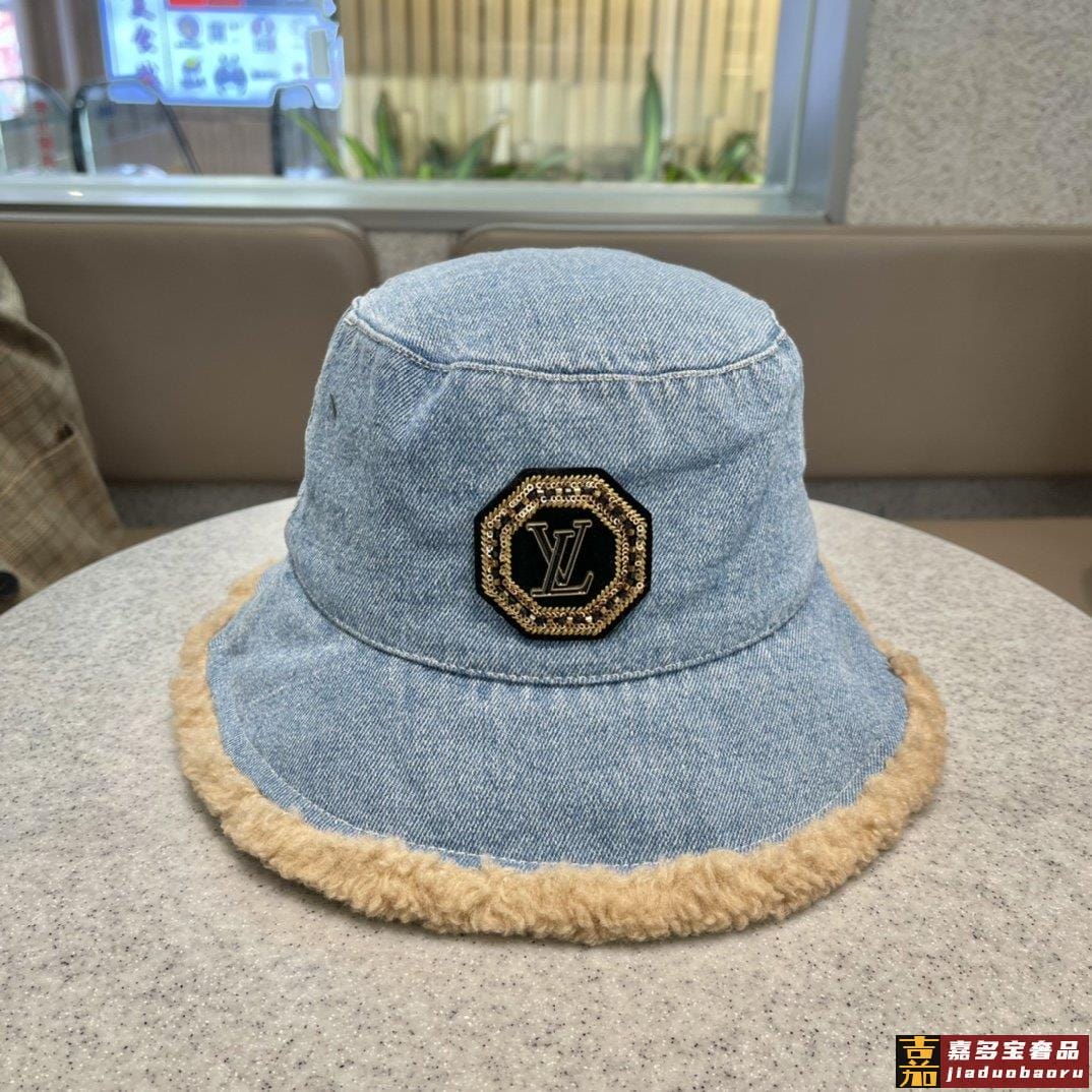 路易威登秋冬新款日系时尚百搭简约羊羔绒渔夫帽女文艺减龄休闲