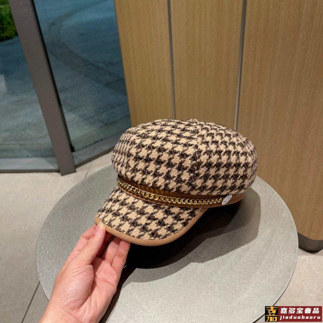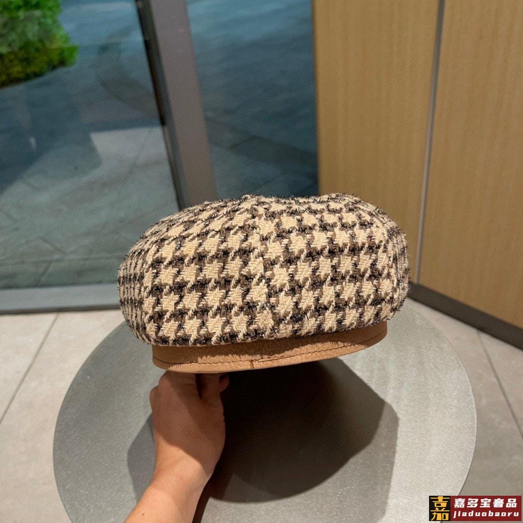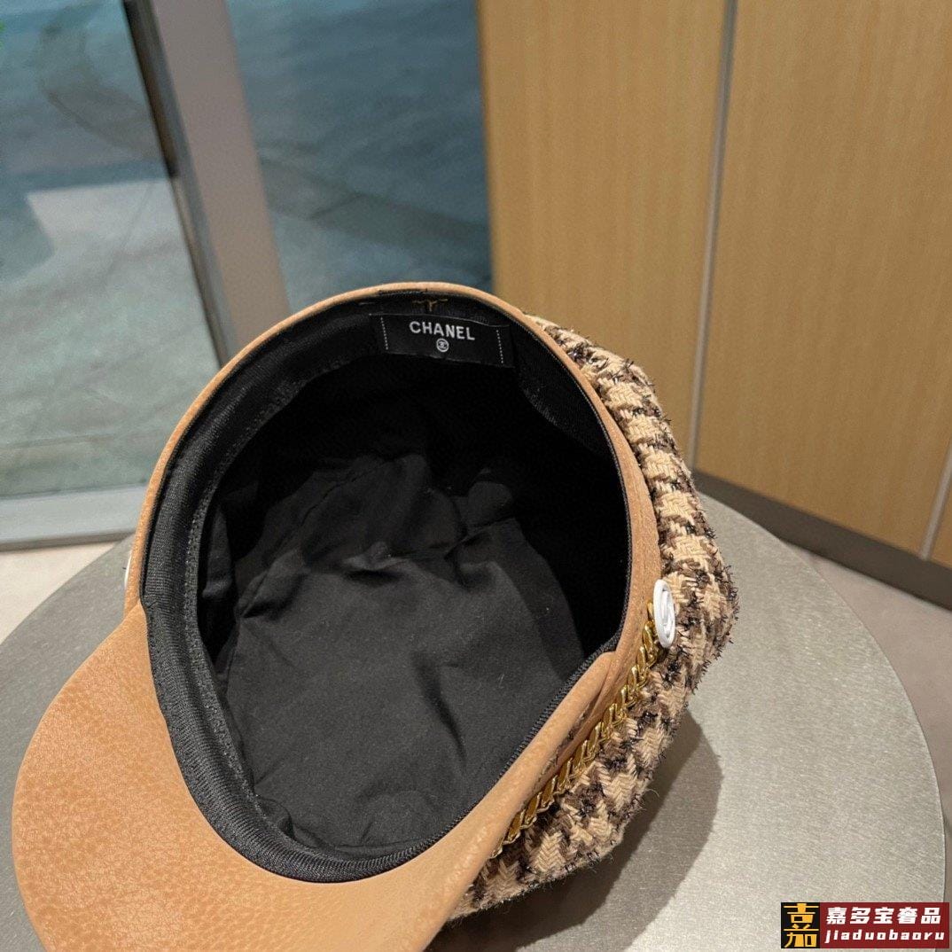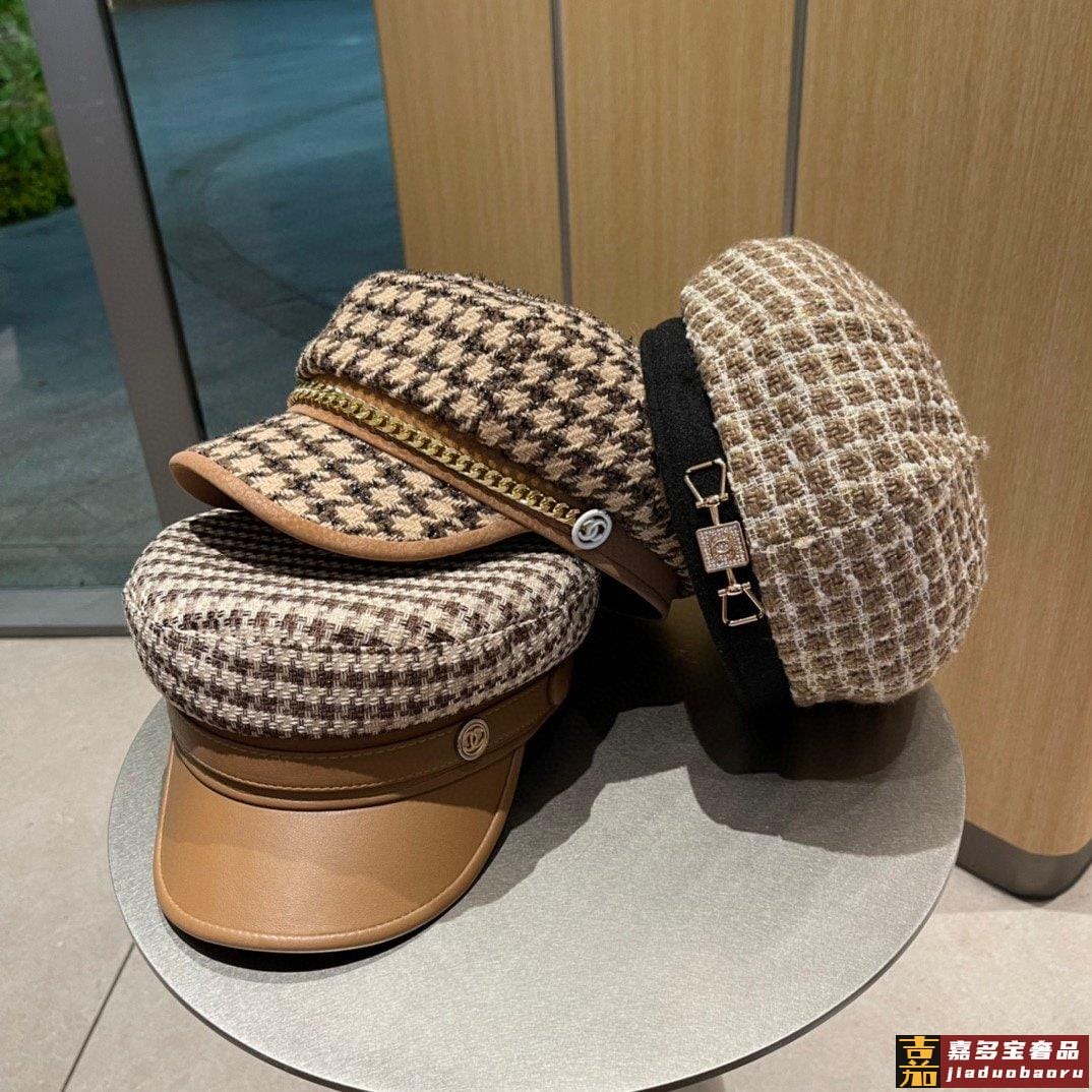 香奈儿秋冬新款千鸟格组合装饰贝雷八角军帽混金丝材质实物颜色更