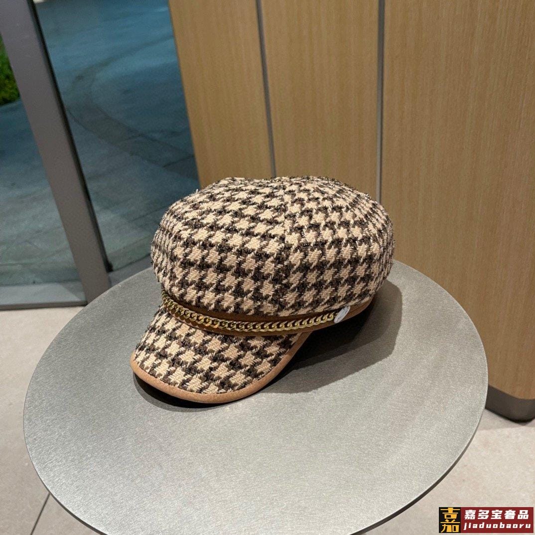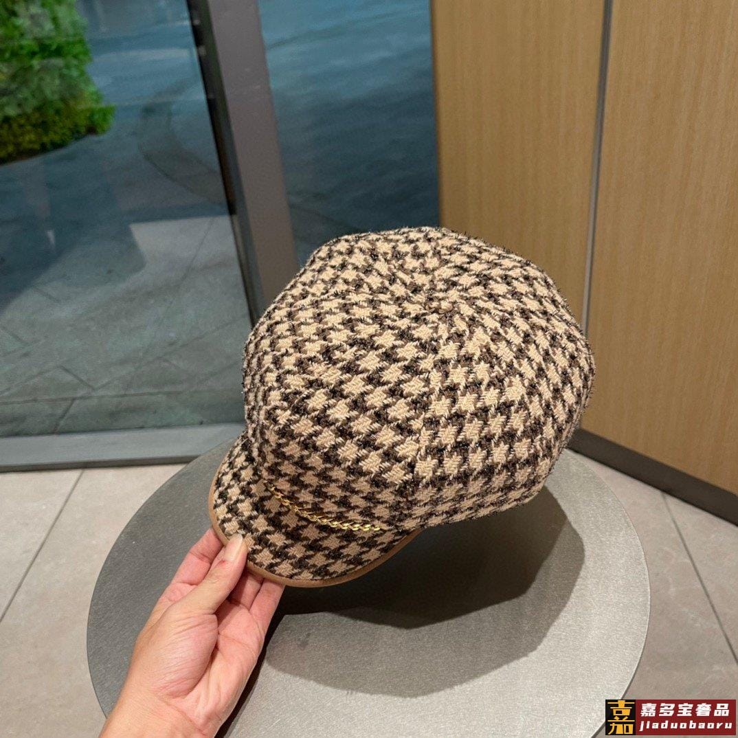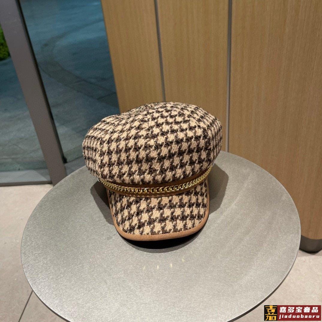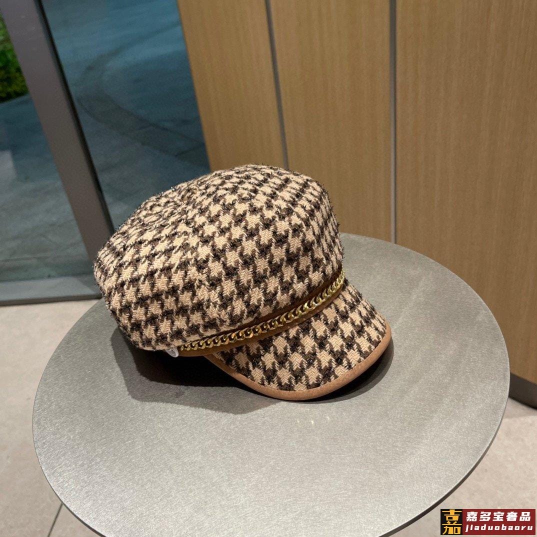 香奈儿秋冬新款千鸟格组合装饰贝雷八角军帽混金丝材质实物颜色更