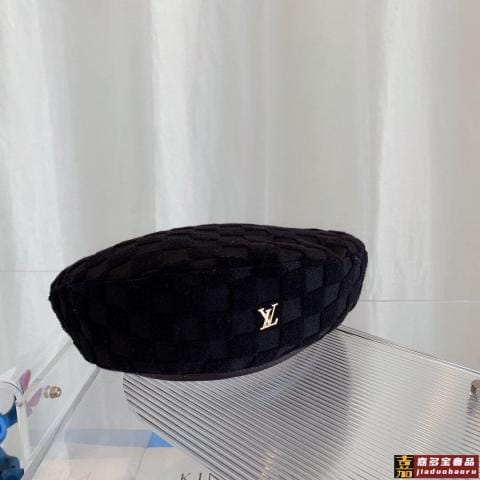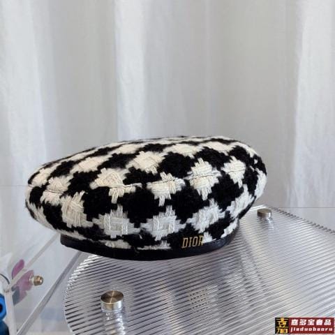 迪早秋新款千鸟格贝雷帽皮边有迪家字母标志简约洋气甜美小仙女款