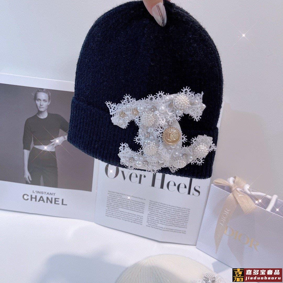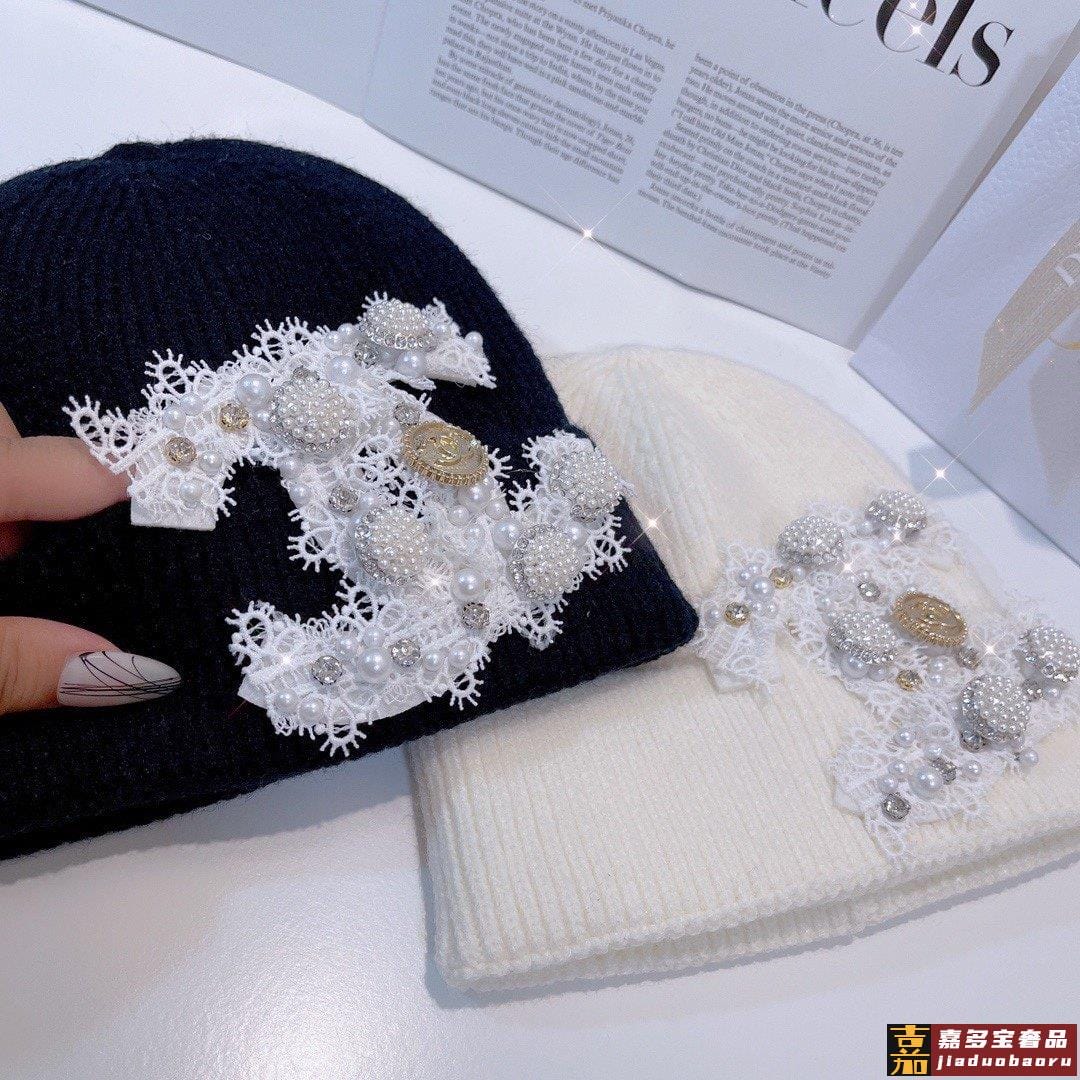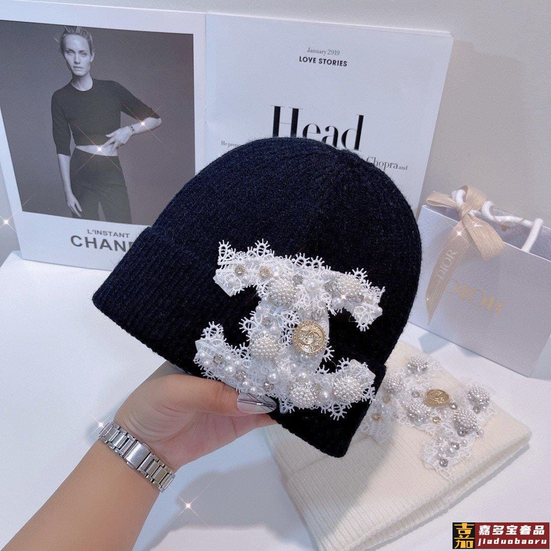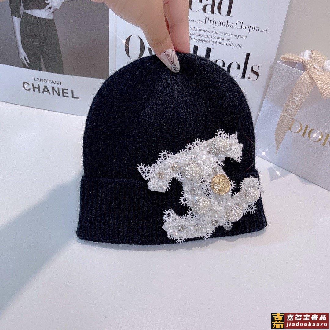 小香新款蕾丝标志针织毛线帽爆款针织帽超好看的小香风