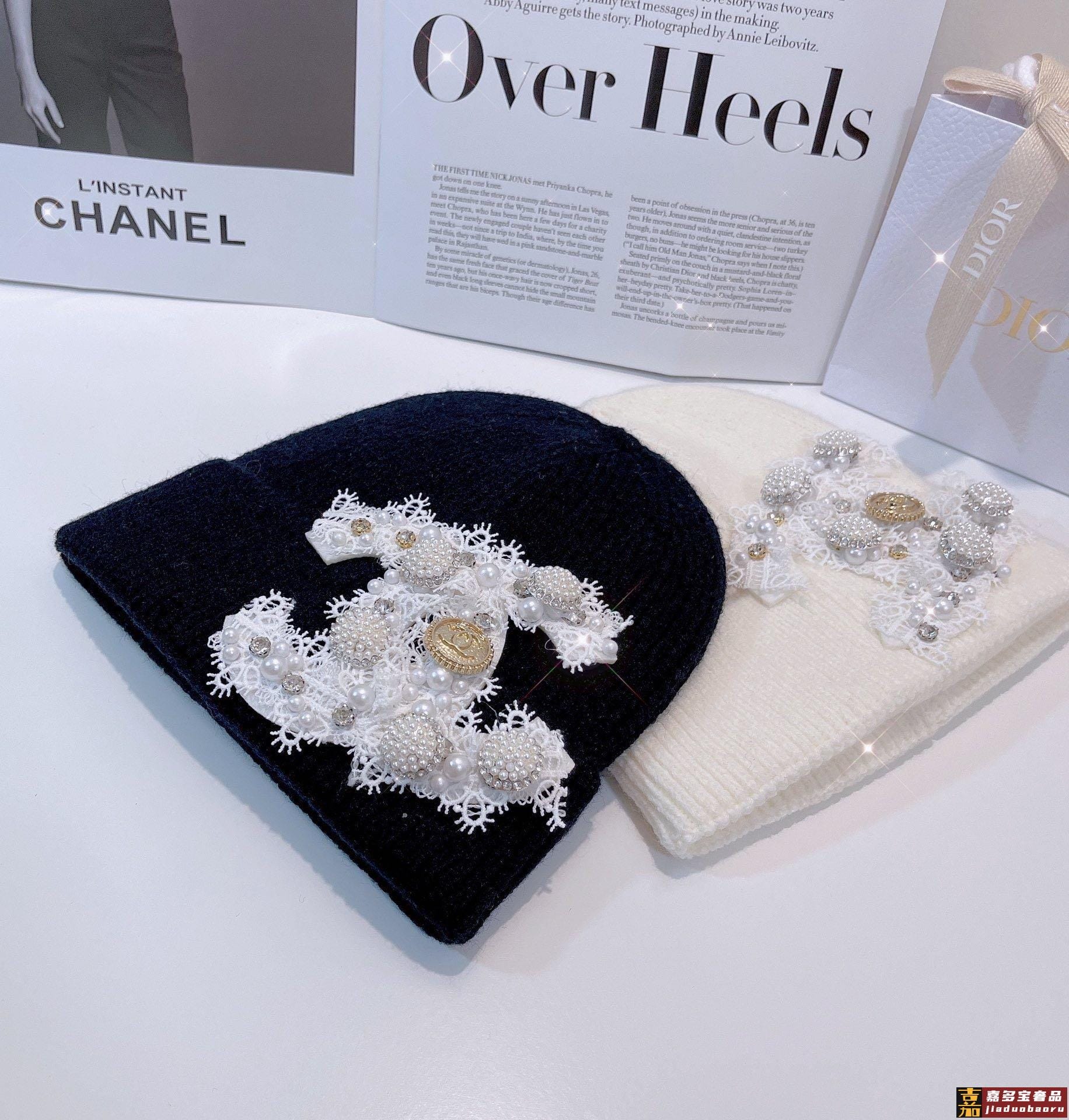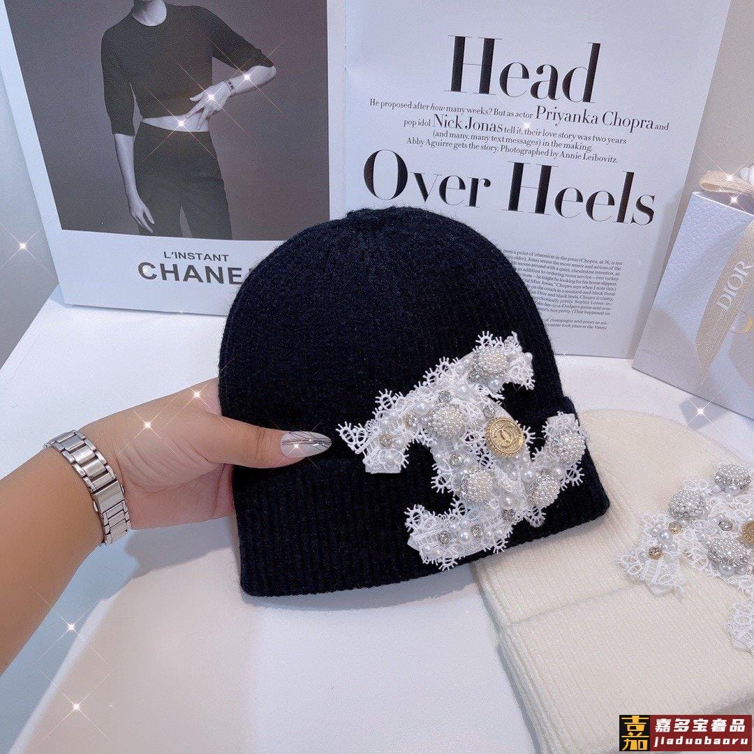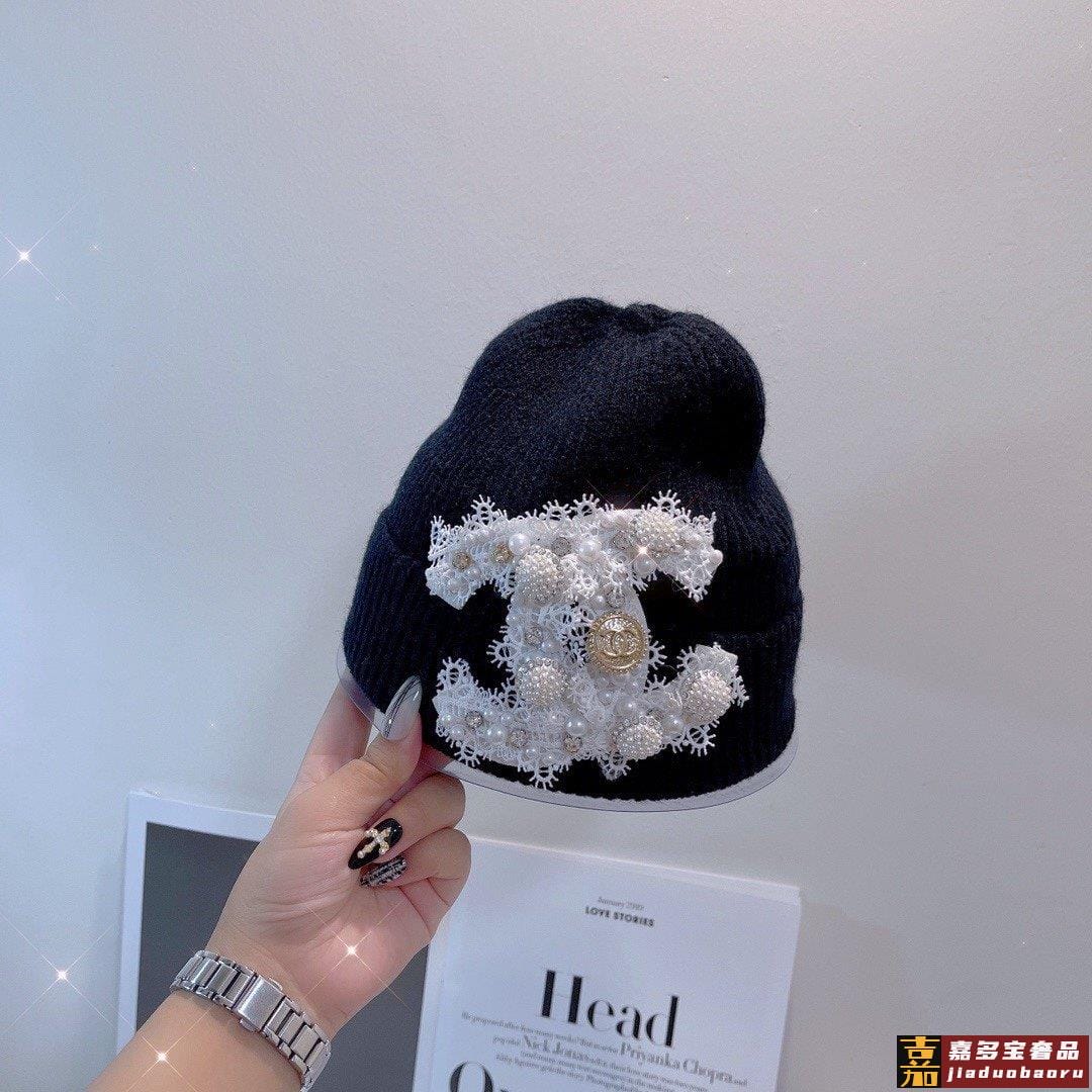 小香新款蕾丝标志针织毛线帽爆款针织帽超好看的小香风