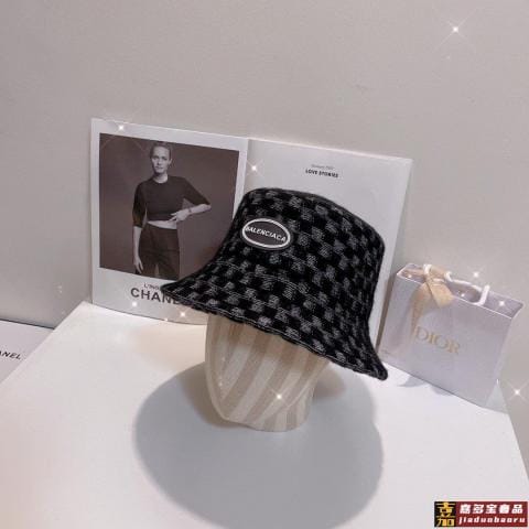 巴黎世家秋冬新款格子羊毛盆帽渔夫帽羊毛织造轻薄保暖桶帽型巨遮