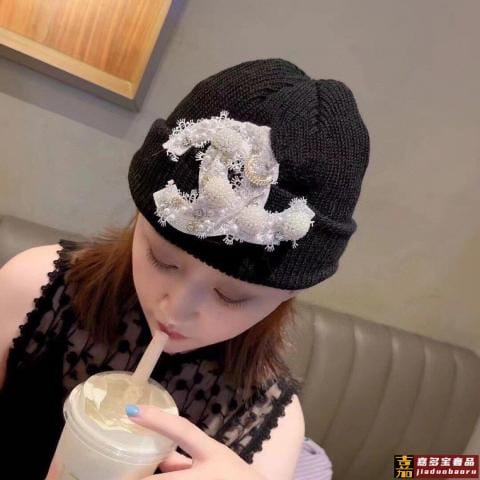 小香新款蕾丝标志针织毛线帽爆款针织帽超好看的小香风