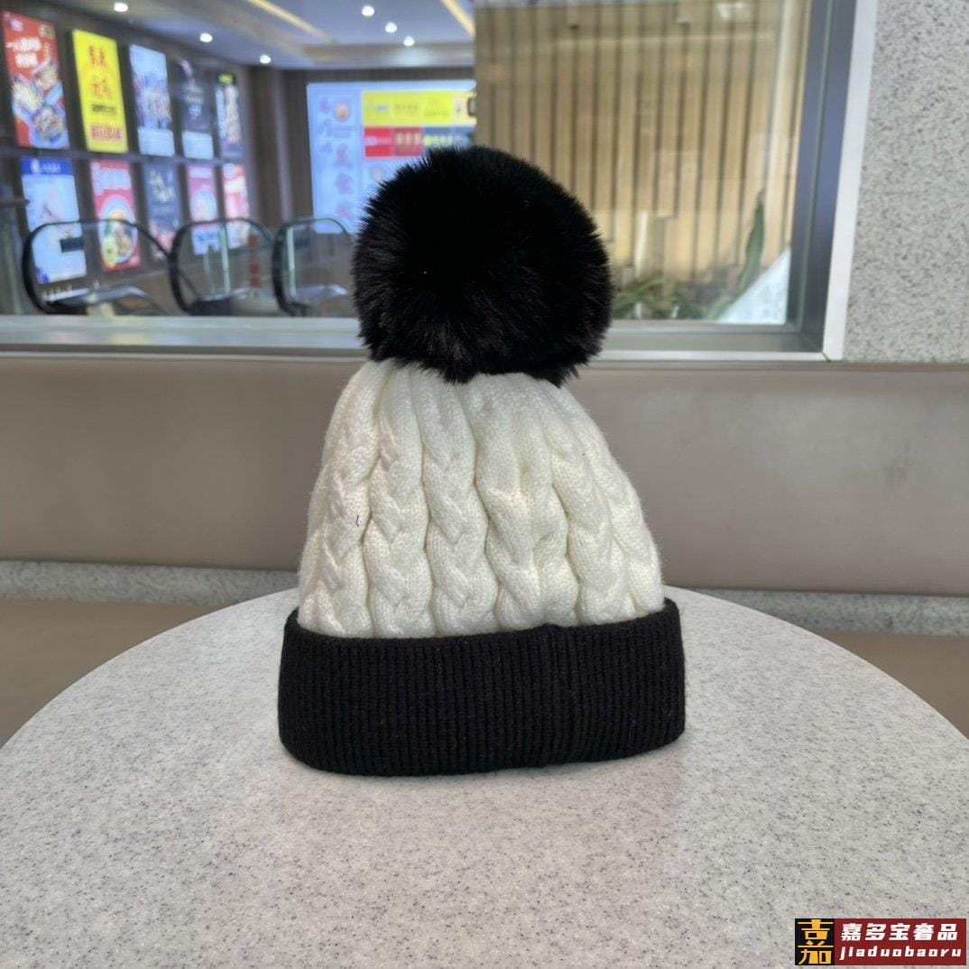 香奈儿新款甜美风毛线帽子女士冬季可爱毛球套头帽保暖加绒护耳套