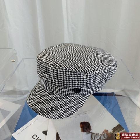 家新款亮钻千鸟格军帽巨洋气的款式优雅气质网纱帽檐超好看今年超
