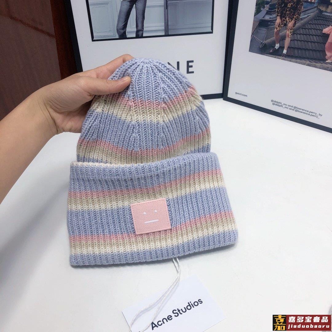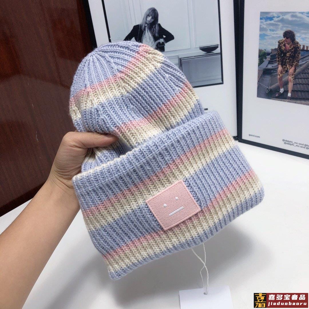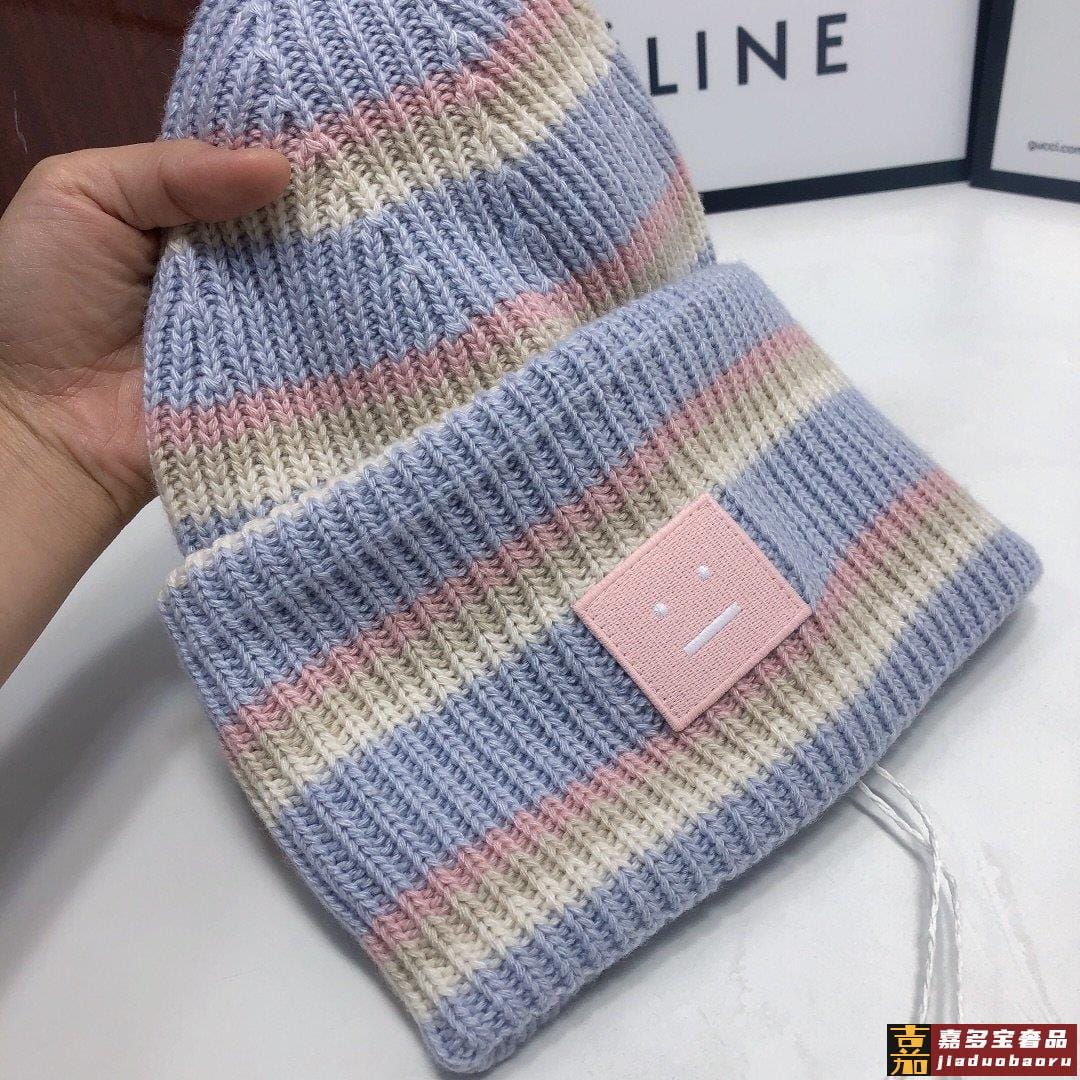 原厂原单年秋冬渐变条纹笑脸毛线帽子方块笑脸火到不行的一款毛线