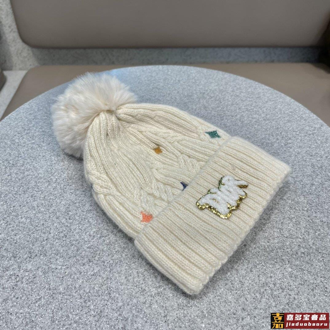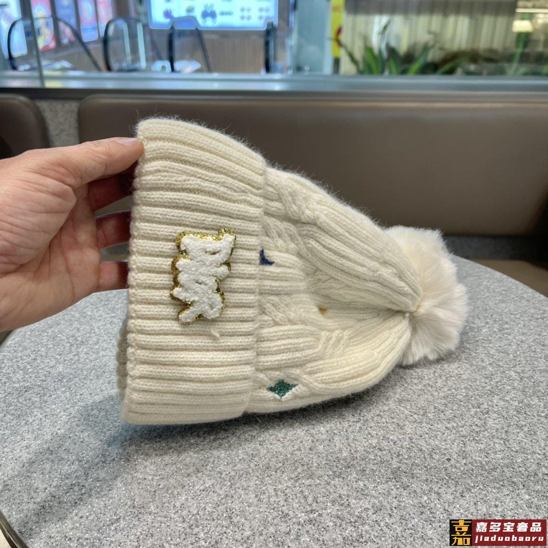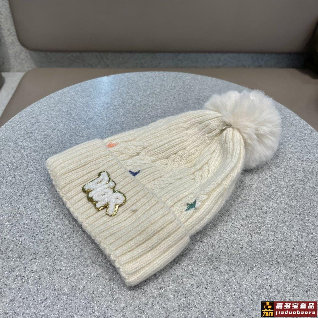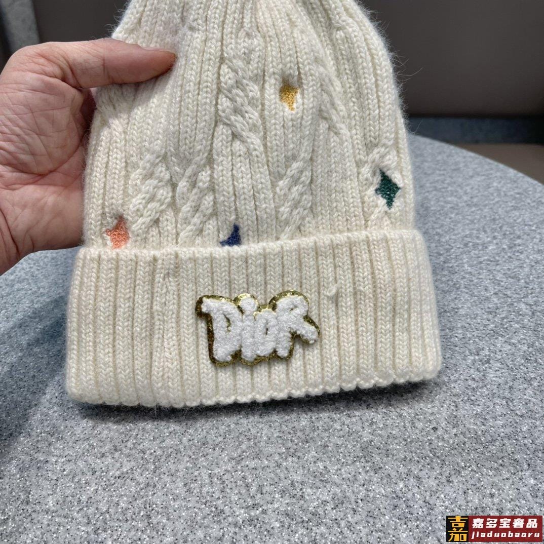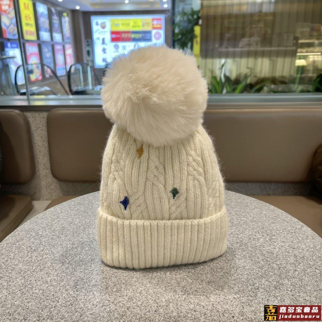 迪奥秋冬新款法国定毛毛球毛线帽秋冬保暖加绒加厚潮针织毛线帽高