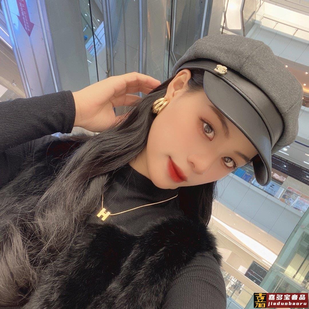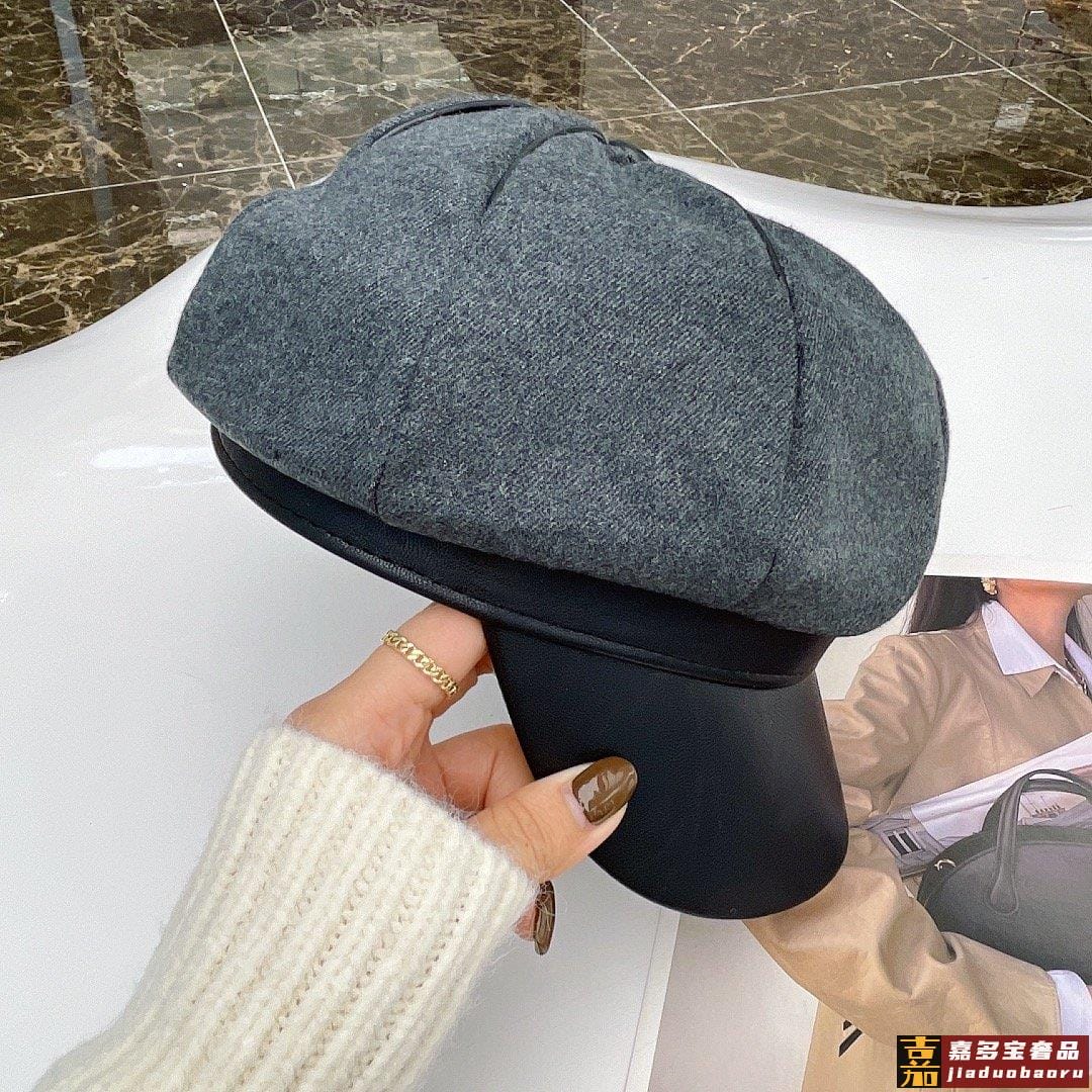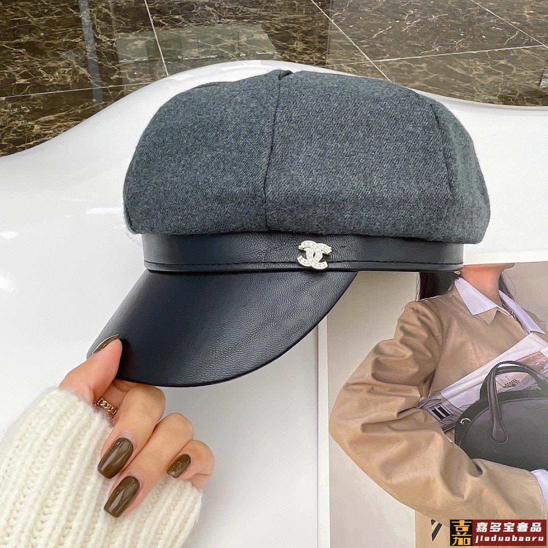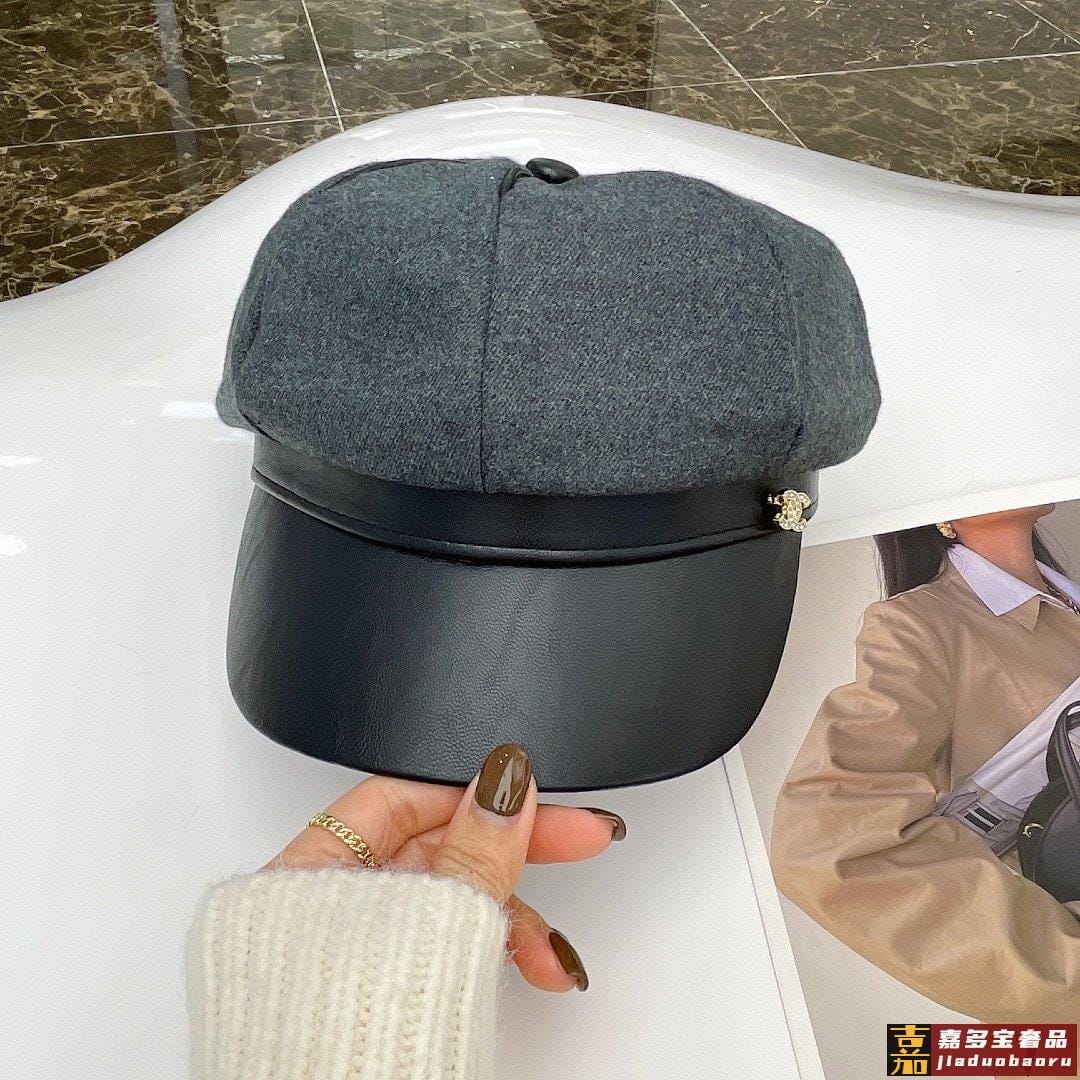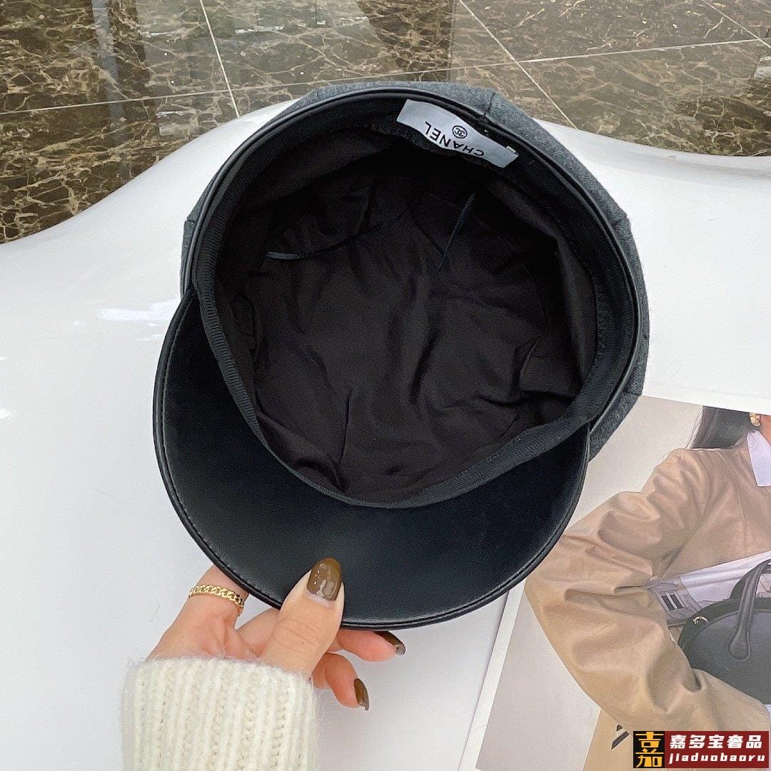香奈儿新款丝绒拼皮鸭舌军帽八角帽南瓜帽高端网红款可盐可甜头围