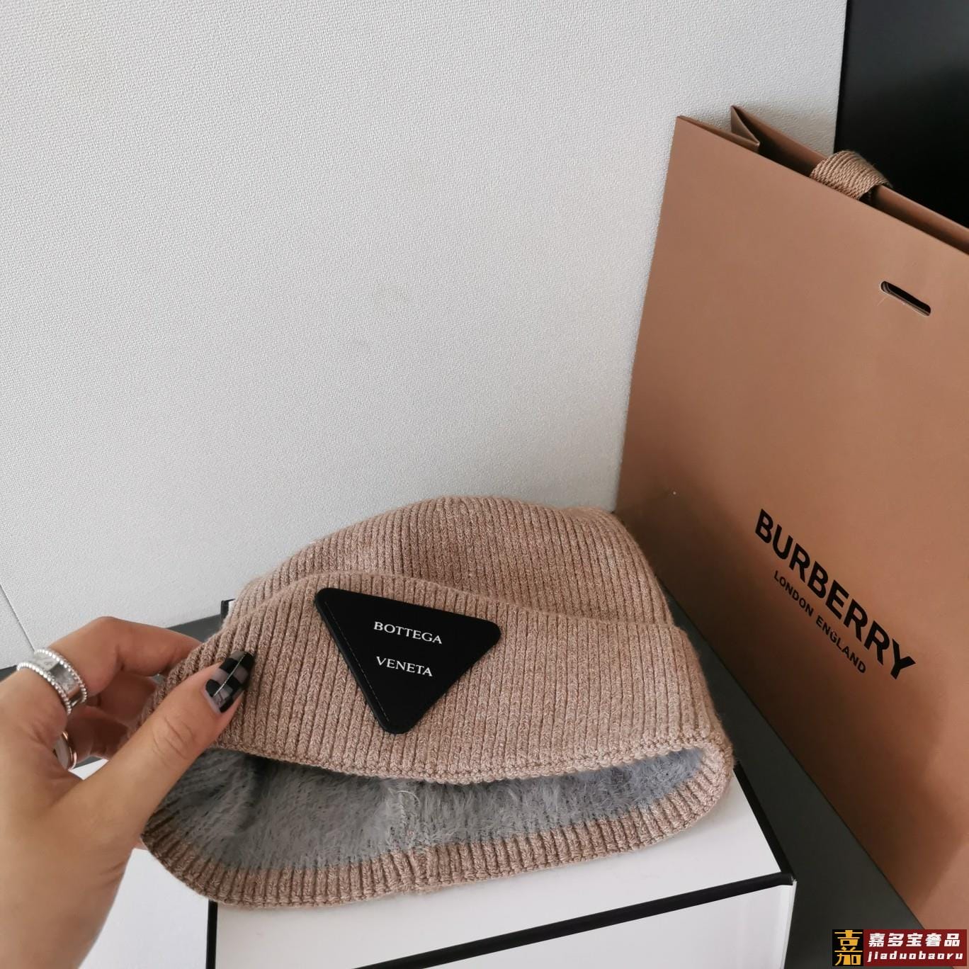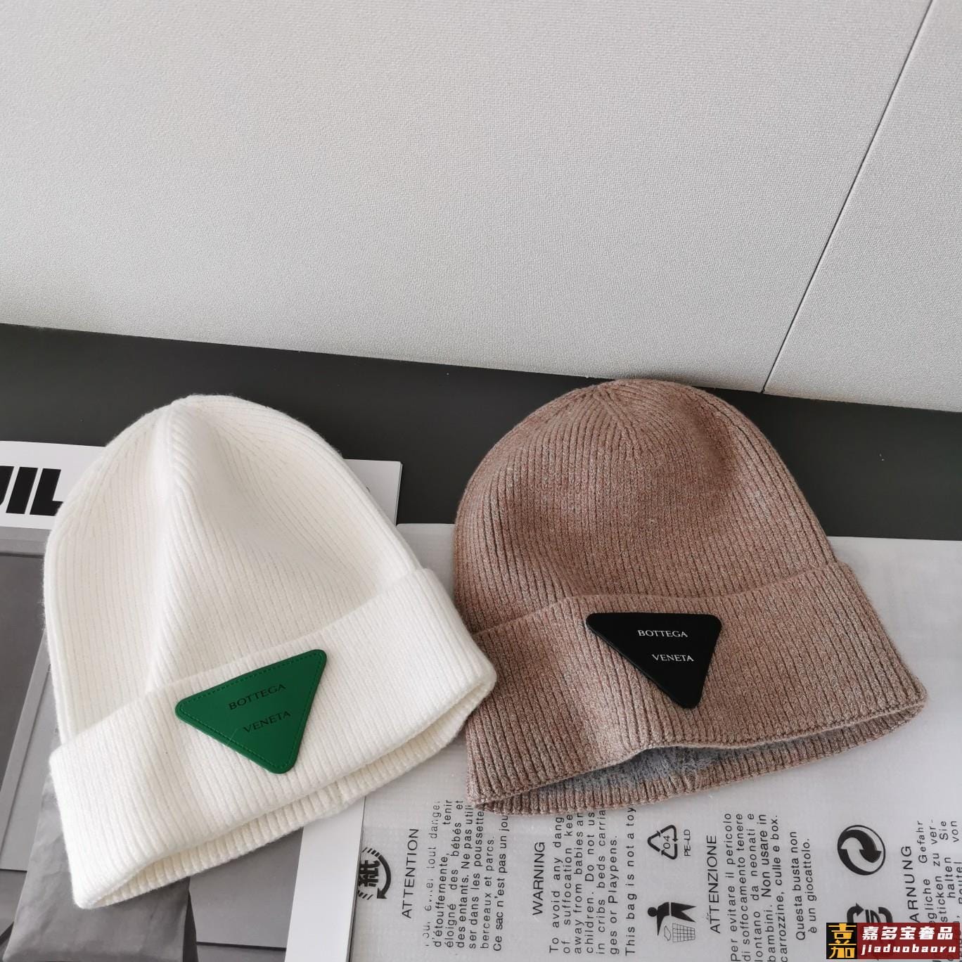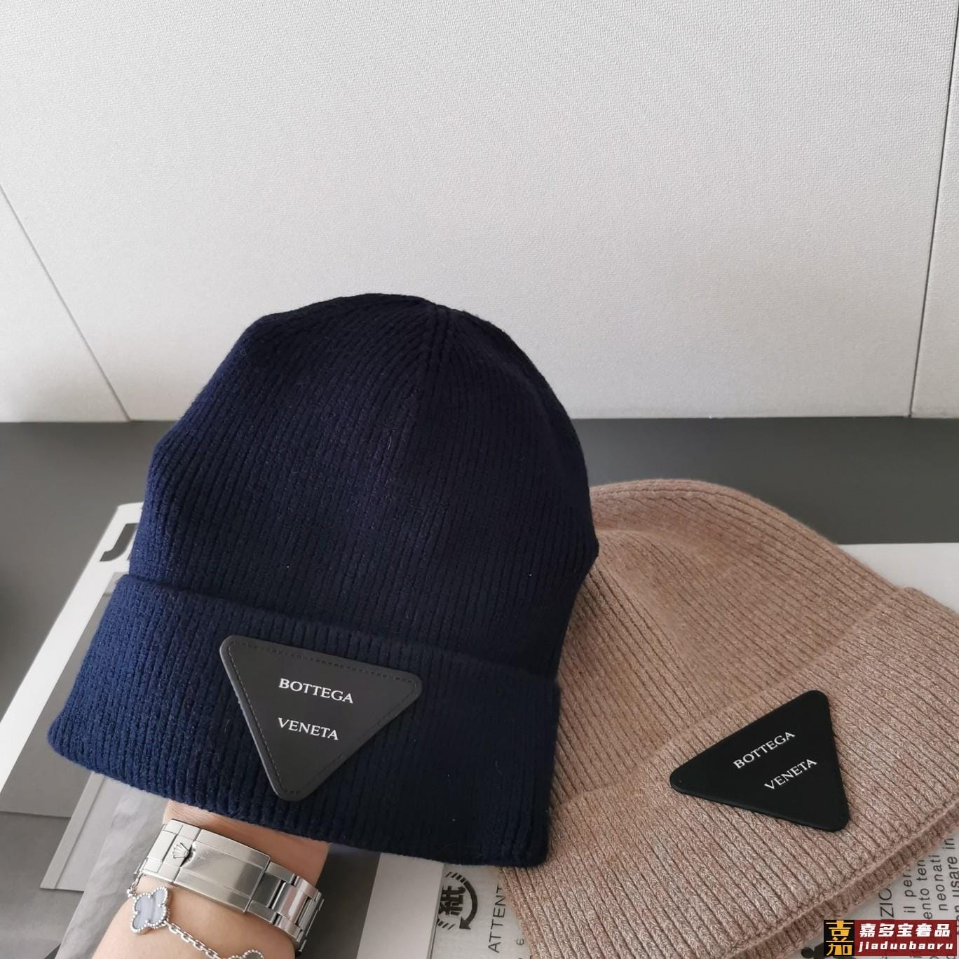 秋冬新品毛线帽采用进口澳兔毛手感超级柔软细腻经典三角标撞色设