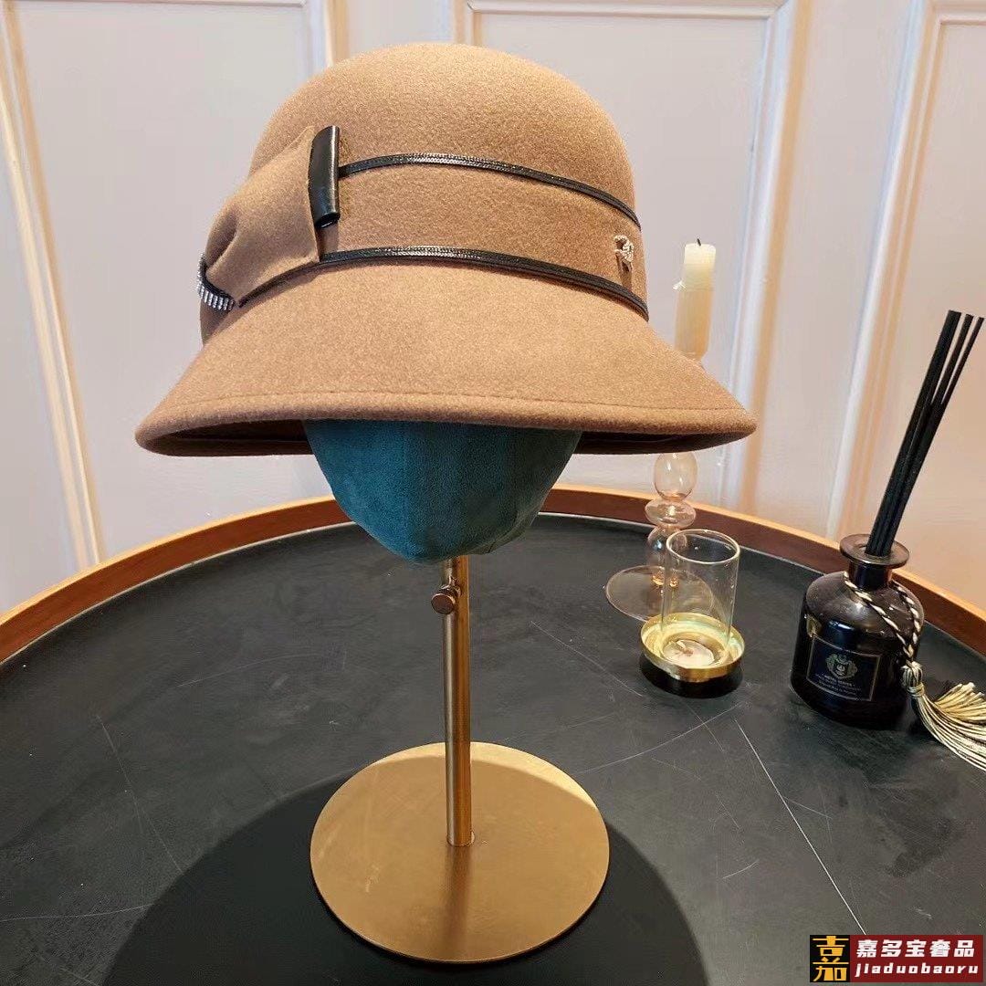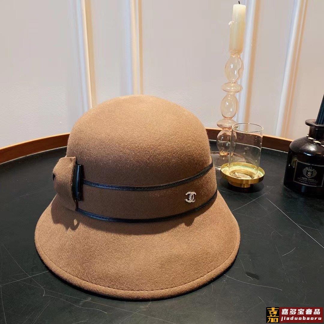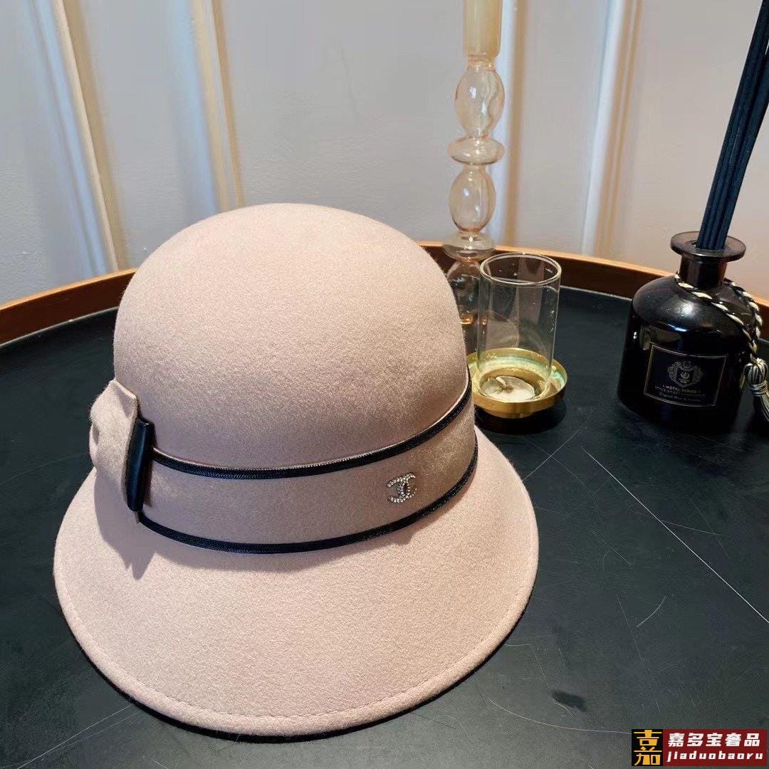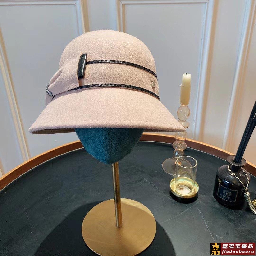 小香新款水钻蝴蝶结羊毛呢盆帽黑色卡其色粉红