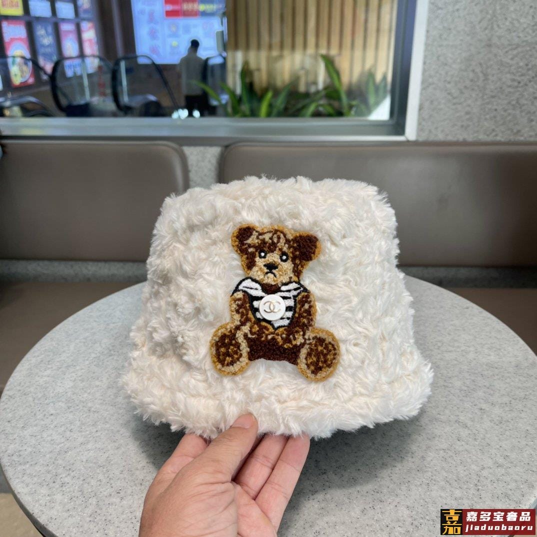 香奈儿秋冬新款羊绒羊毛防寒保暖韩版渔夫帽可爱的小熊熊羊绒毛网