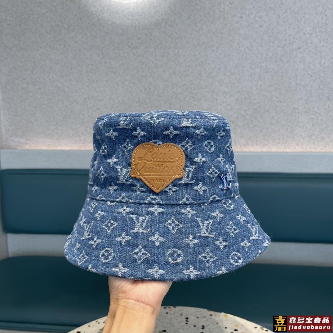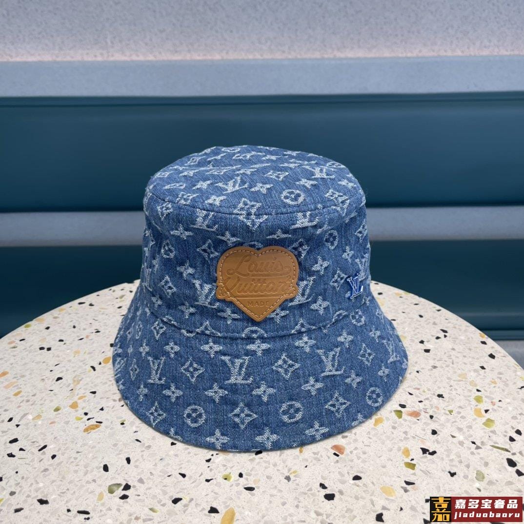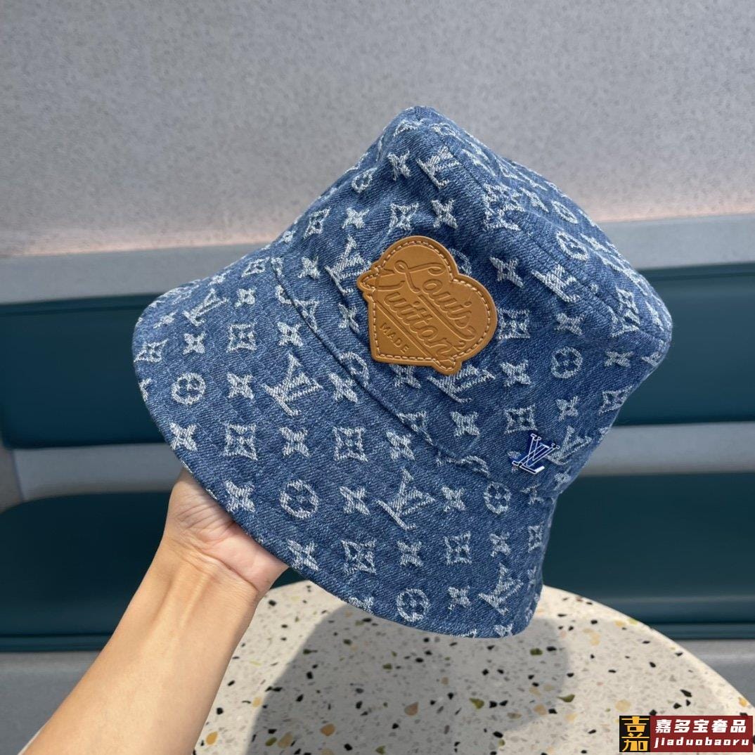 专柜新款路易威登家皮质渔夫帽简单大方男女通用遮阳帽