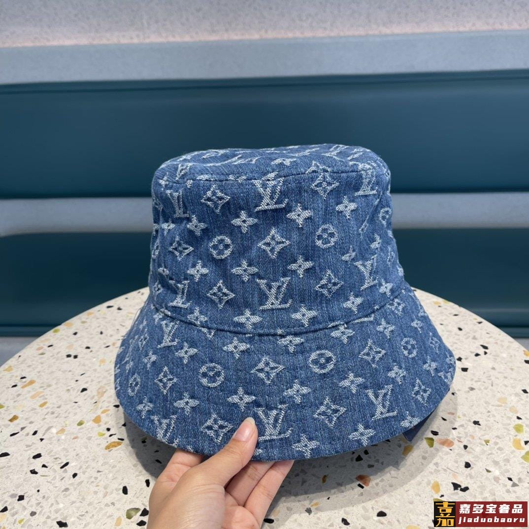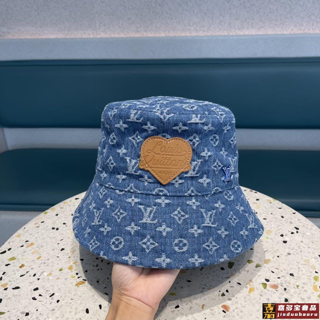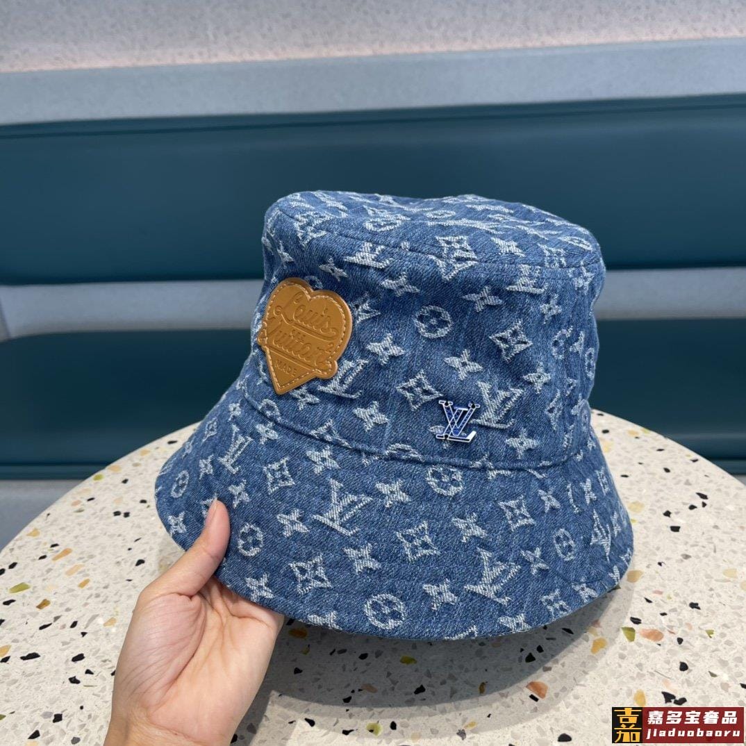专柜新款路易威登家皮质渔夫帽简单大方男女通用遮阳帽