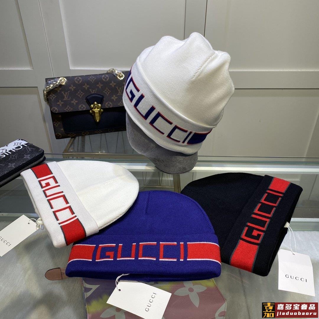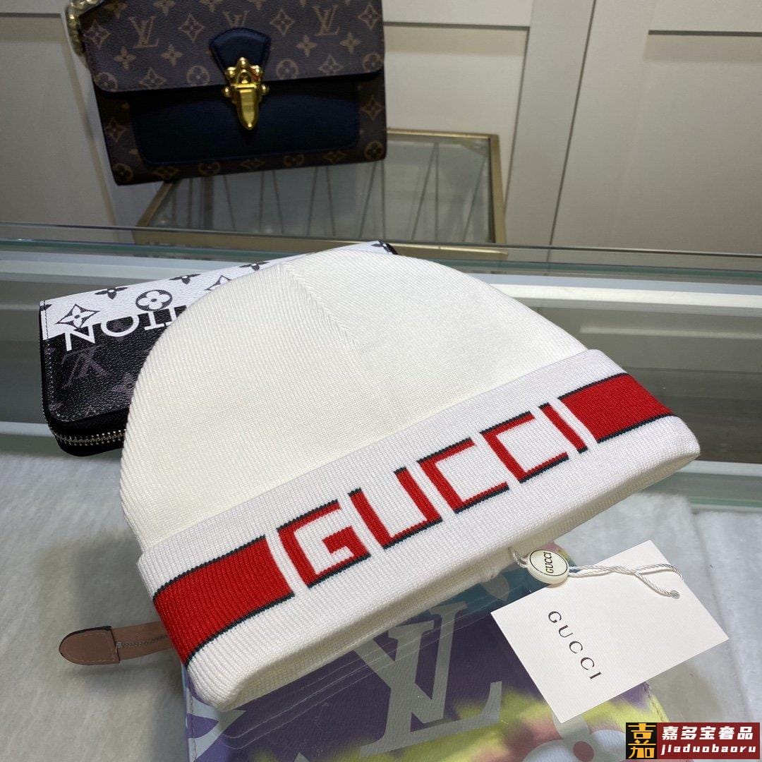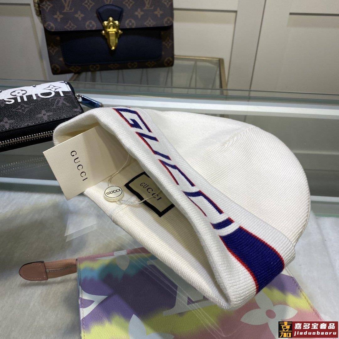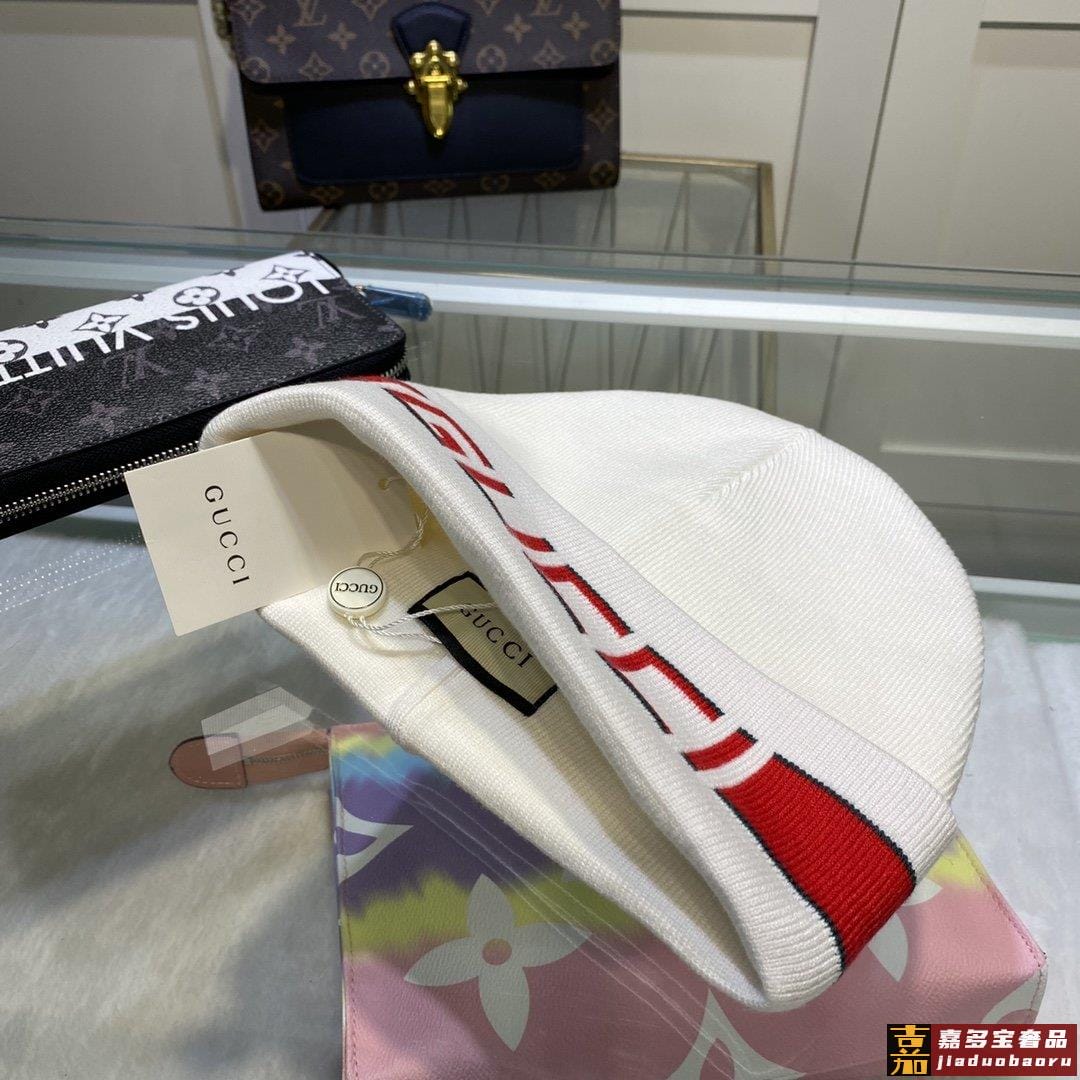 配防尘袋古奇原单帽子官网新品发带装饰双层针织帽爱心爱心羊毛羊