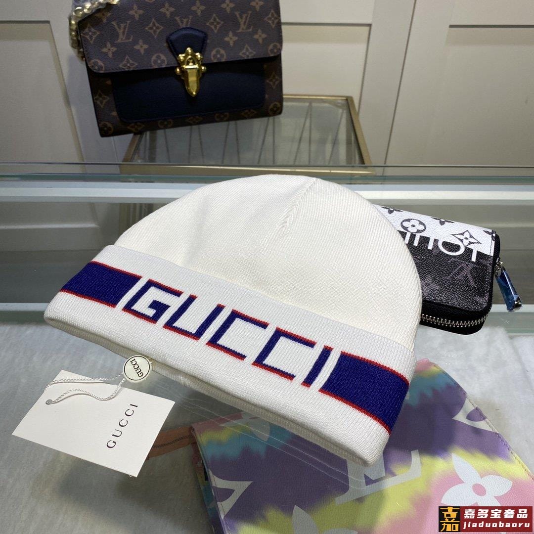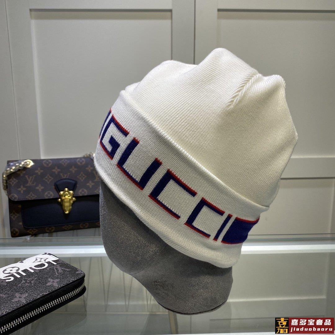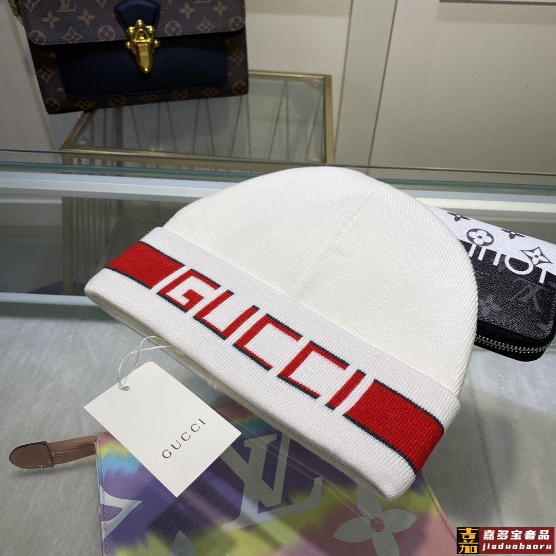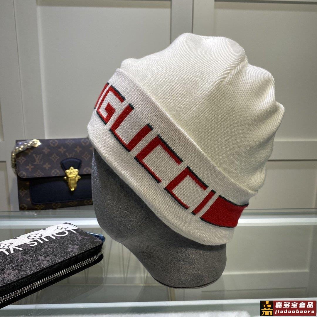 配防尘袋古奇原单帽子官网新品发带装饰双层针织帽爱心爱心羊毛羊