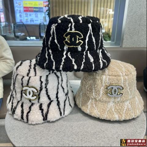 香奈儿秋冬新款保暖加厚防寒韩版条纹渔夫帽羊绒毛网红爆款男女同