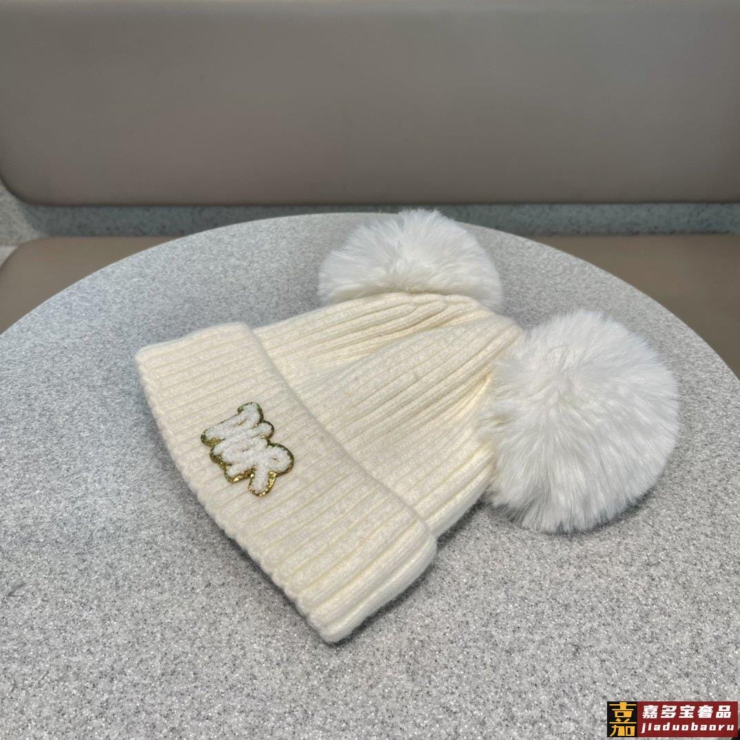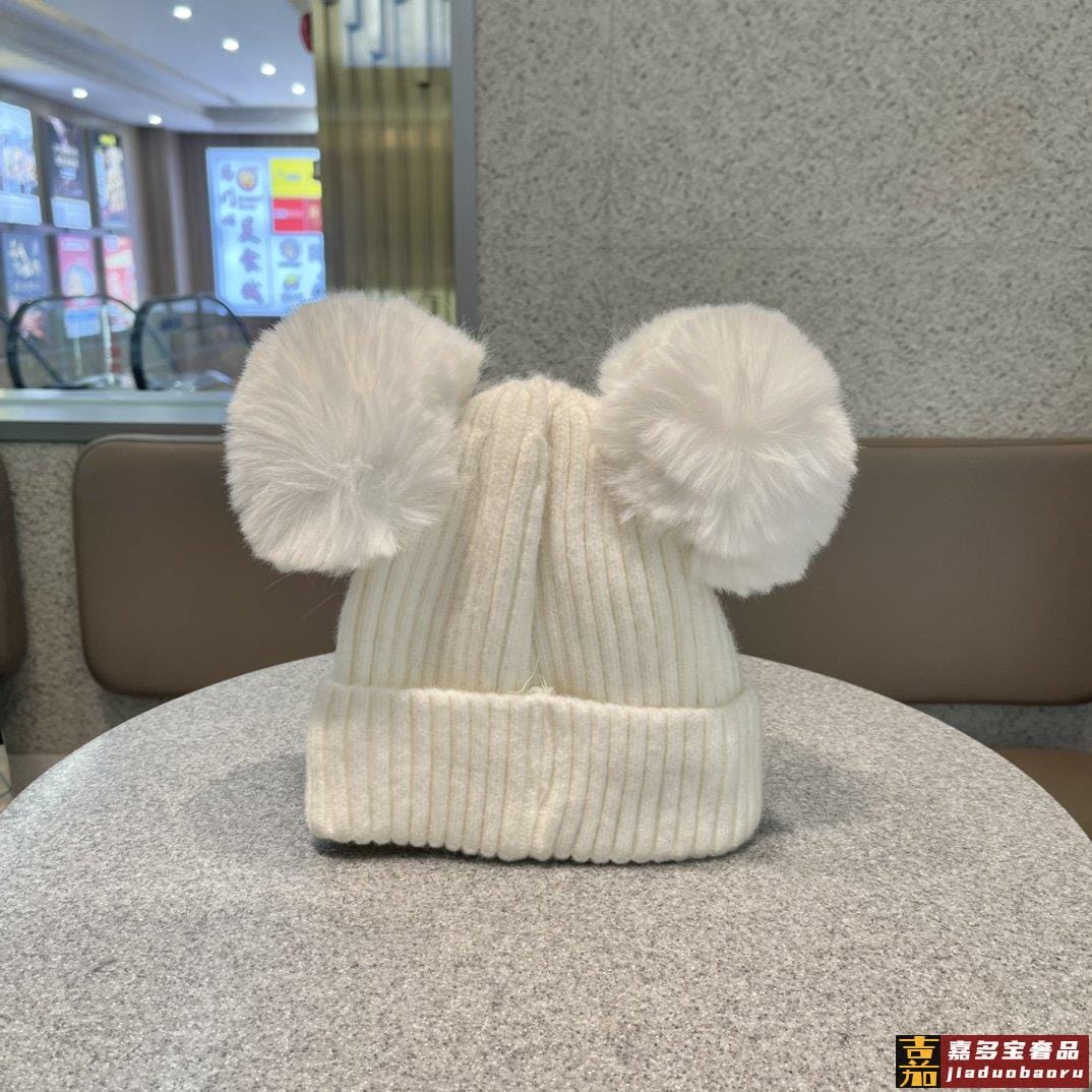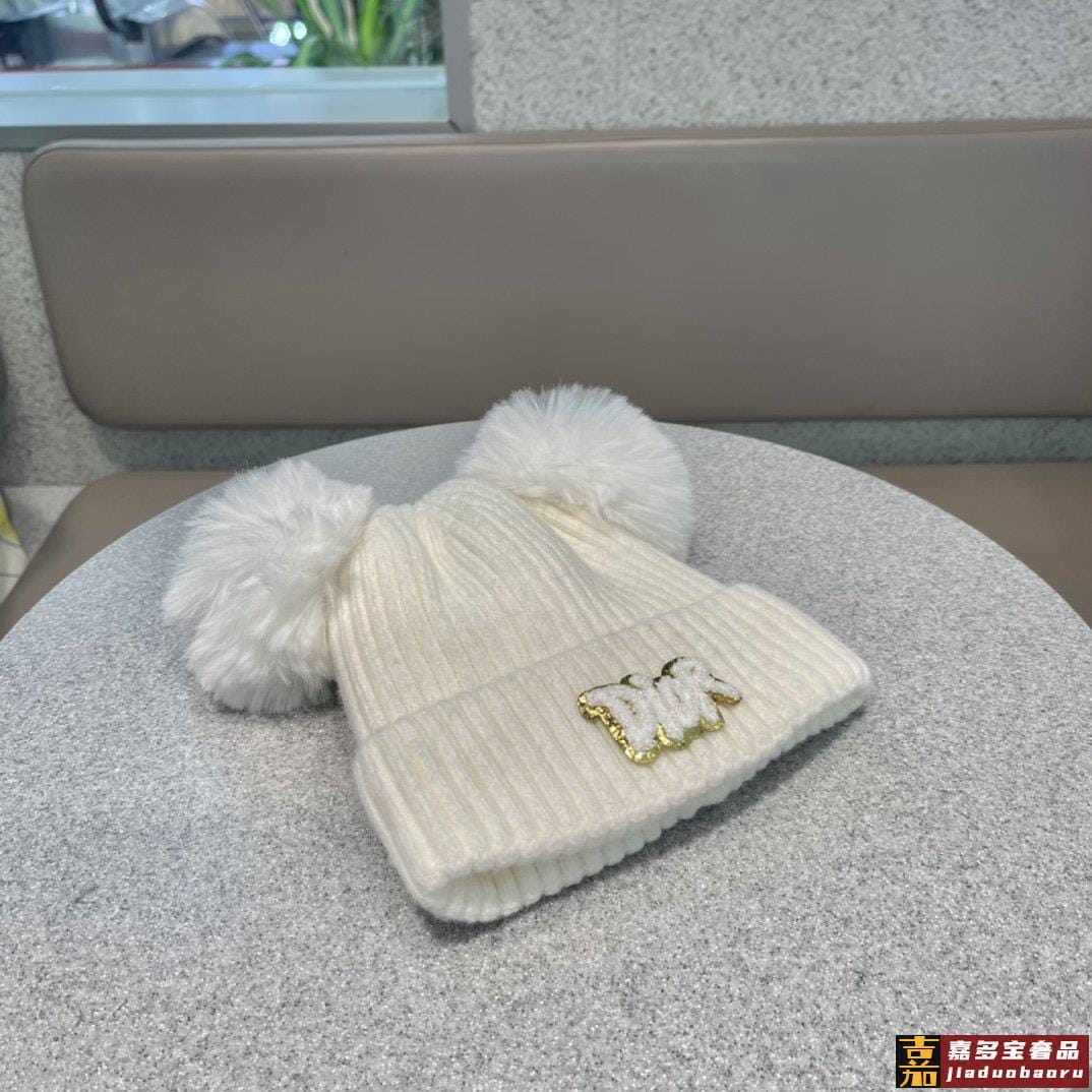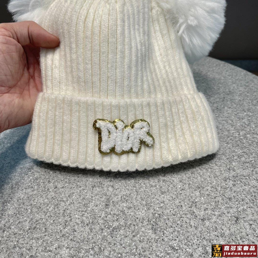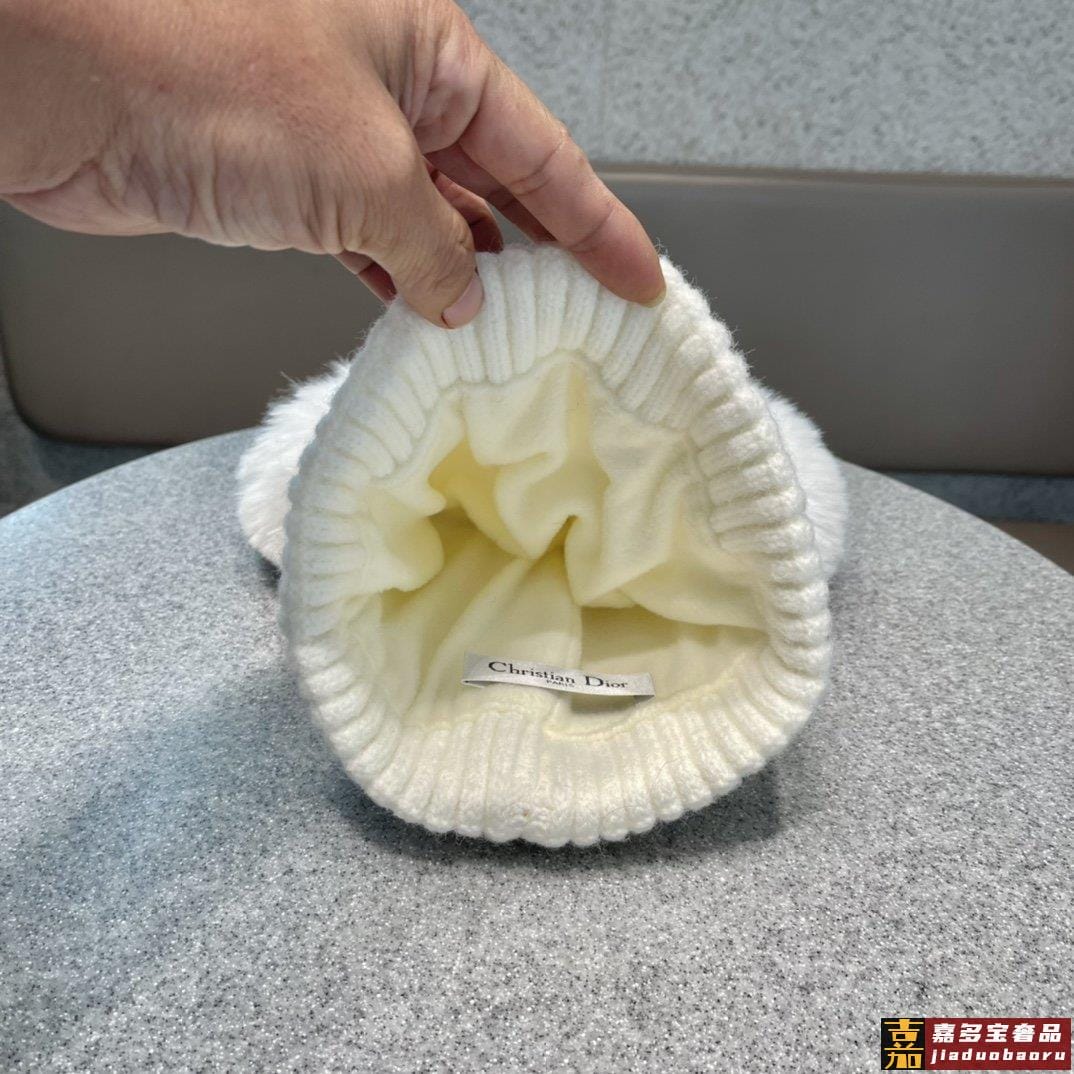迪奥秋冬新款法国定双狐狸毛球毛线帽秋冬保暖加绒加厚潮针织毛线